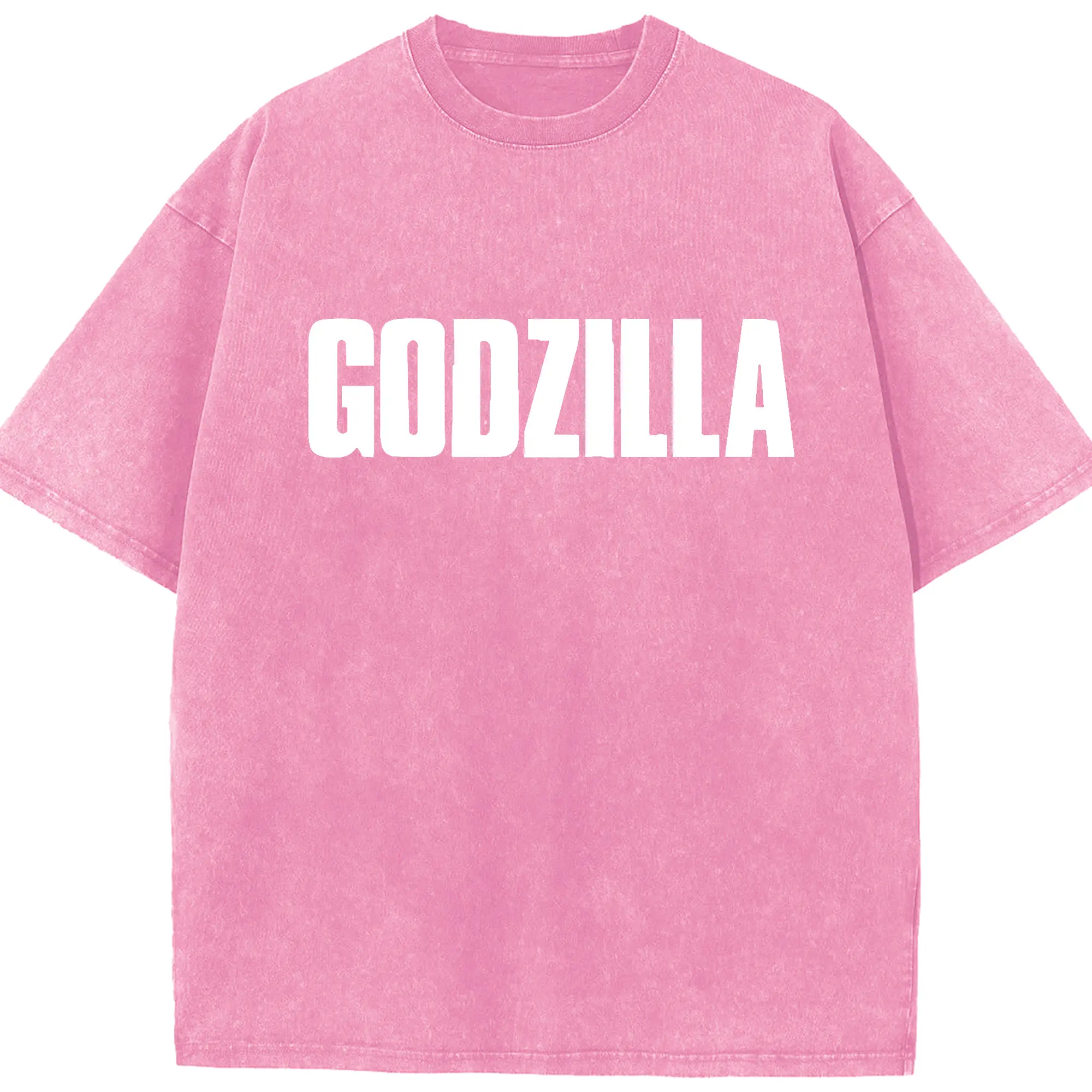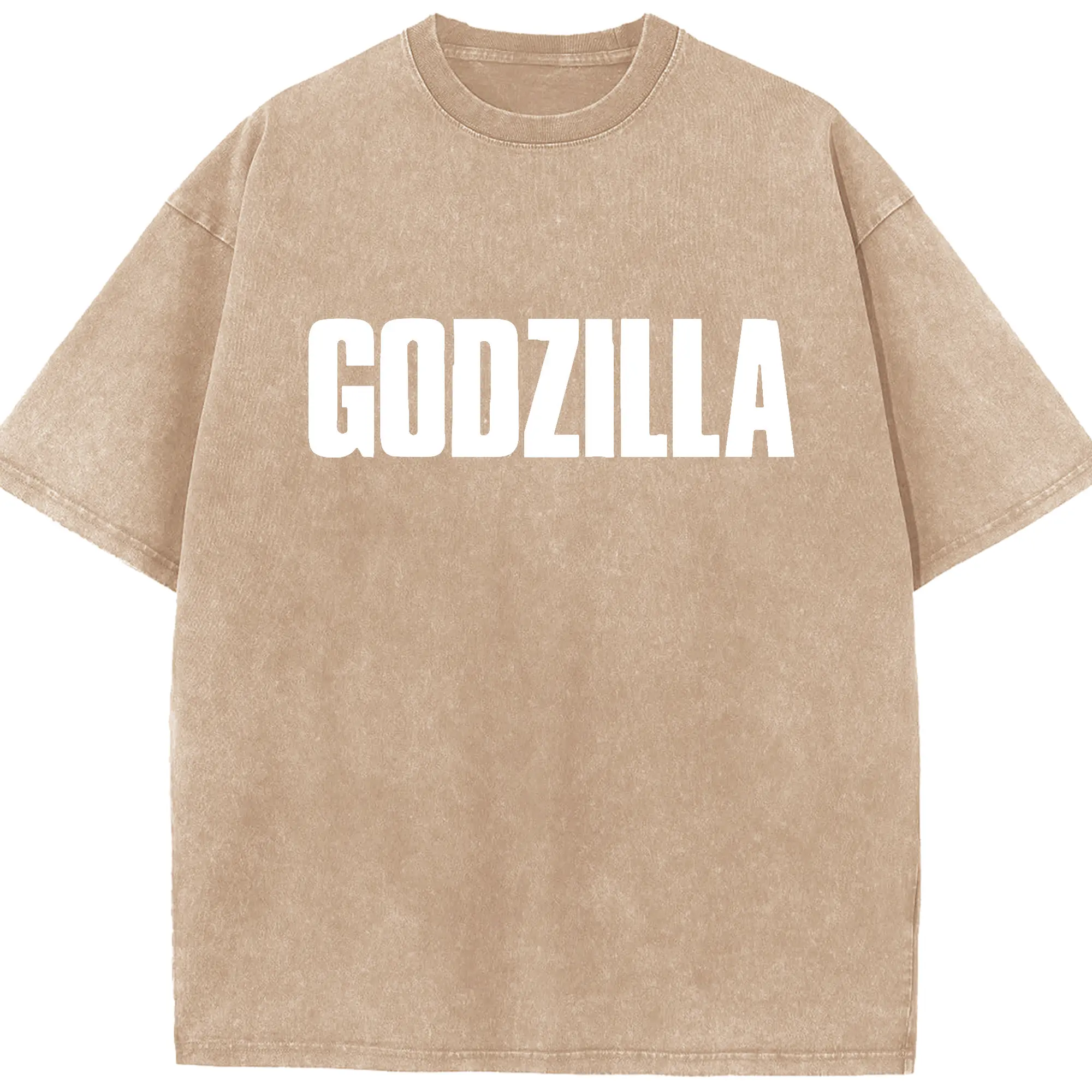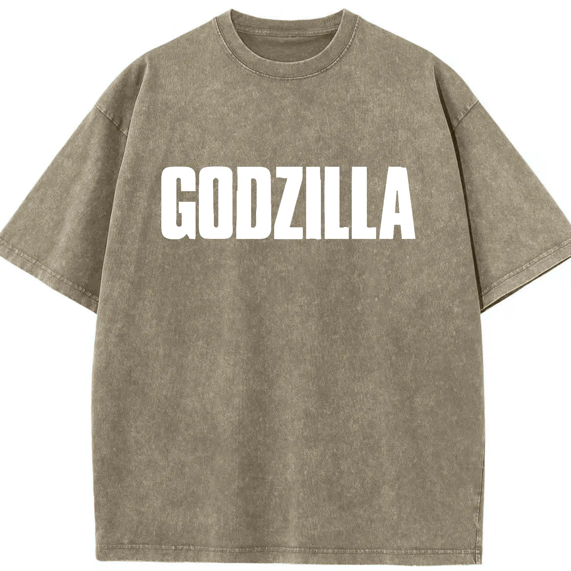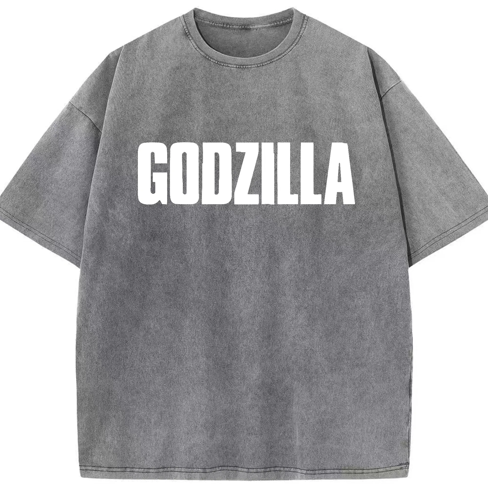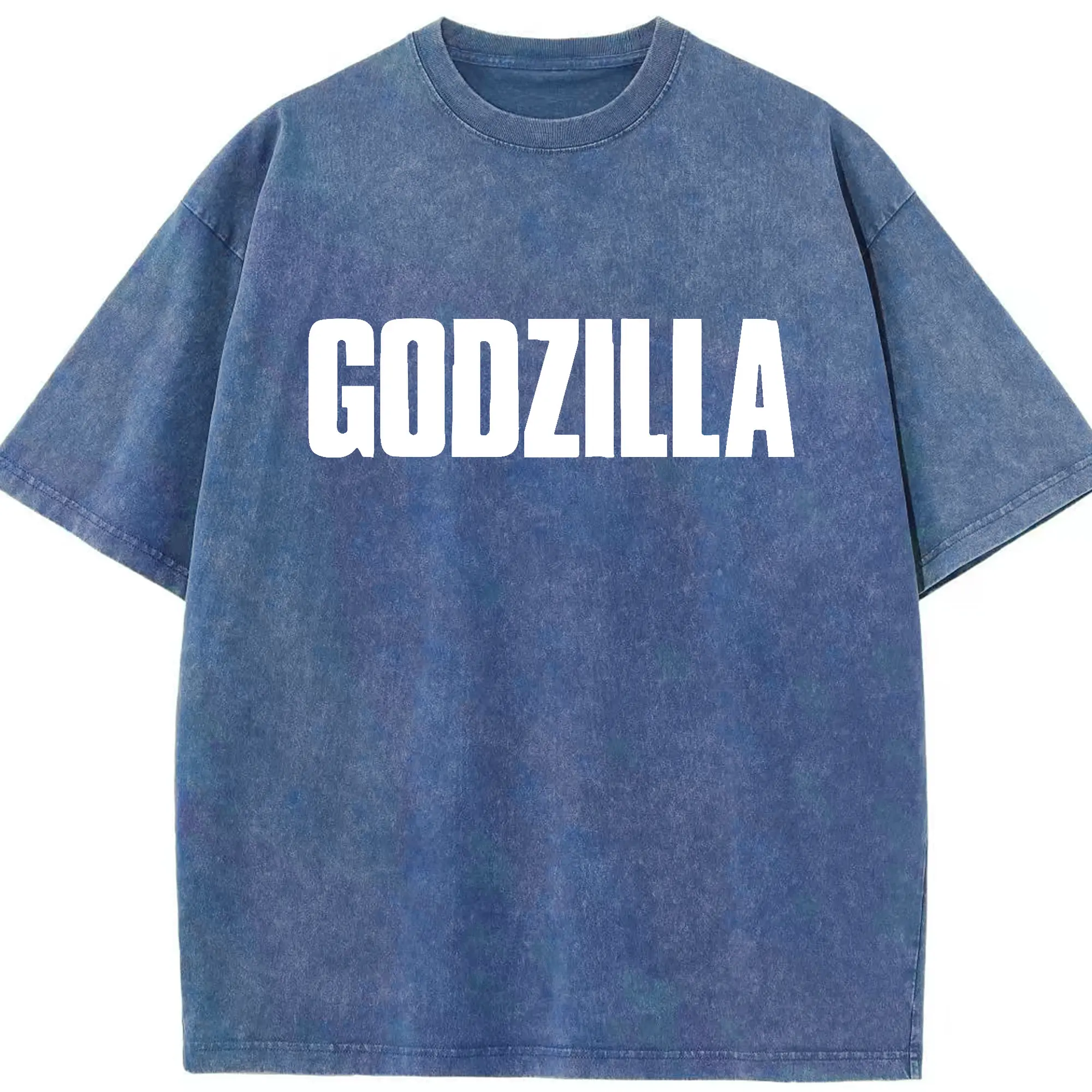 ゴジラ シンプルロゴ - 綿100% ヴィンテージ風 半袖Tシャツ ・ フロントプリント ・ 柔らか肌触り ・ 通気性 快適 ・ スポーツ カジュアル 外出用