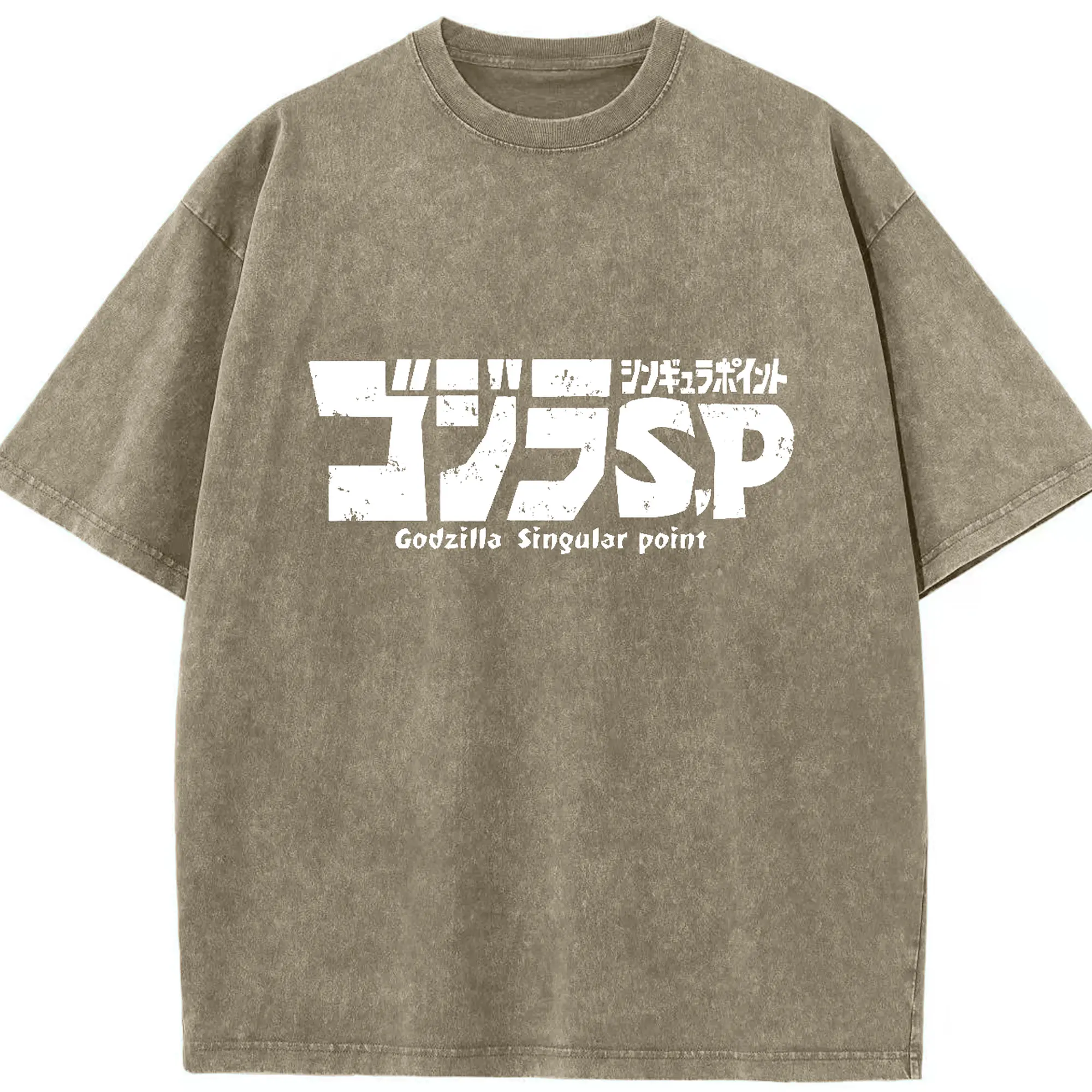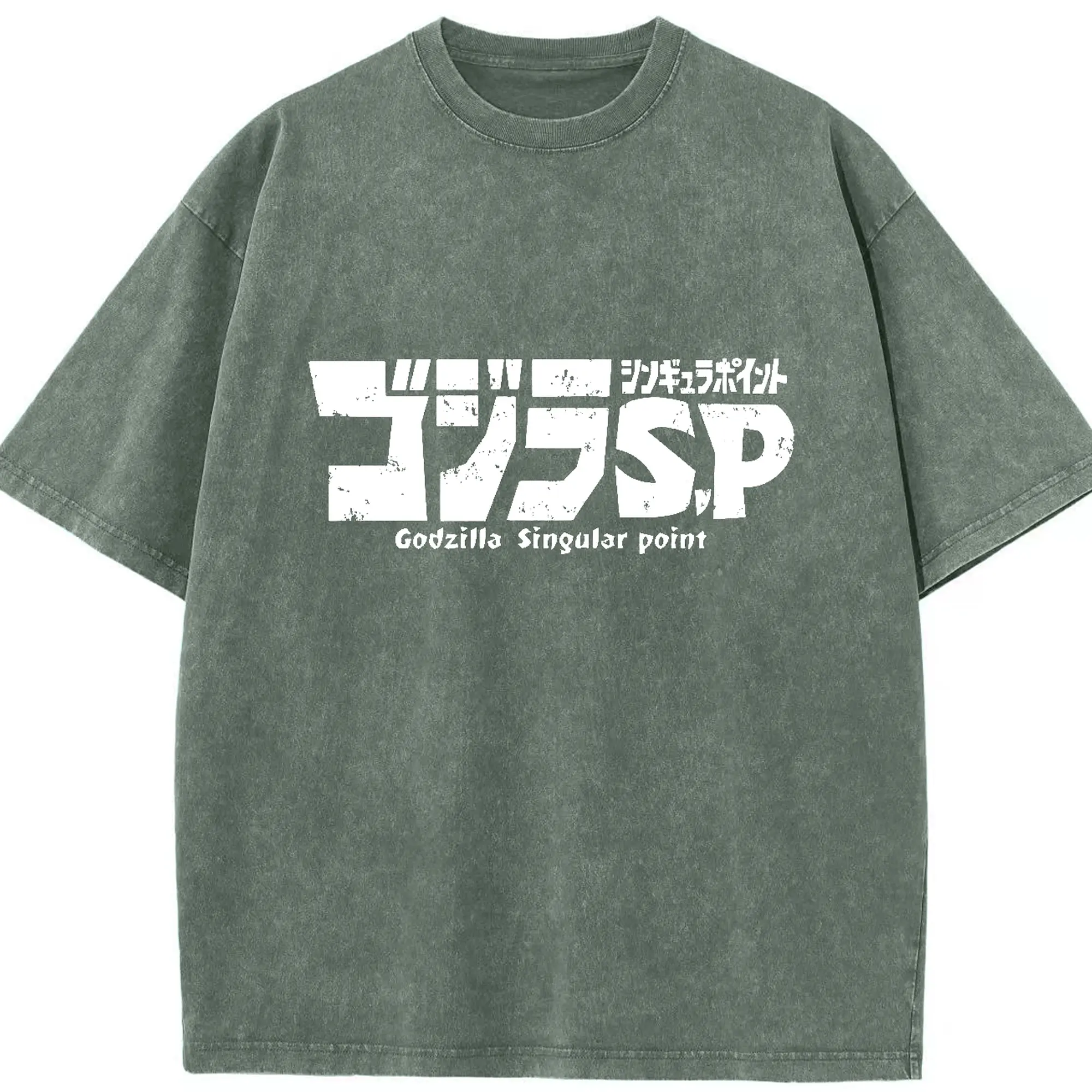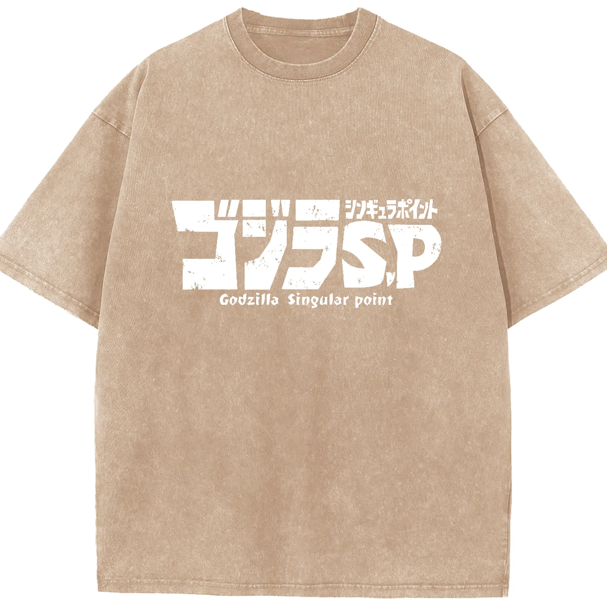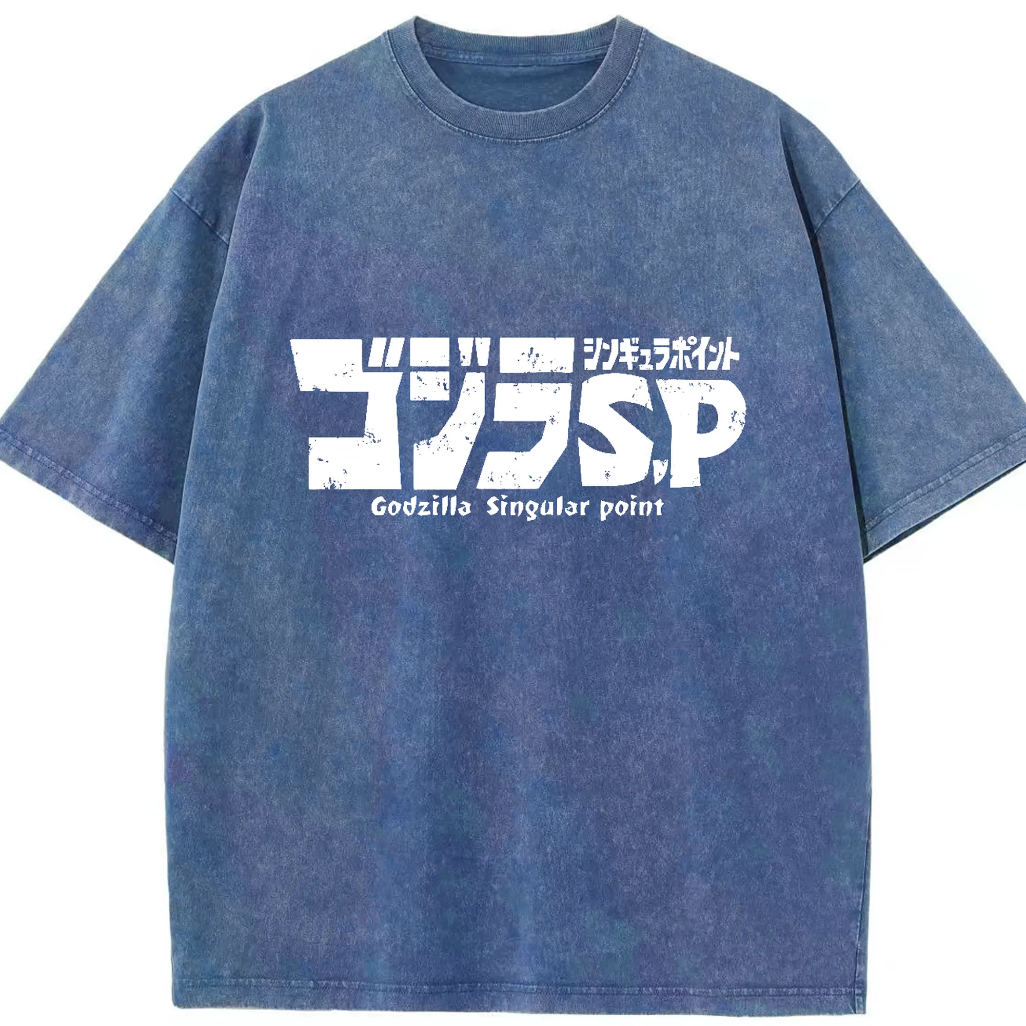 ゴジラ シンプルロゴ - 綿100% ヴィンテージ風 半袖Tシャツ ・ フロントプリント ・ 柔らか肌触り ・ 通気性 快適 ・ スポーツ カジュアル 外出用