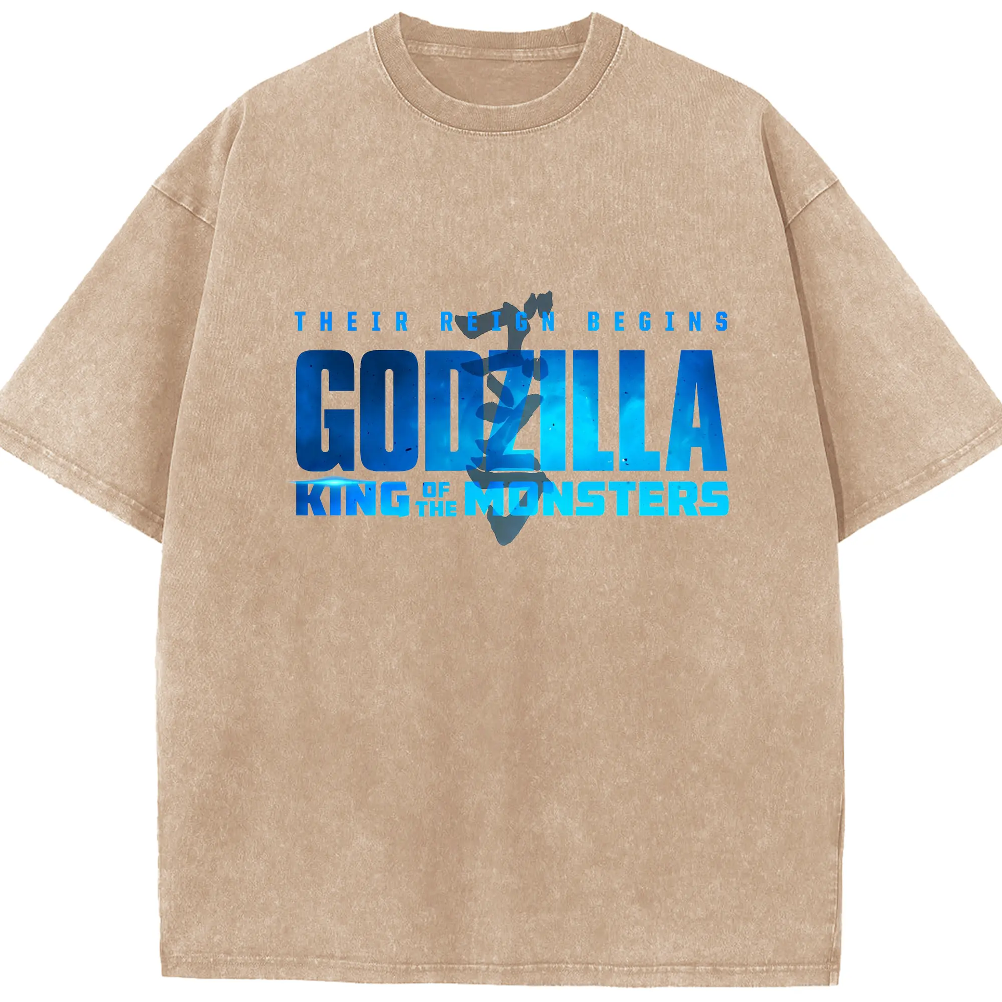 ゴジラ - 綿100% ヴィンテージ風 半袖Tシャツ ・ フロントプリント ・ 柔らか肌触り ・ 通気性 快適 ・ スポーツ カジュアル 外出用