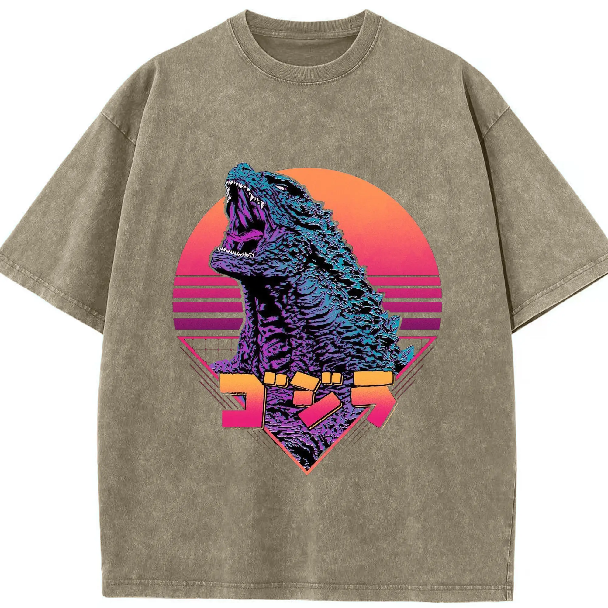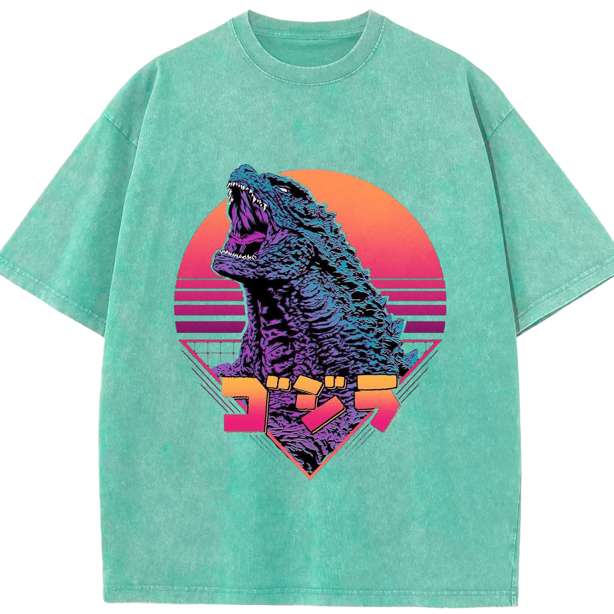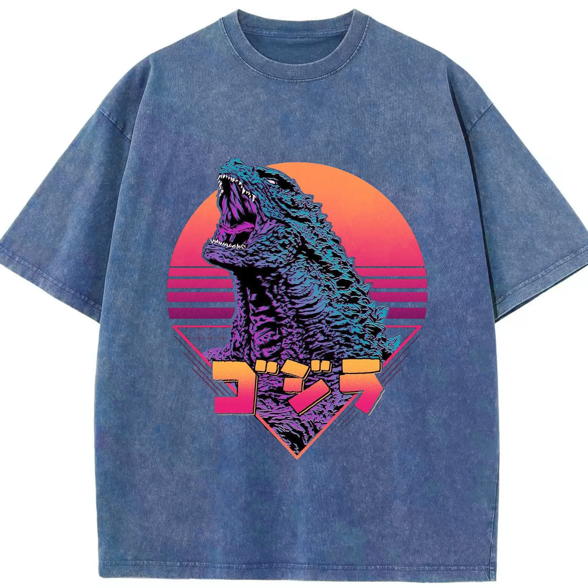 ゴジラ デストロイア - 綿100% ヴィンテージ風 半袖Tシャツ ・ フロントプリント ・ 柔らか肌触り ・ 通気性 快適 ・ スポーツ カジュアル 外出用