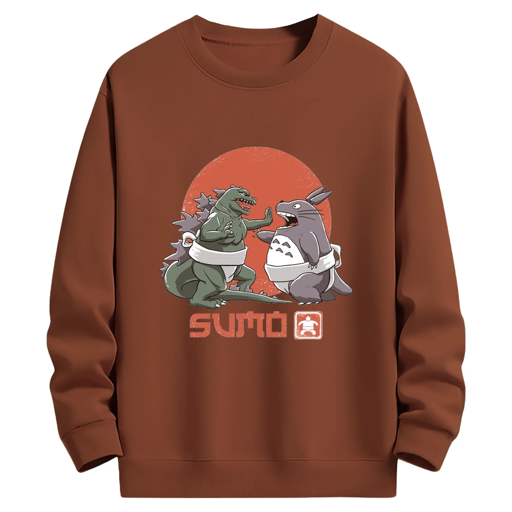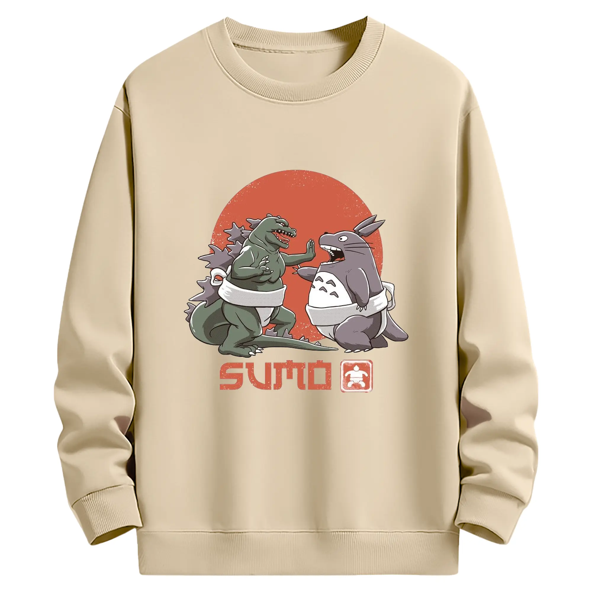 ゴジラ トトロ相撲コラボ - 高品質 クルーネック スウェット ・ コットン59% ポリエステル41% ・ ユニセックス 長袖 トレーナー ・ カジュアル デイリー スポーツ 散歩用