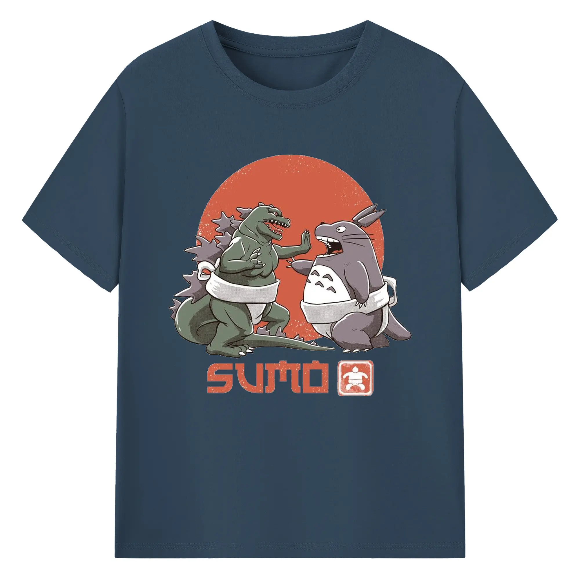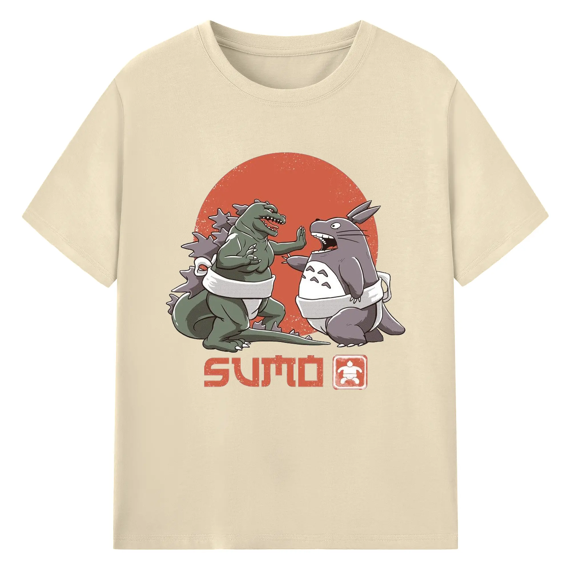 ゴジラ トトロ相撲コラボ - 綿100% ヴィンテージ風 半袖Tシャツ ・ フロントプリント ・ 柔らか肌触り ・ 通気性 快適 ・ スポーツ カジュアル 外出用