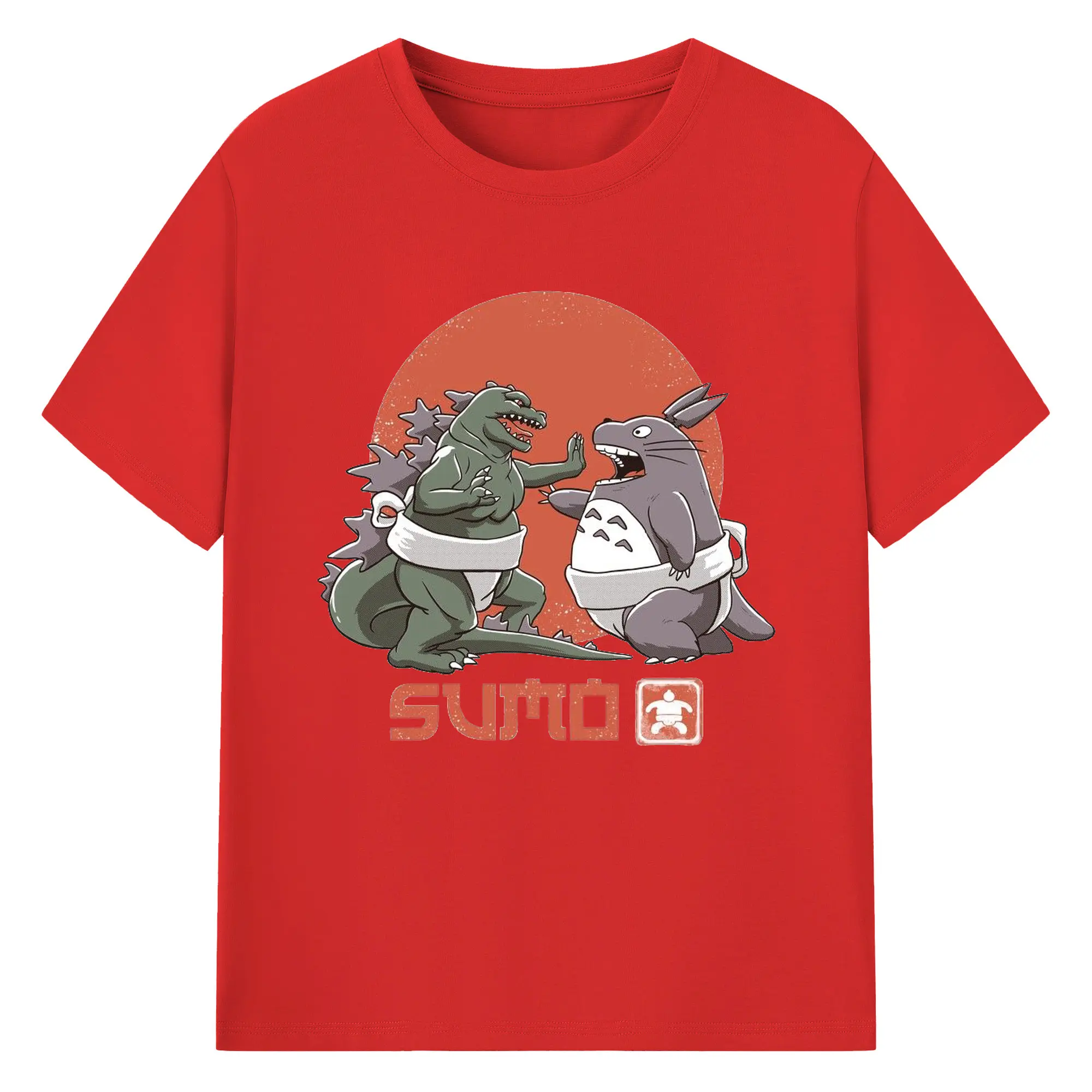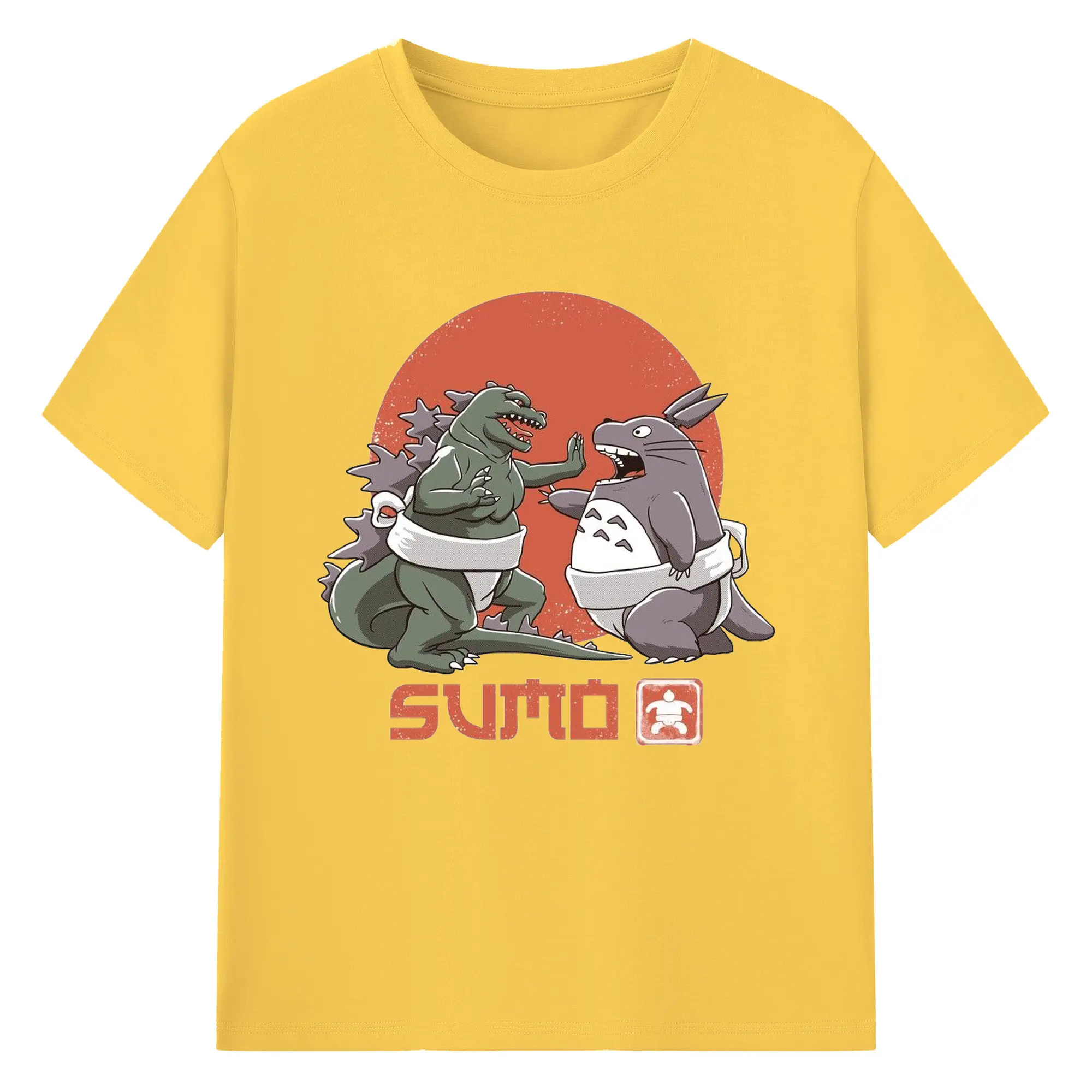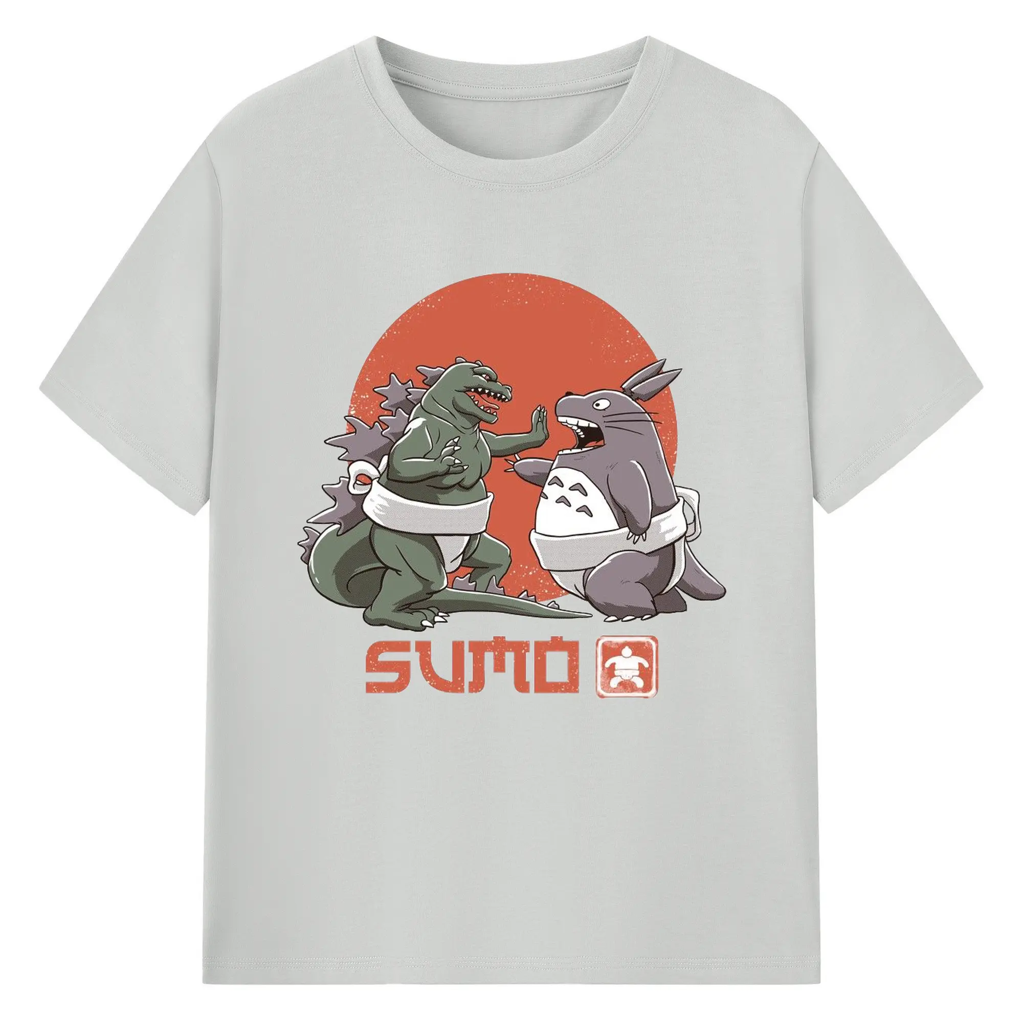 ゴジラ トトロ相撲コラボ - 綿100% 半袖Tシャツ ・ フロントプリント ・ 快適 通気性 ・ 日常使い 散歩 スポーツ用