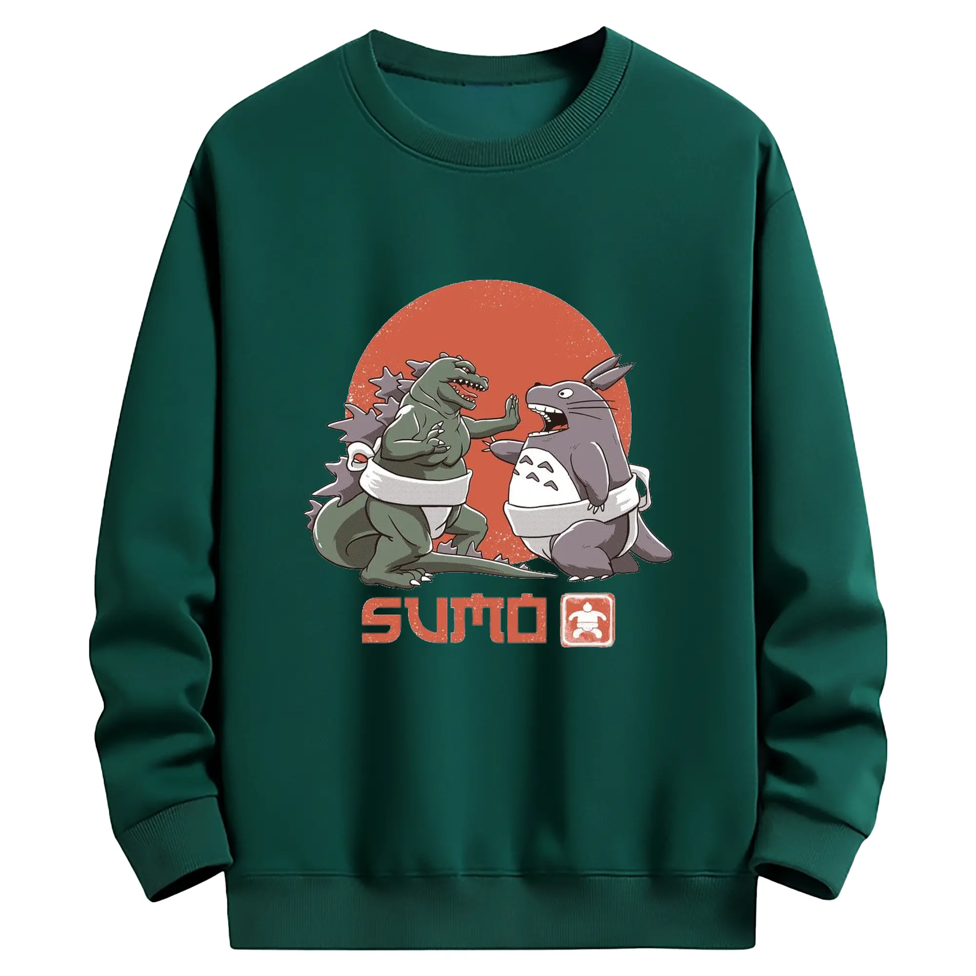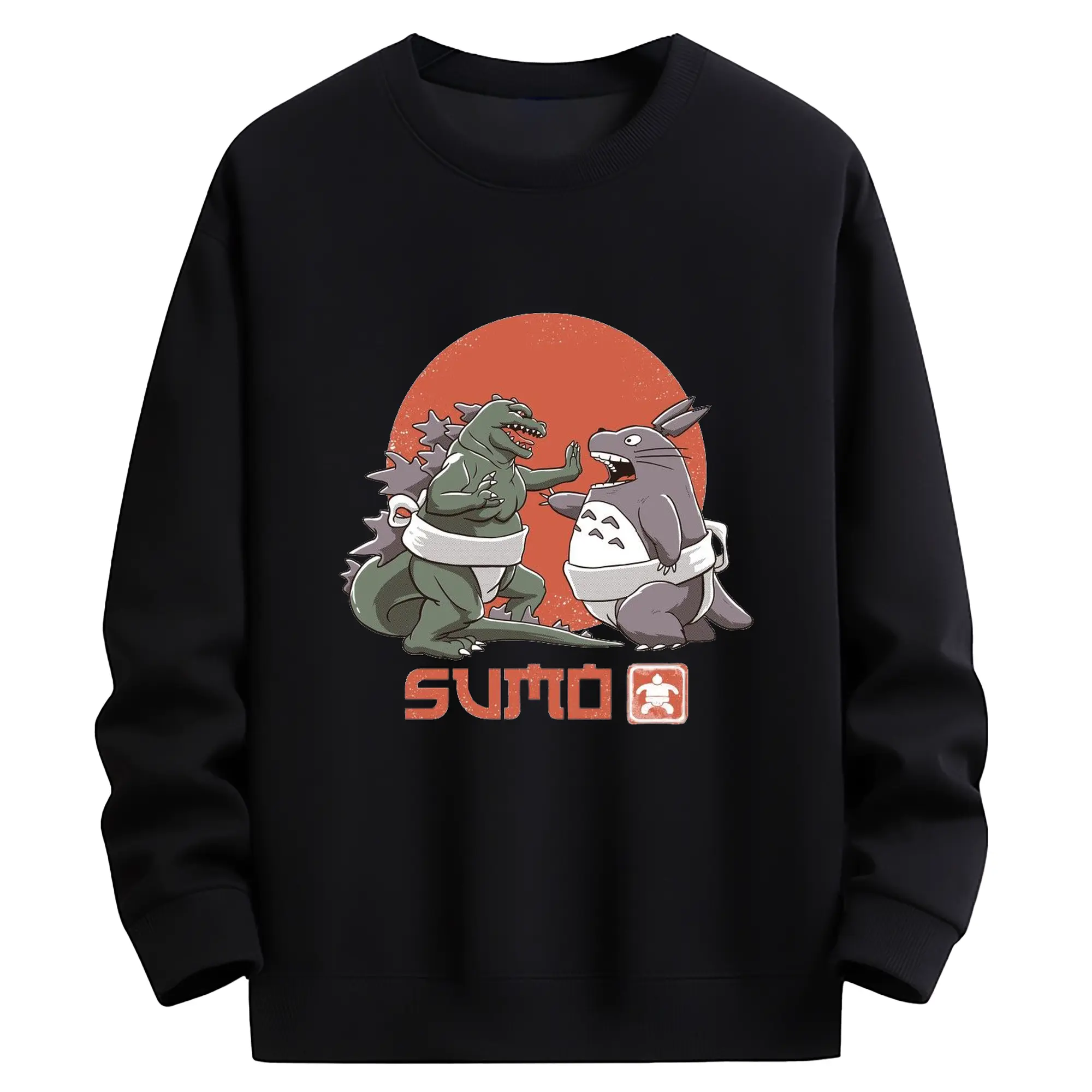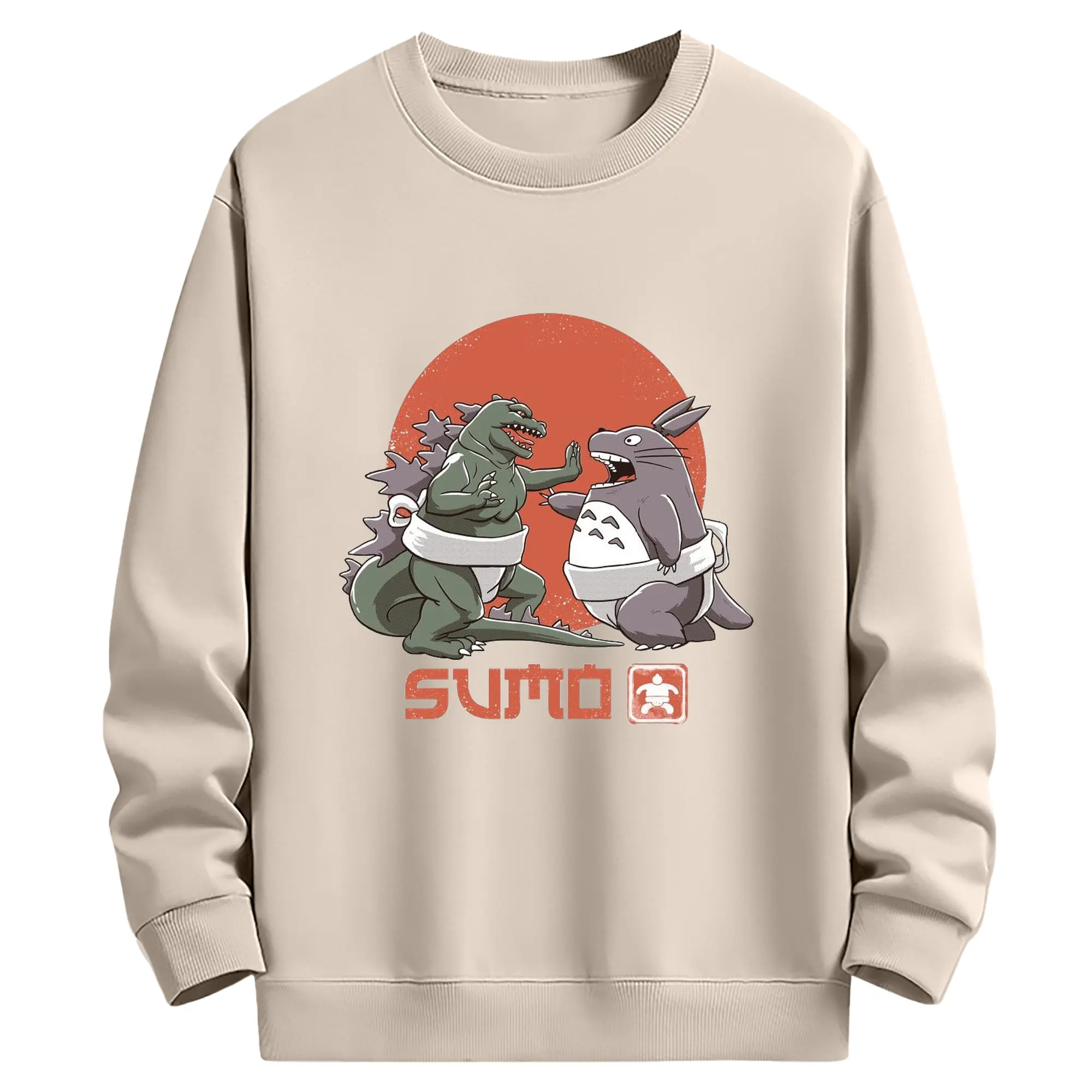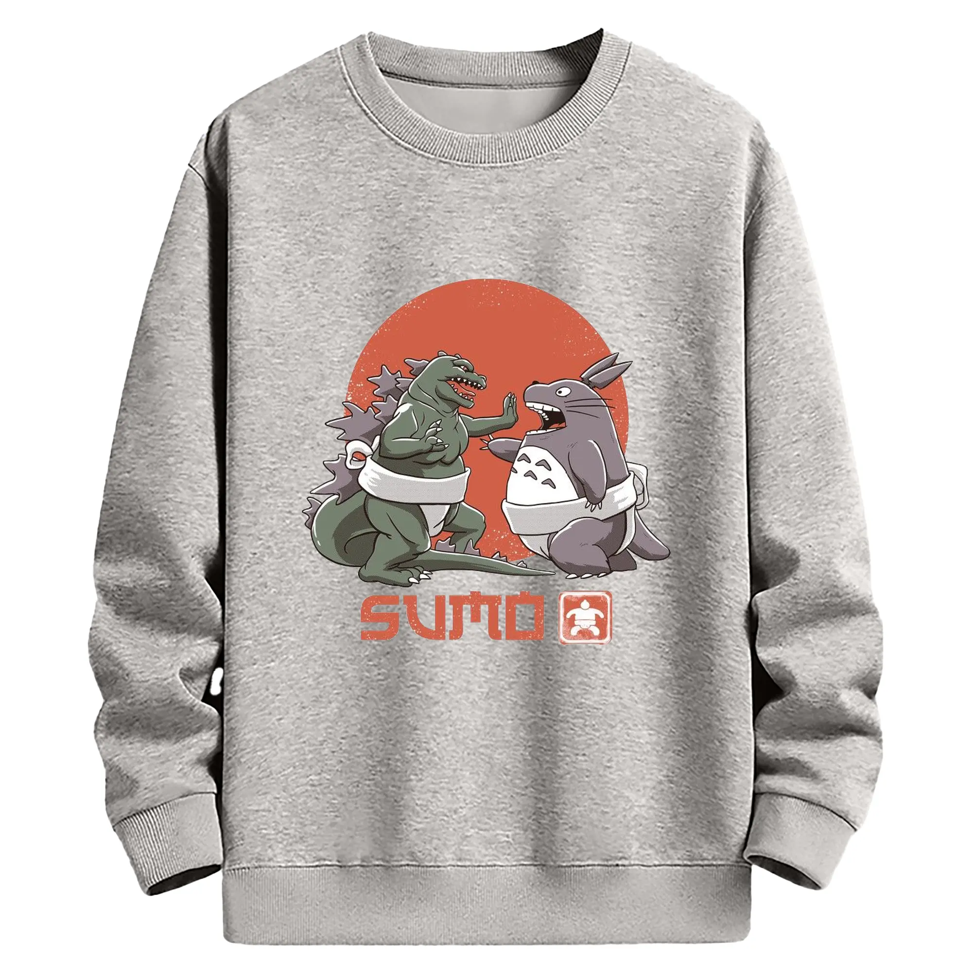 ゴジラ トトロ相撲コラボ - 高品質 クルーネック スウェット ・ コットン59% ポリエステル41% ・ ユニセックス 長袖 トレーナー ・ カジュアル デイリー スポーツ 散歩用