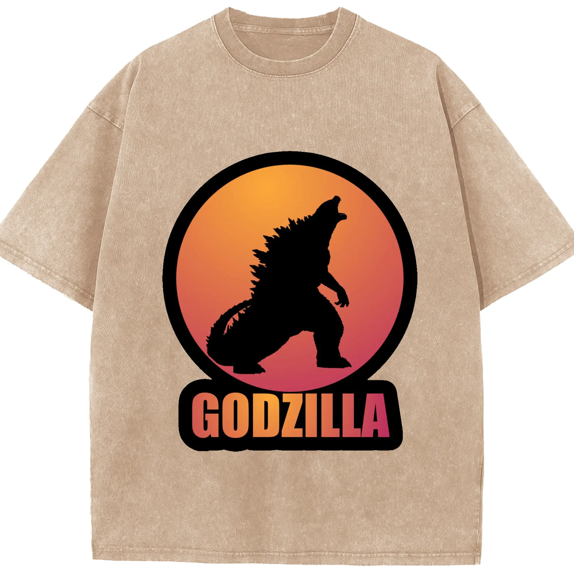 ゴジラ 定番ロゴ - 綿100% ヴィンテージ風 半袖Tシャツ ・ フロントプリント ・ 柔らか肌触り ・ 通気性 快適 ・ スポーツ カジュアル 外出用