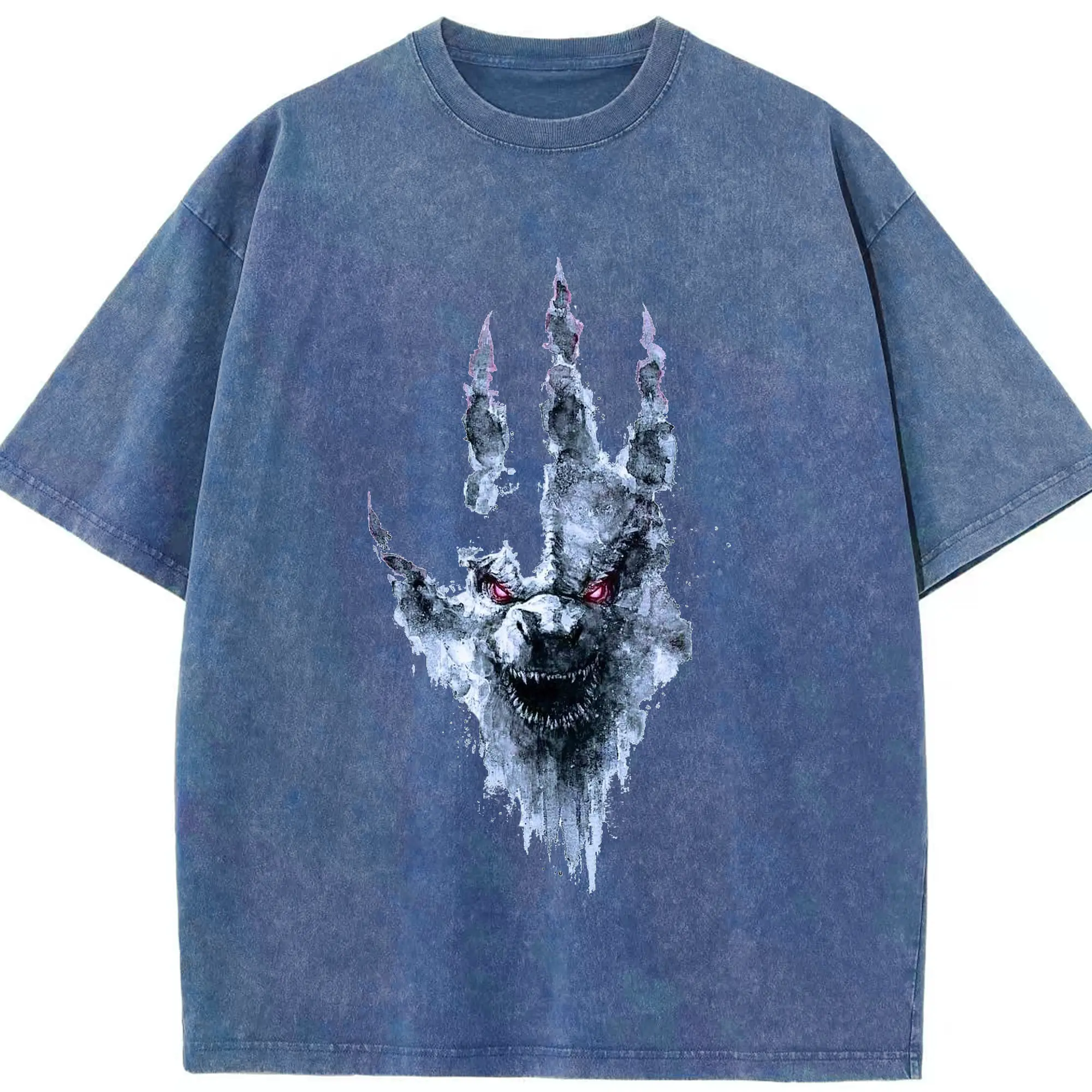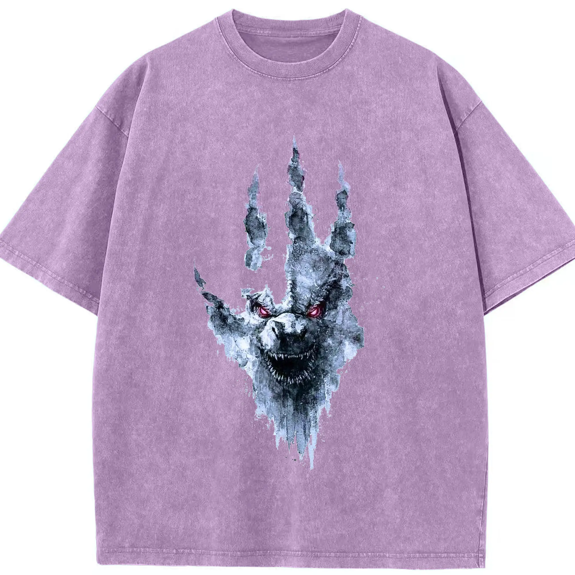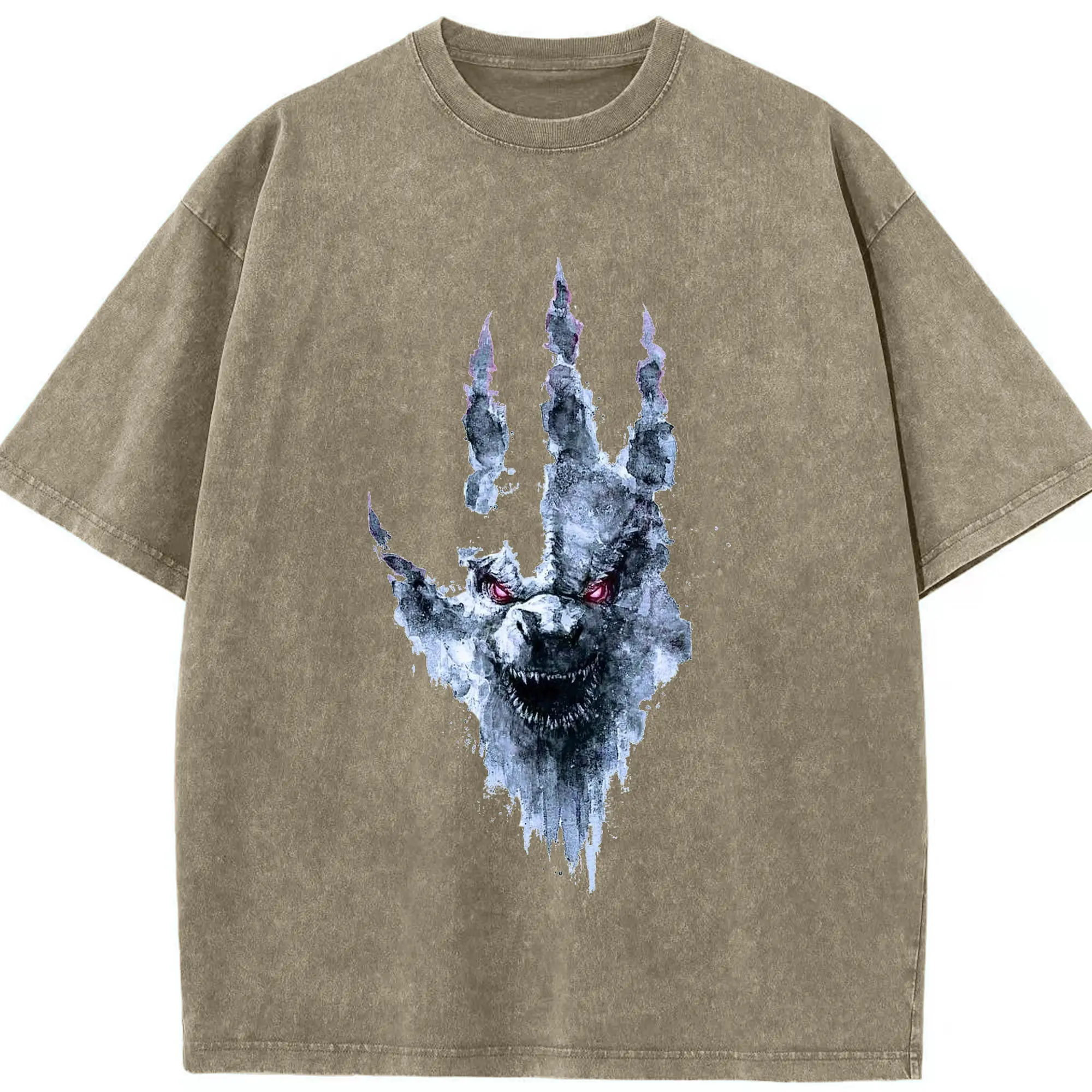 ゴジラ 手のひらアート - 綿100% ヴィンテージ風 半袖Tシャツ ・ フロントプリント ・ 柔らか肌触り ・ 通気性 快適 ・ スポーツ カジュアル 外出用