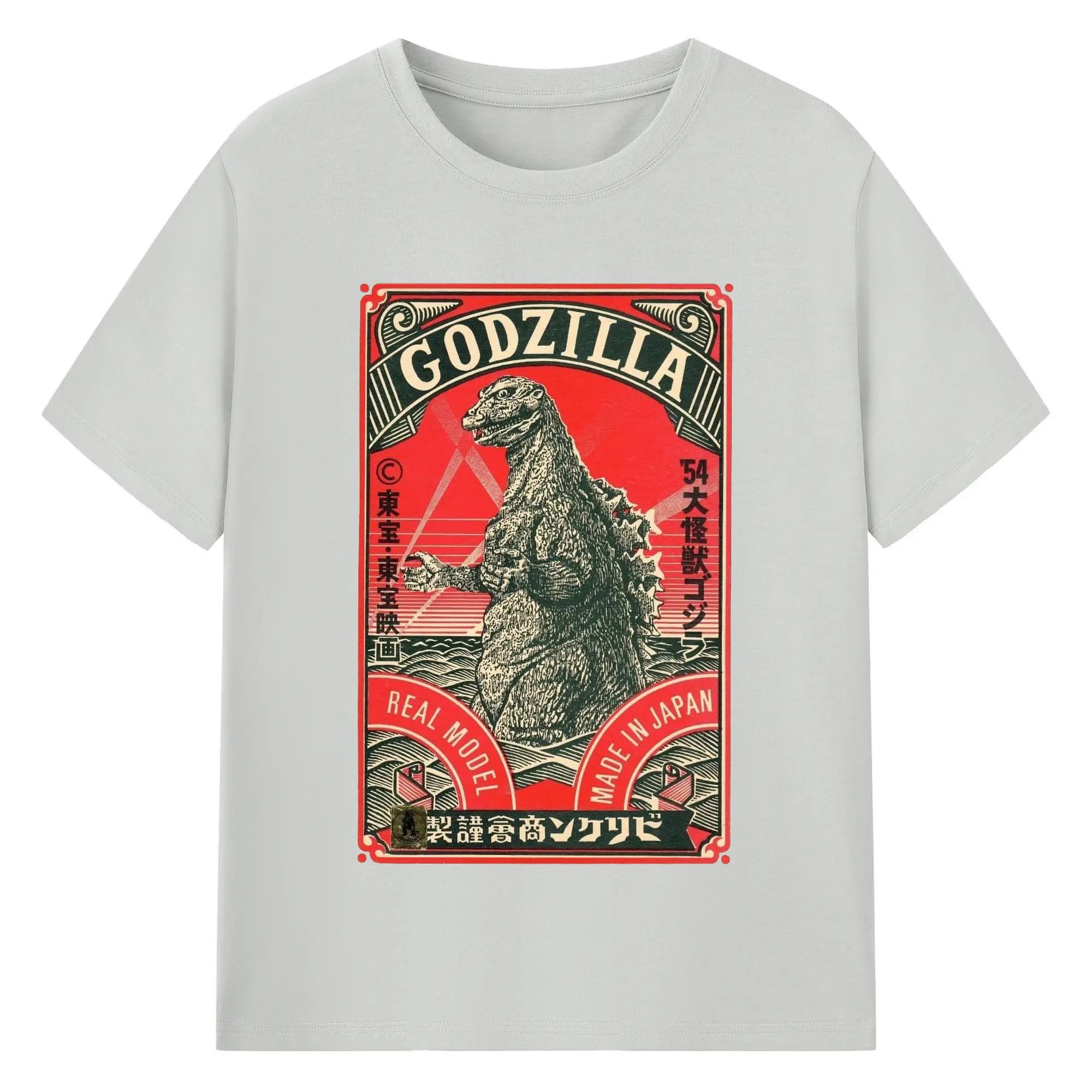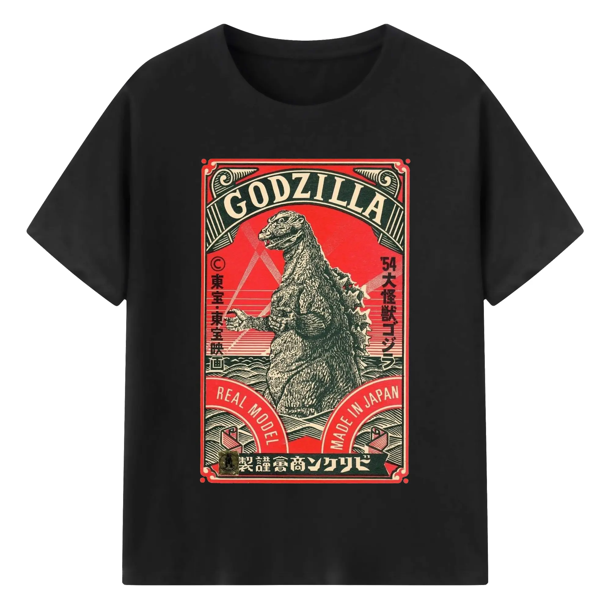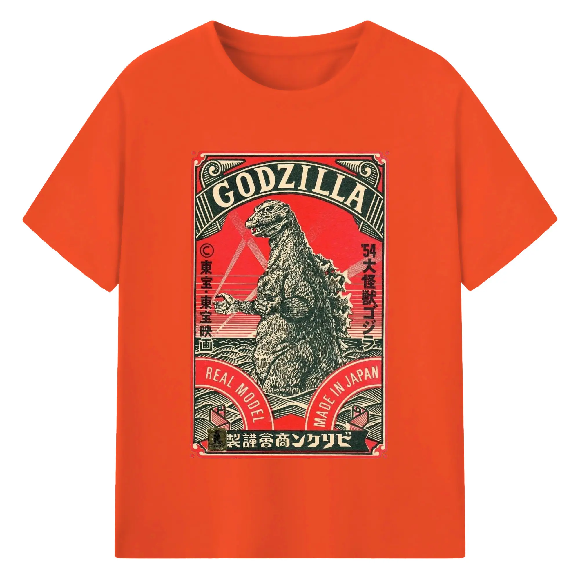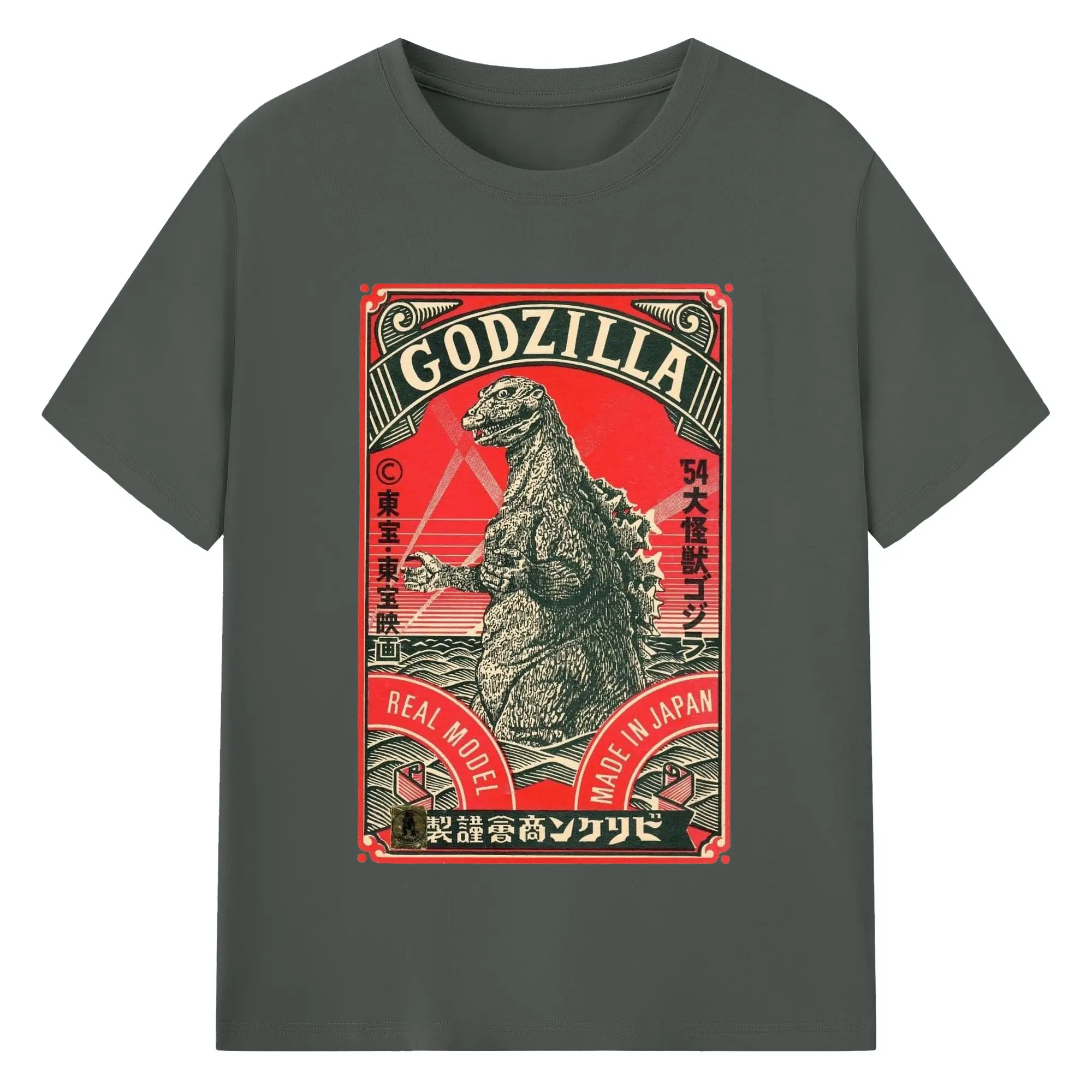 ゴジラ 昭和ゴジラ - 綿100% ヴィンテージ風 半袖Tシャツ ・ フロントプリント ・ 柔らか肌触り ・ 通気性 快適 ・ スポーツ カジュアル 外出用