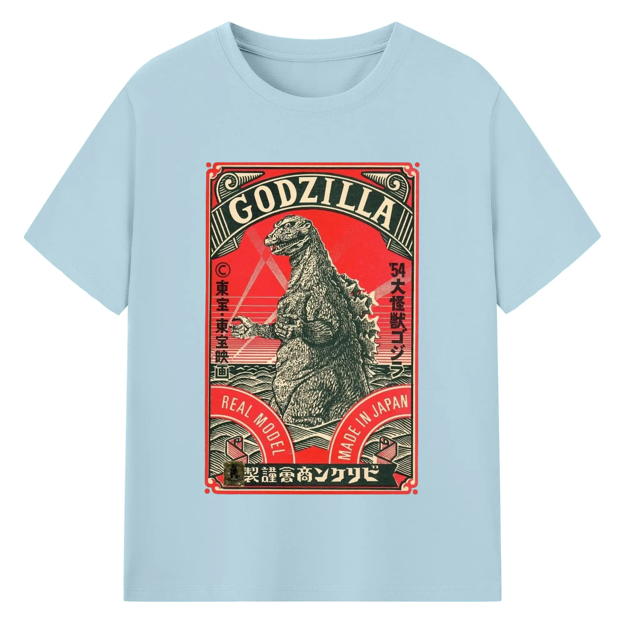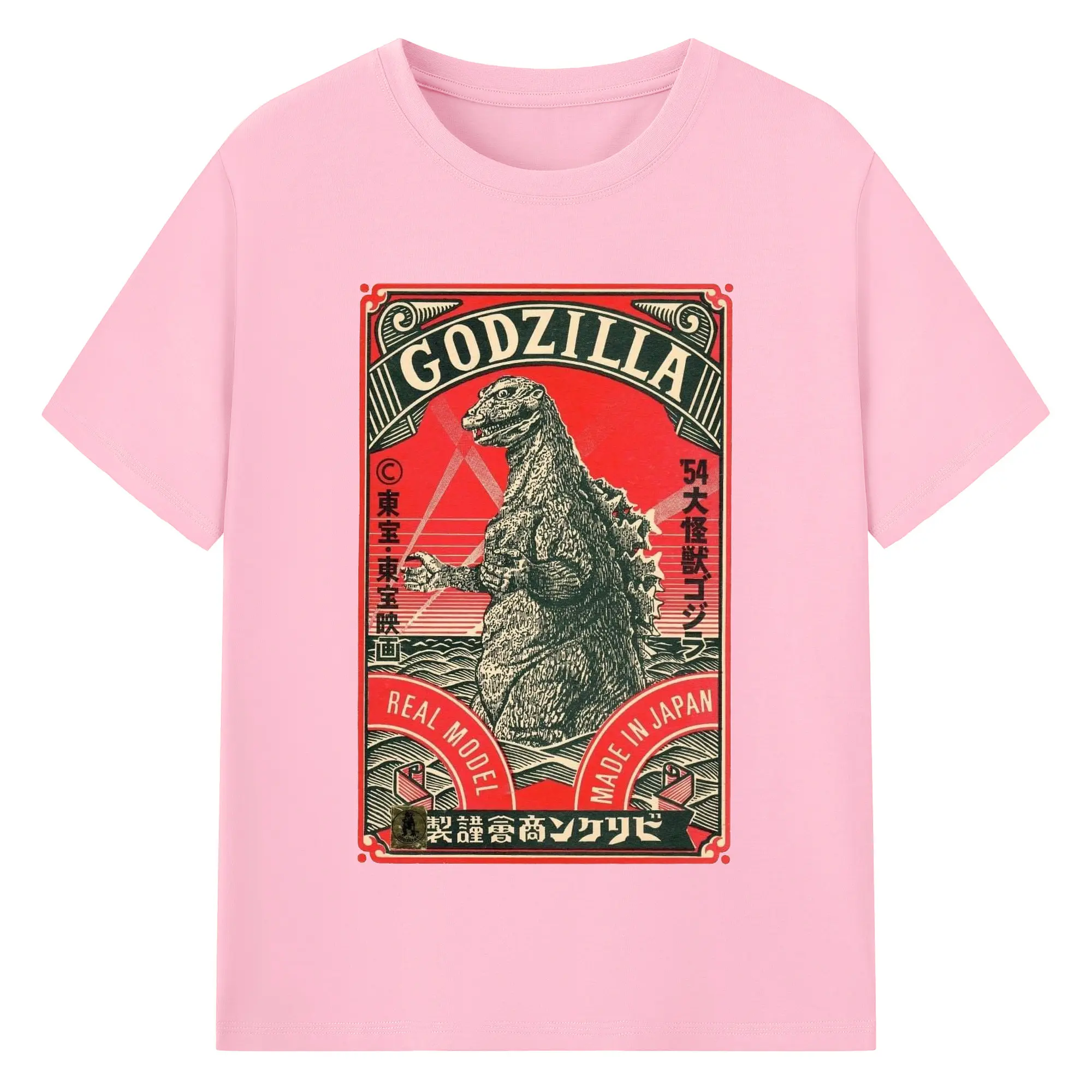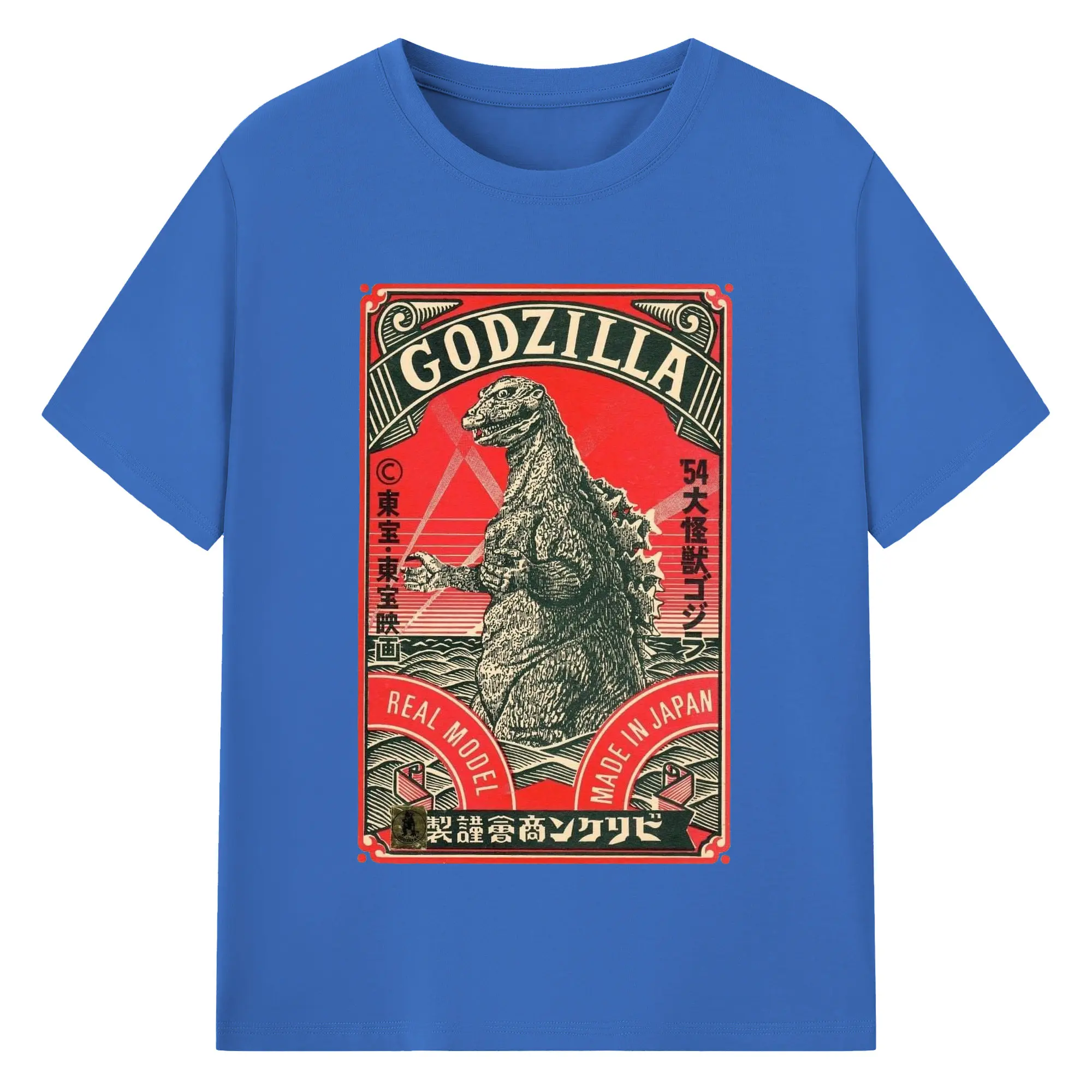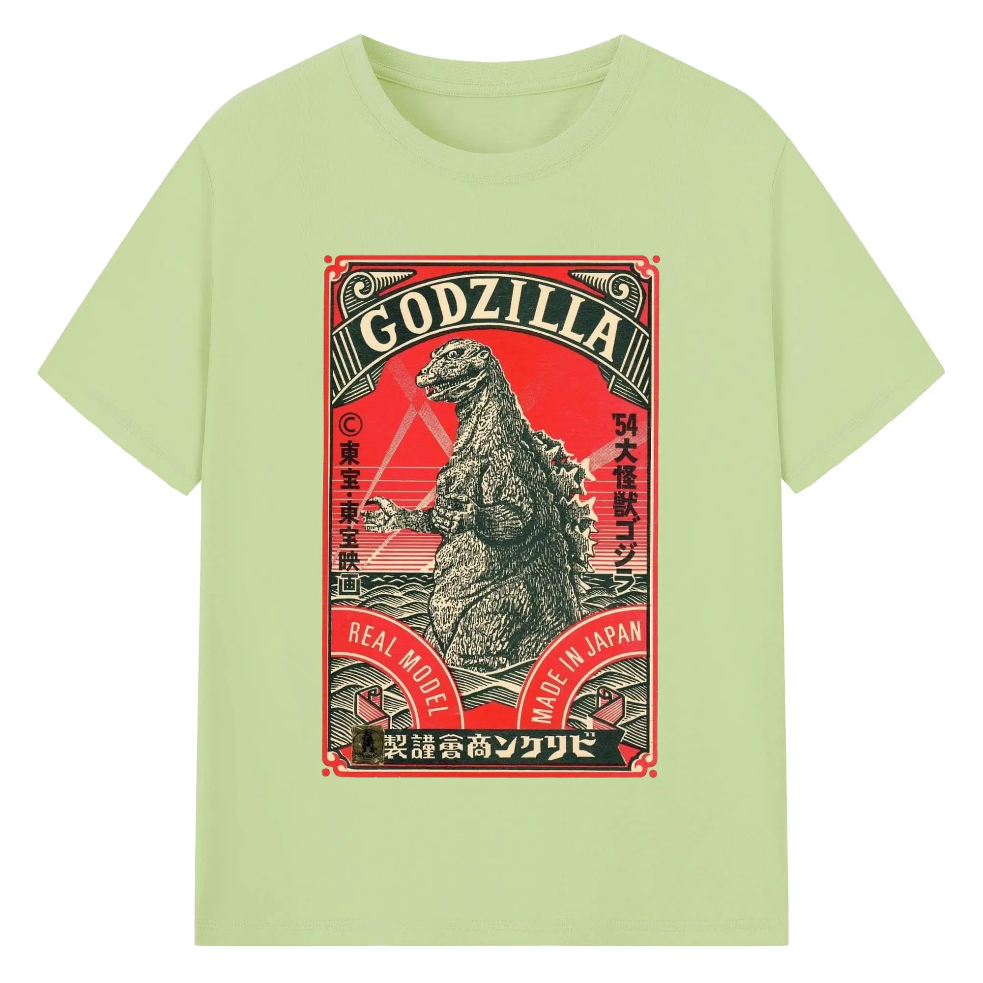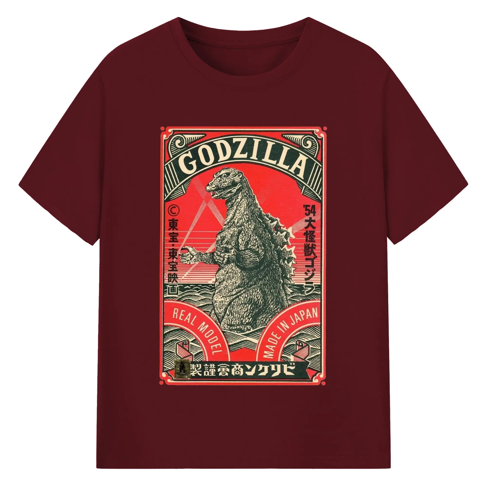 ゴジラ 昭和ゴジラ - 綿100% ヴィンテージ風 半袖Tシャツ ・ フロントプリント ・ 柔らか肌触り ・ 通気性 快適 ・ スポーツ カジュアル 外出用