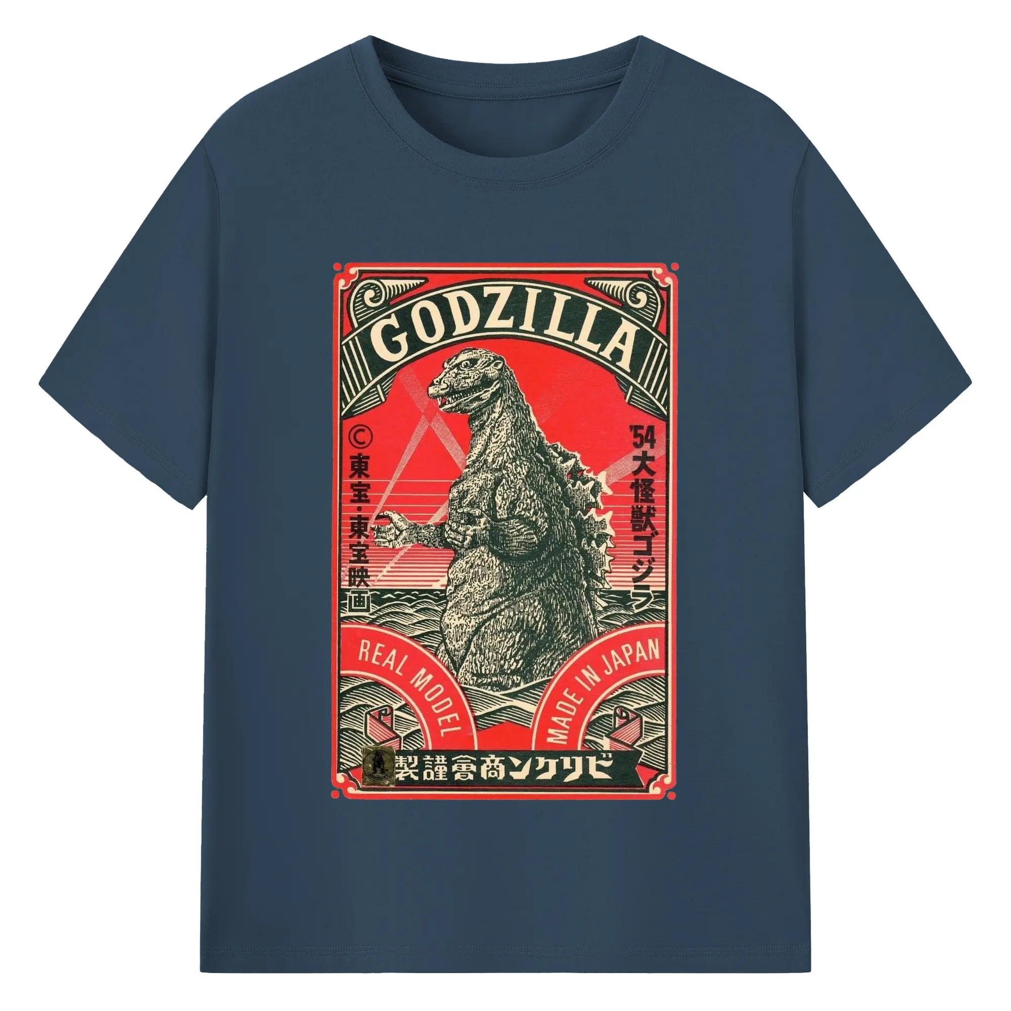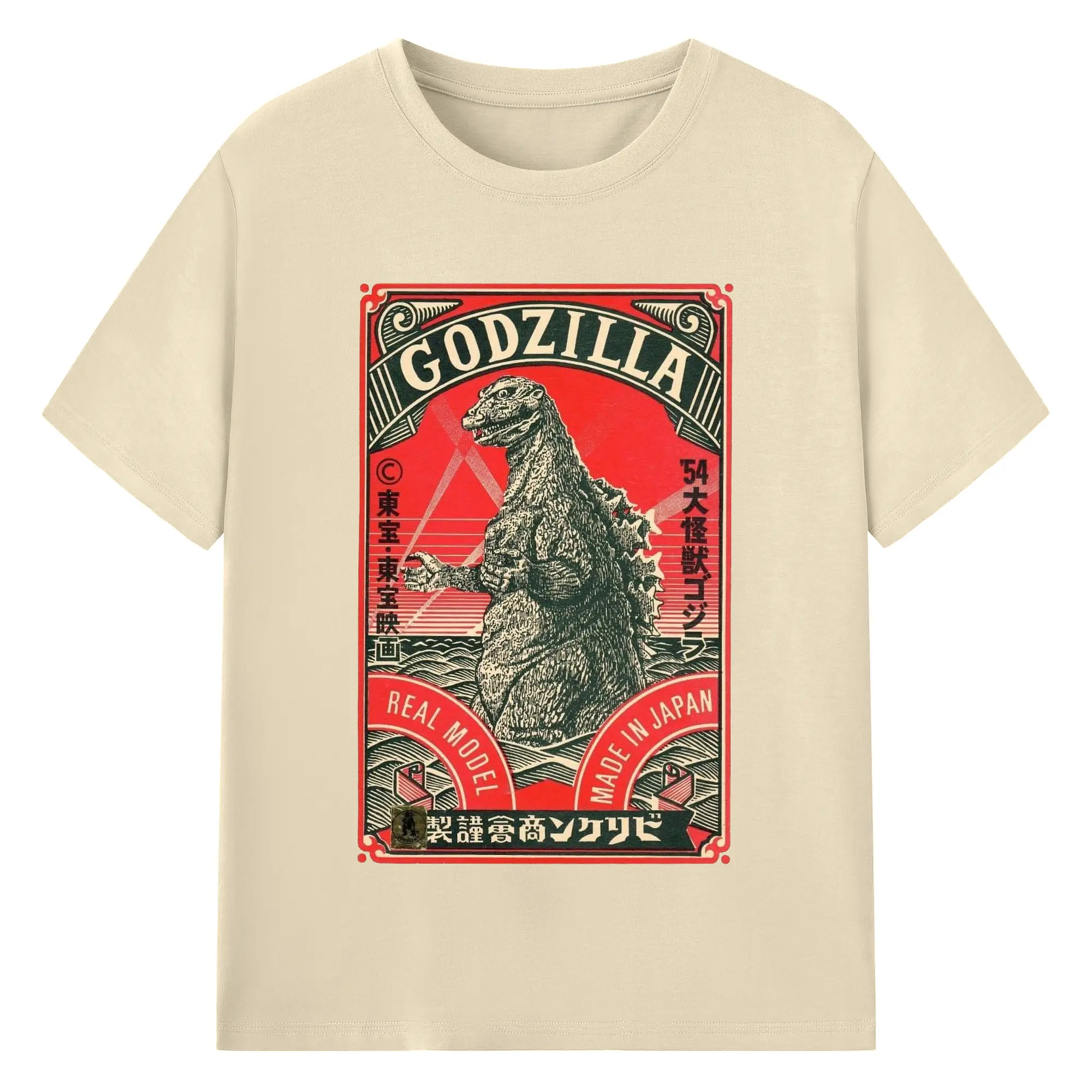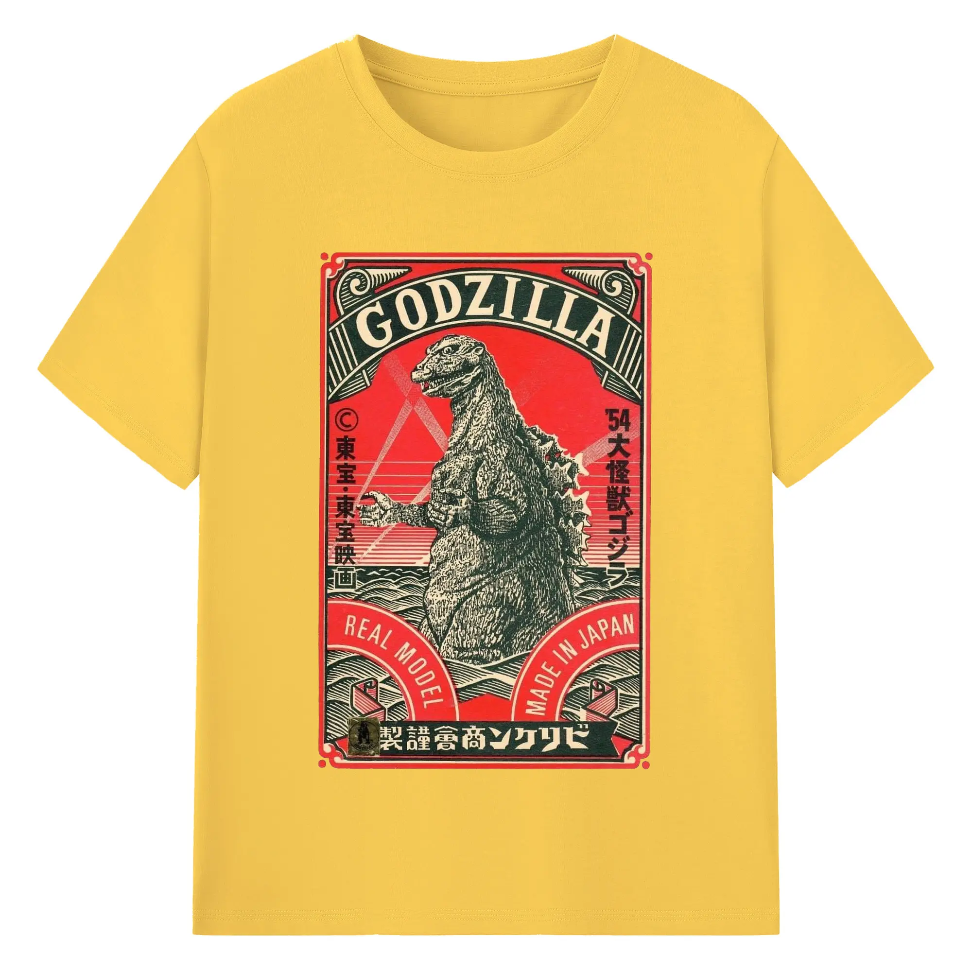 ゴジラ 昭和ゴジラ - 綿100% ヴィンテージ風 半袖Tシャツ ・ フロントプリント ・ 柔らか肌触り ・ 通気性 快適 ・ スポーツ カジュアル 外出用
