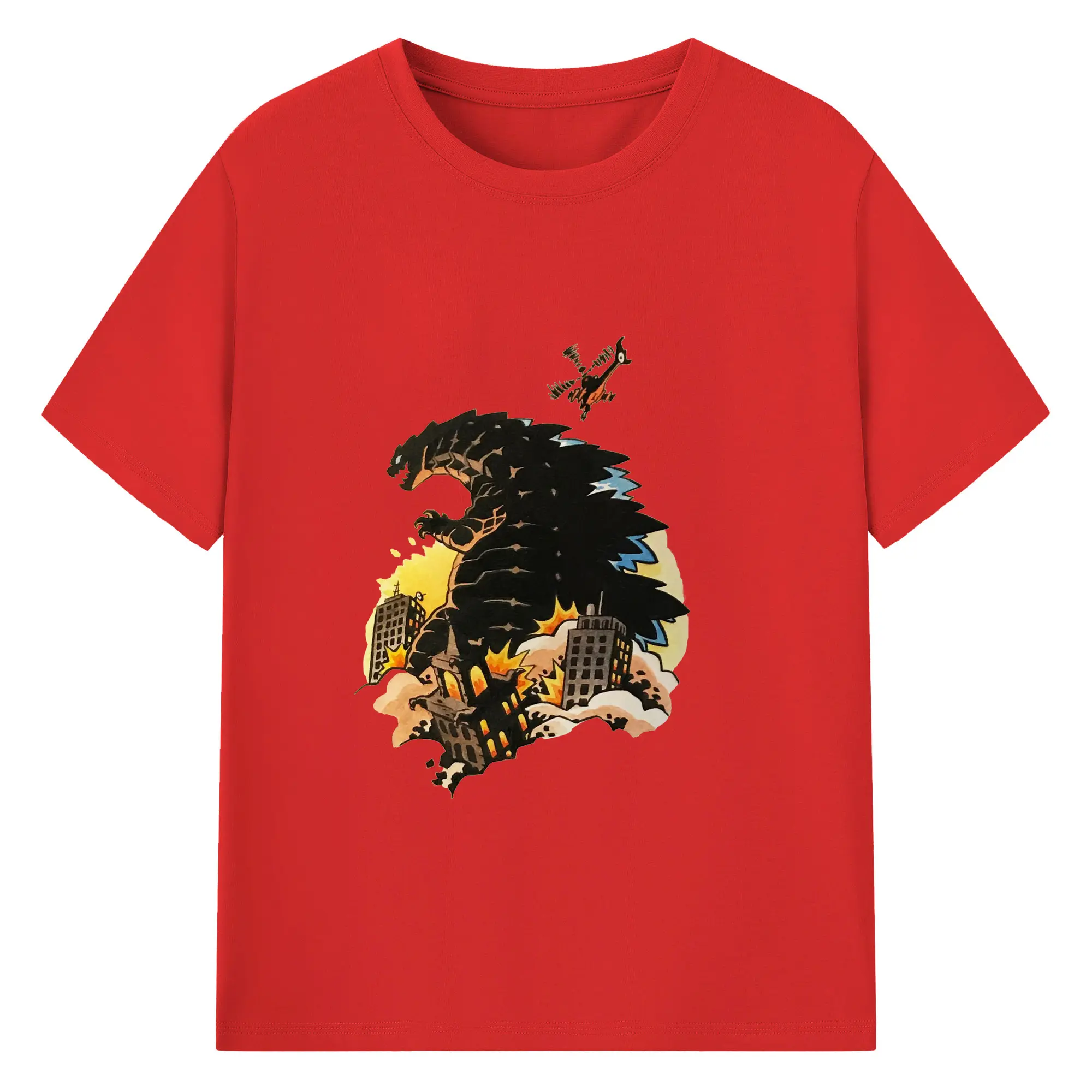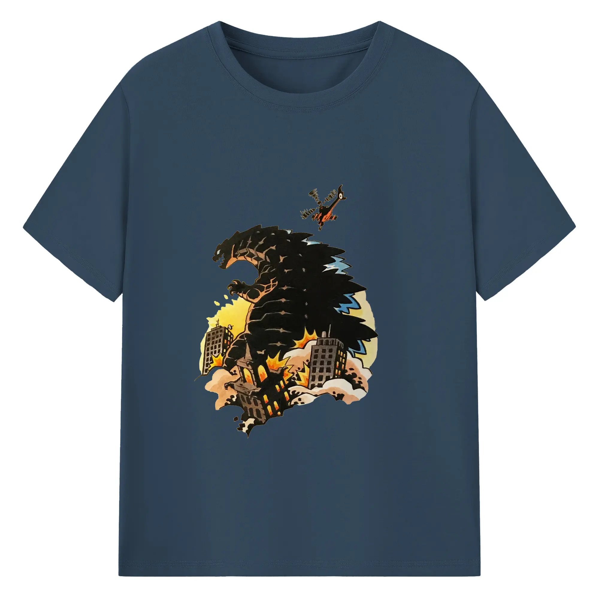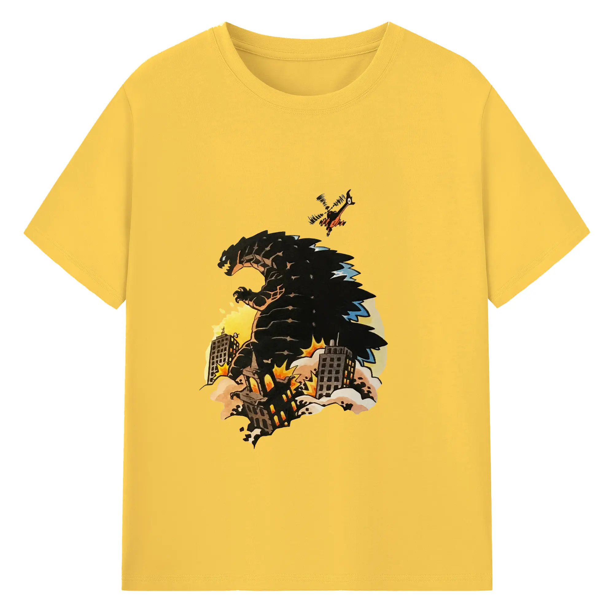 ゴジラ - 綿100% 半袖Tシャツ ・ フロントプリント ・ 快適 通気性 ・ 日常使い 散歩 スポーツ用