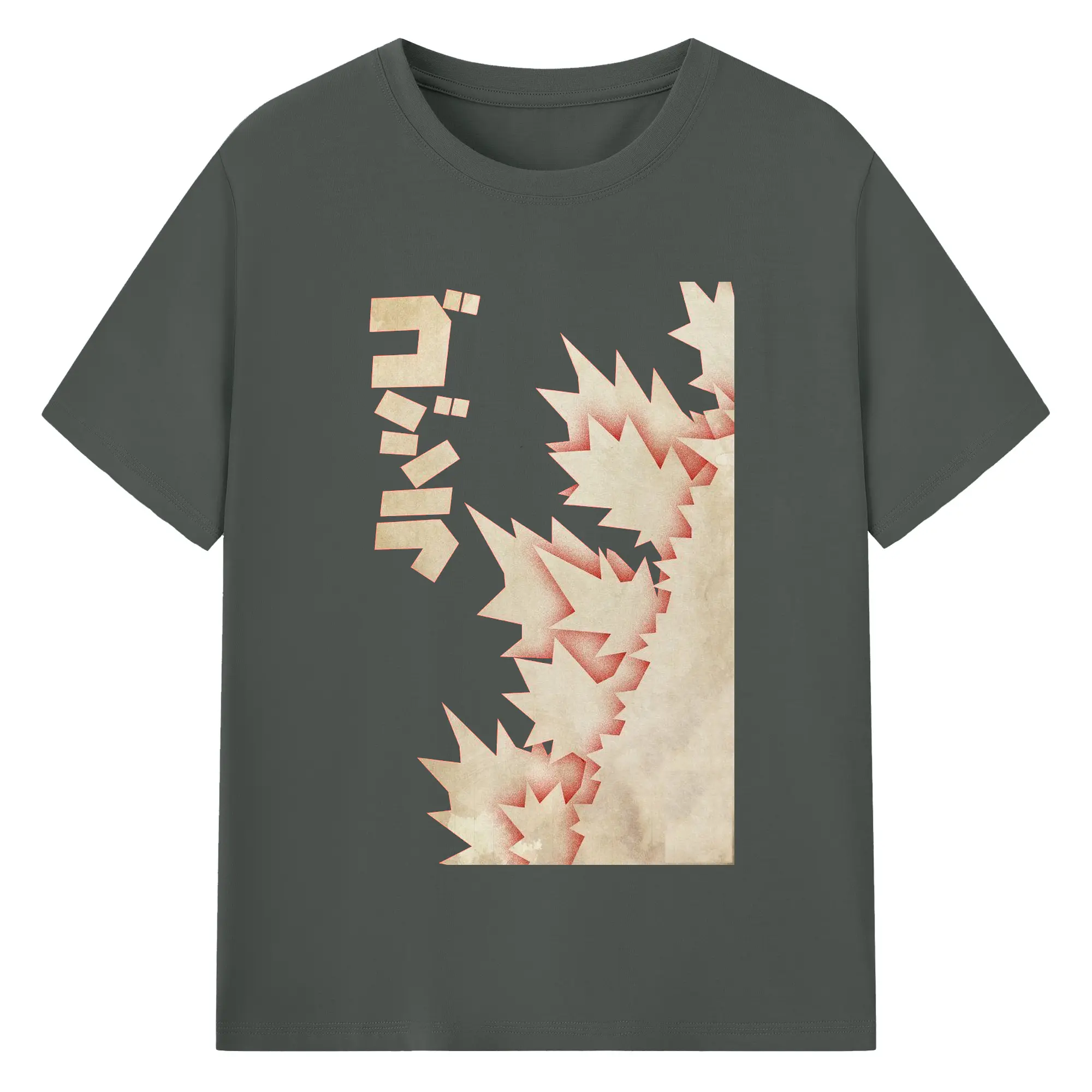 ゴジラ - 綿100% ヴィンテージ風 半袖Tシャツ ・ フロントプリント ・ 柔らか肌触り ・ 通気性 快適 ・ スポーツ カジュアル 外出用