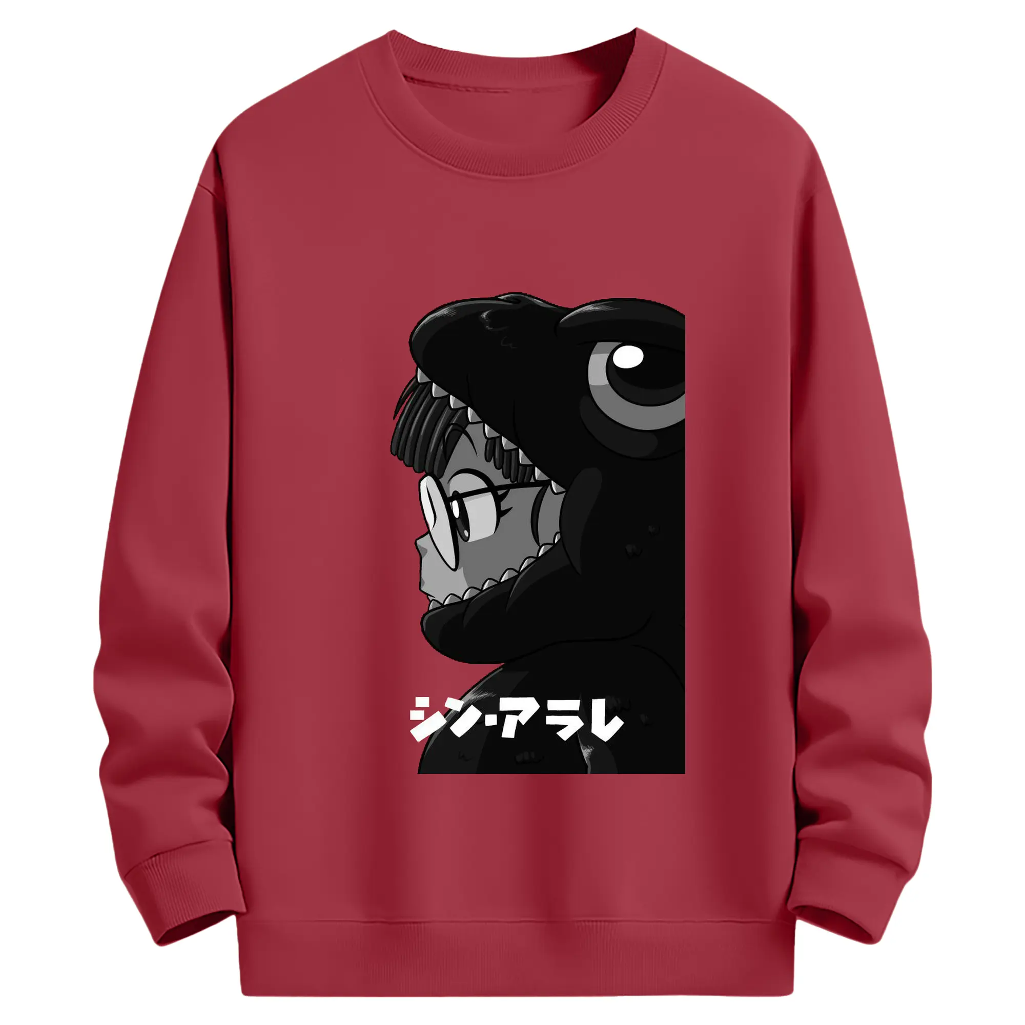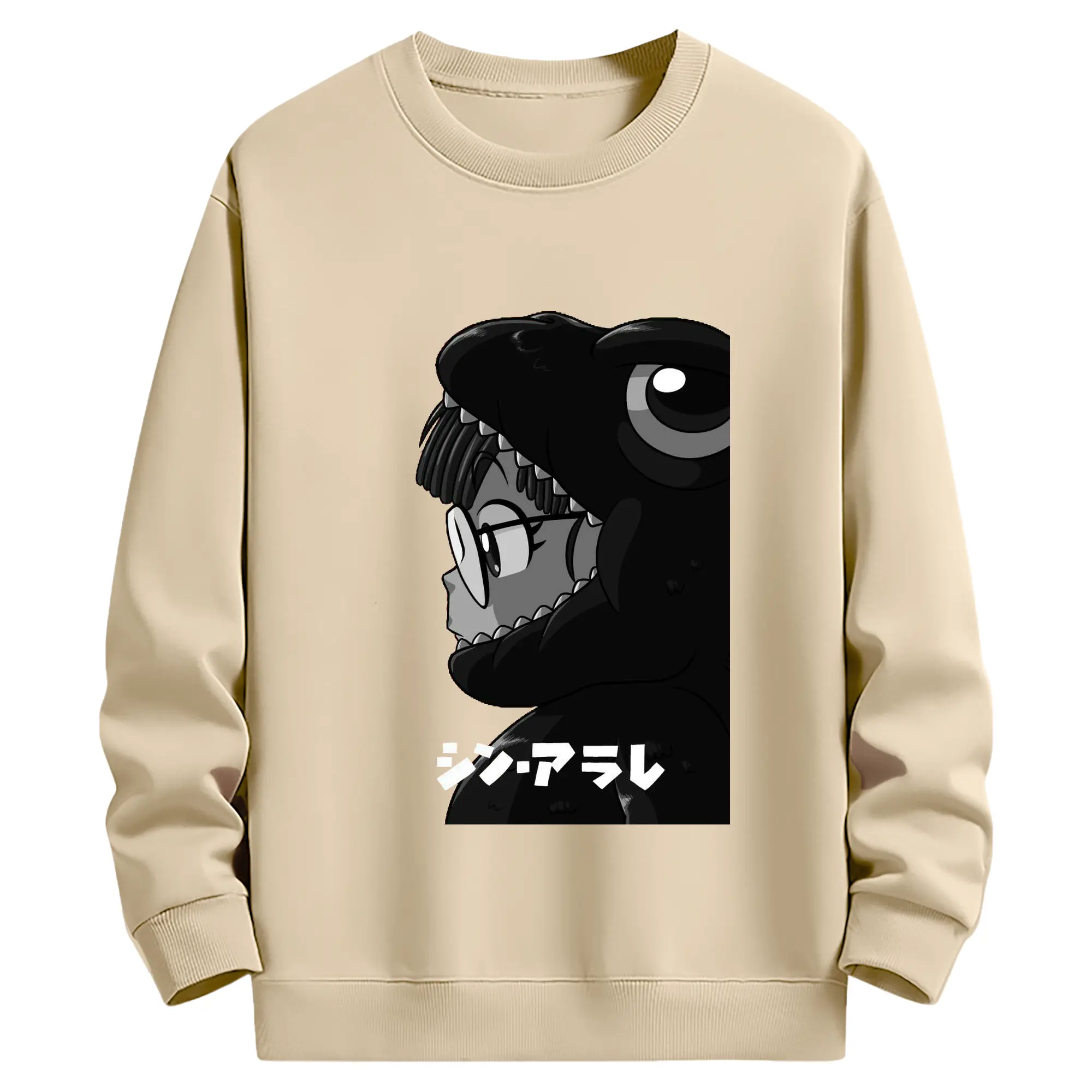 ゴジラ Dr.スランプコラボ - 高品質 クルーネック スウェット ・ コットン59% ポリエステル41% ・ ユニセックス 長袖 トレーナー ・ カジュアル デイリー スポーツ 散歩用