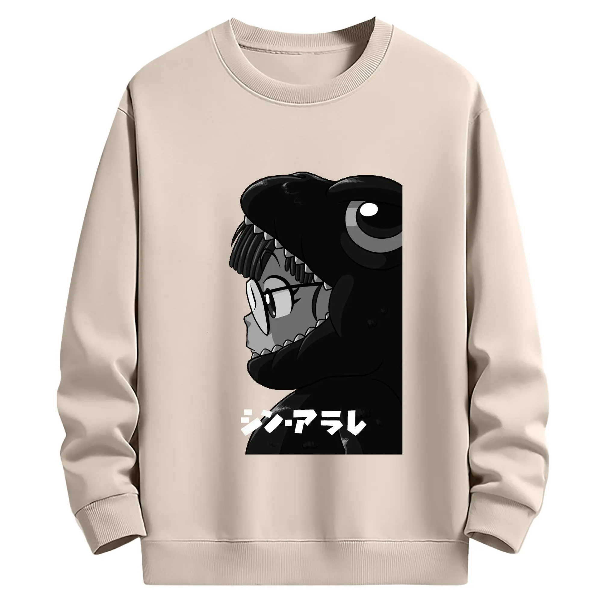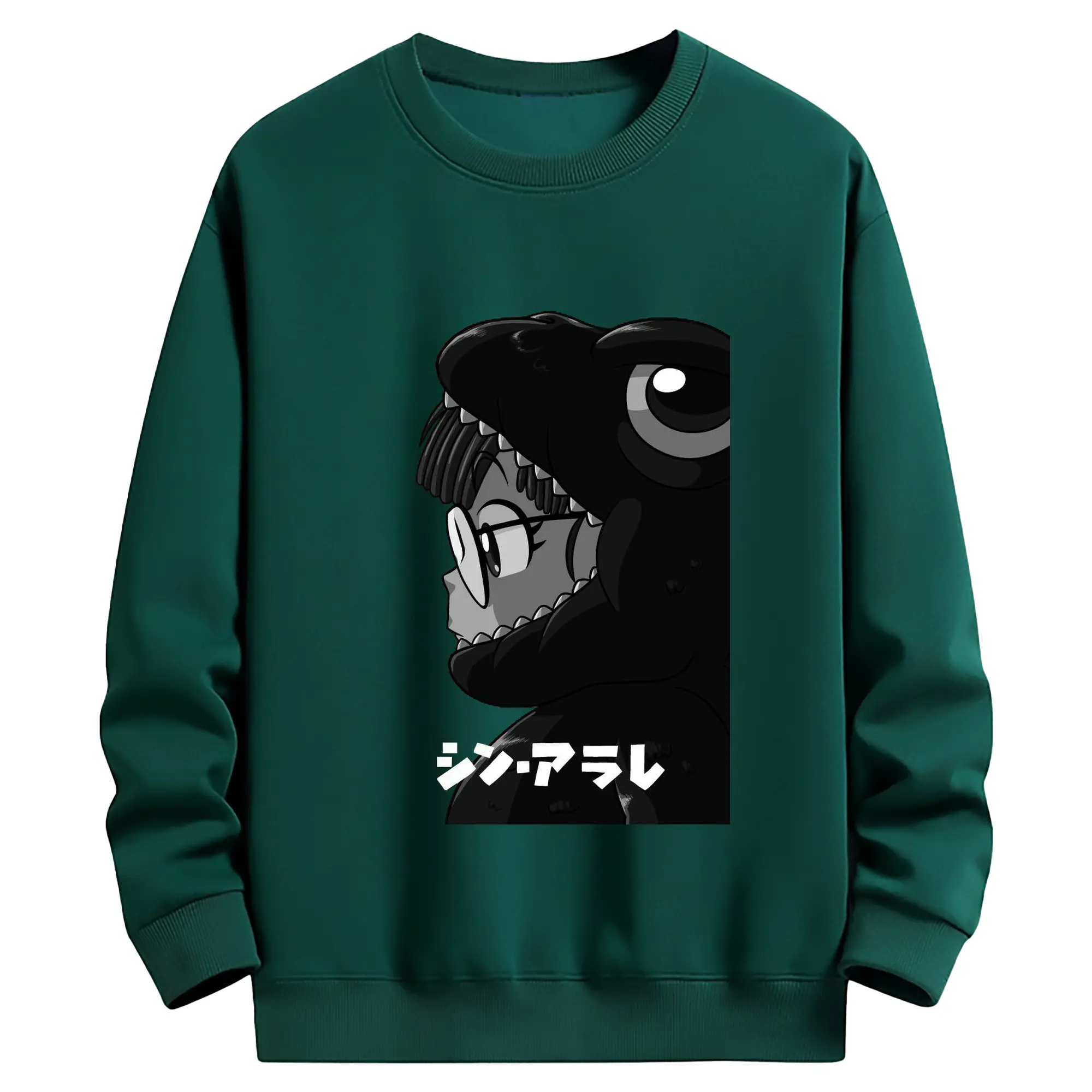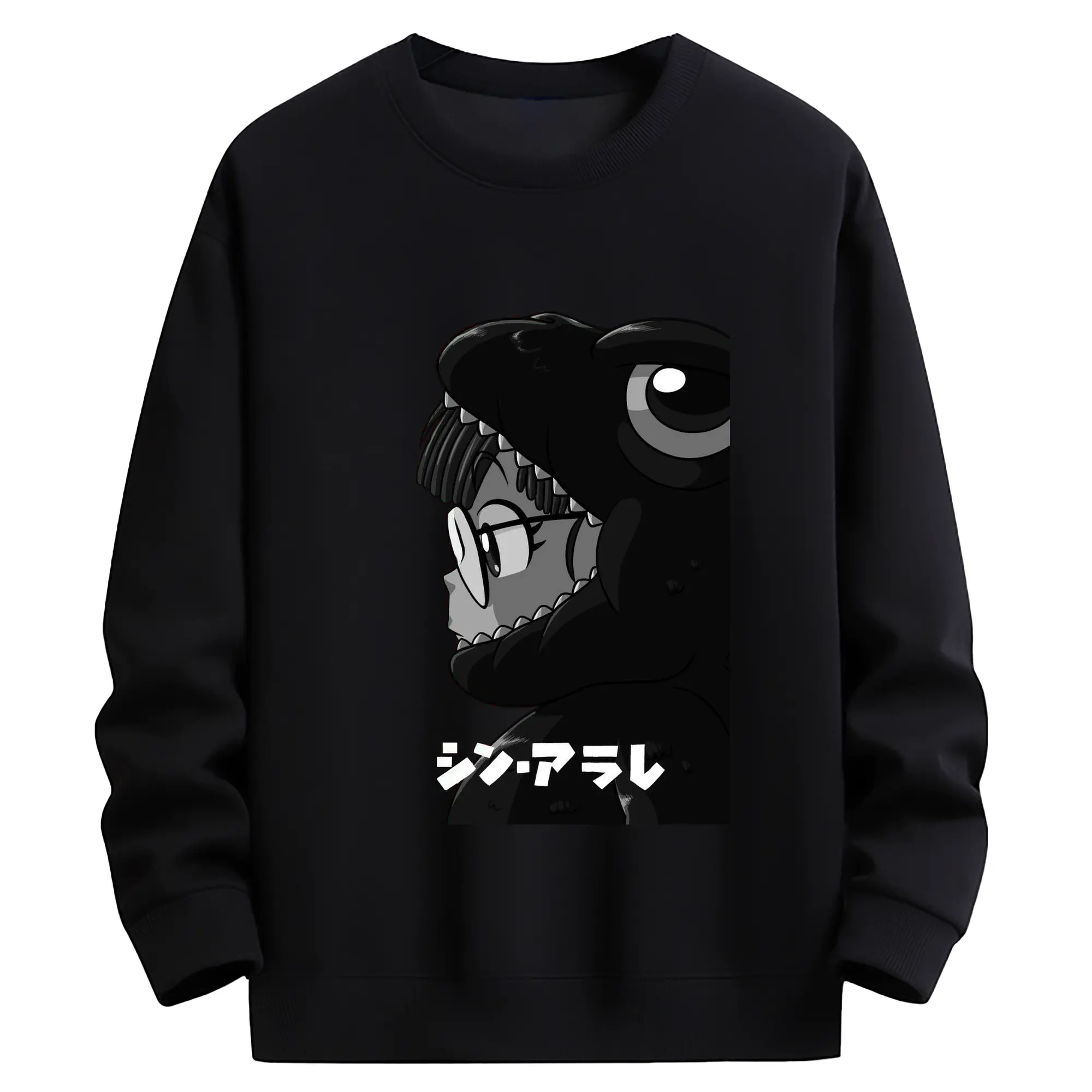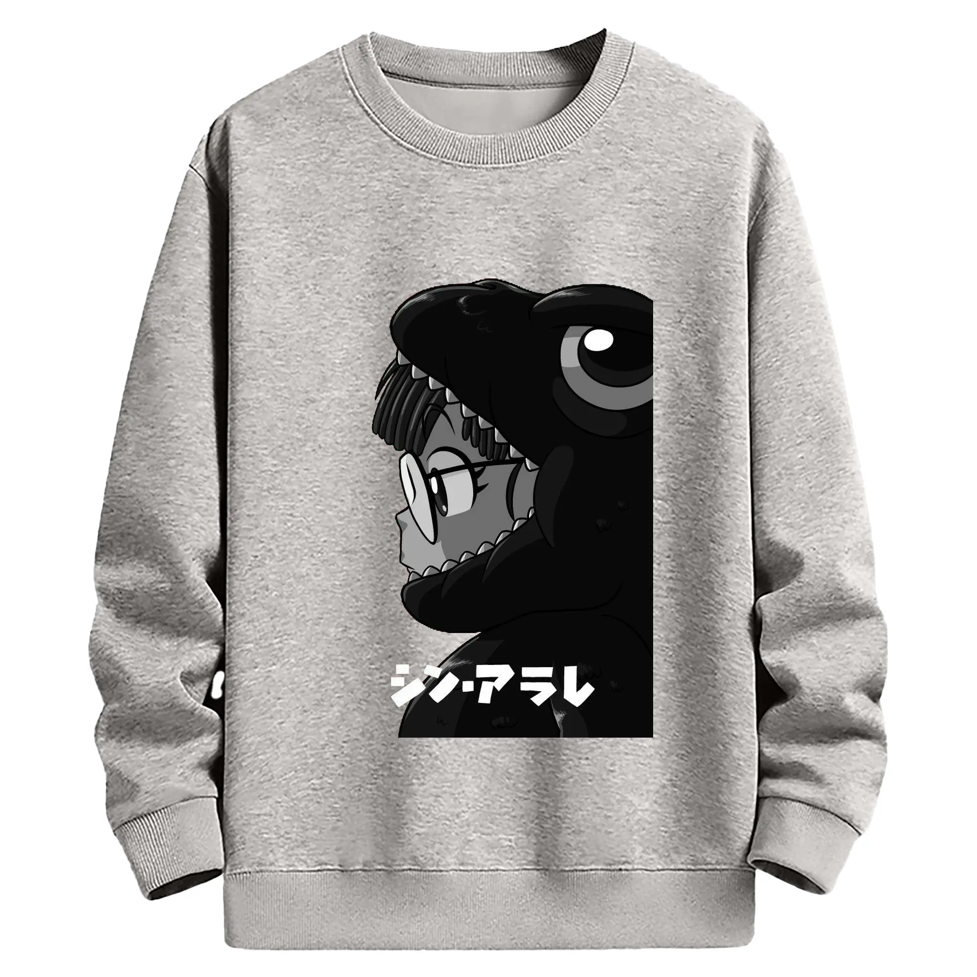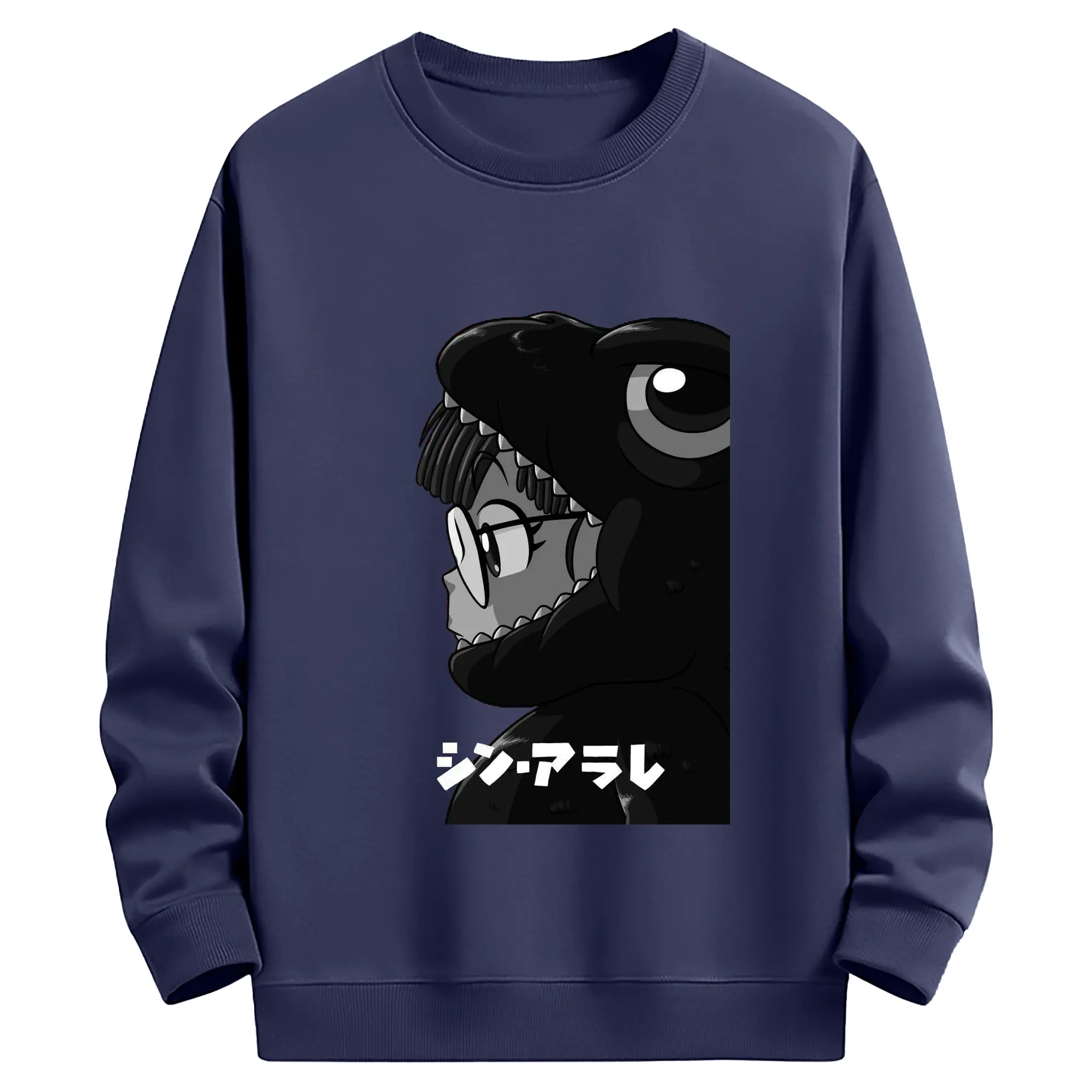 ゴジラ Dr.スランプコラボ - 高品質 クルーネック スウェット ・ コットン59% ポリエステル41% ・ ユニセックス 長袖 トレーナー ・ カジュアル デイリー スポーツ 散歩用