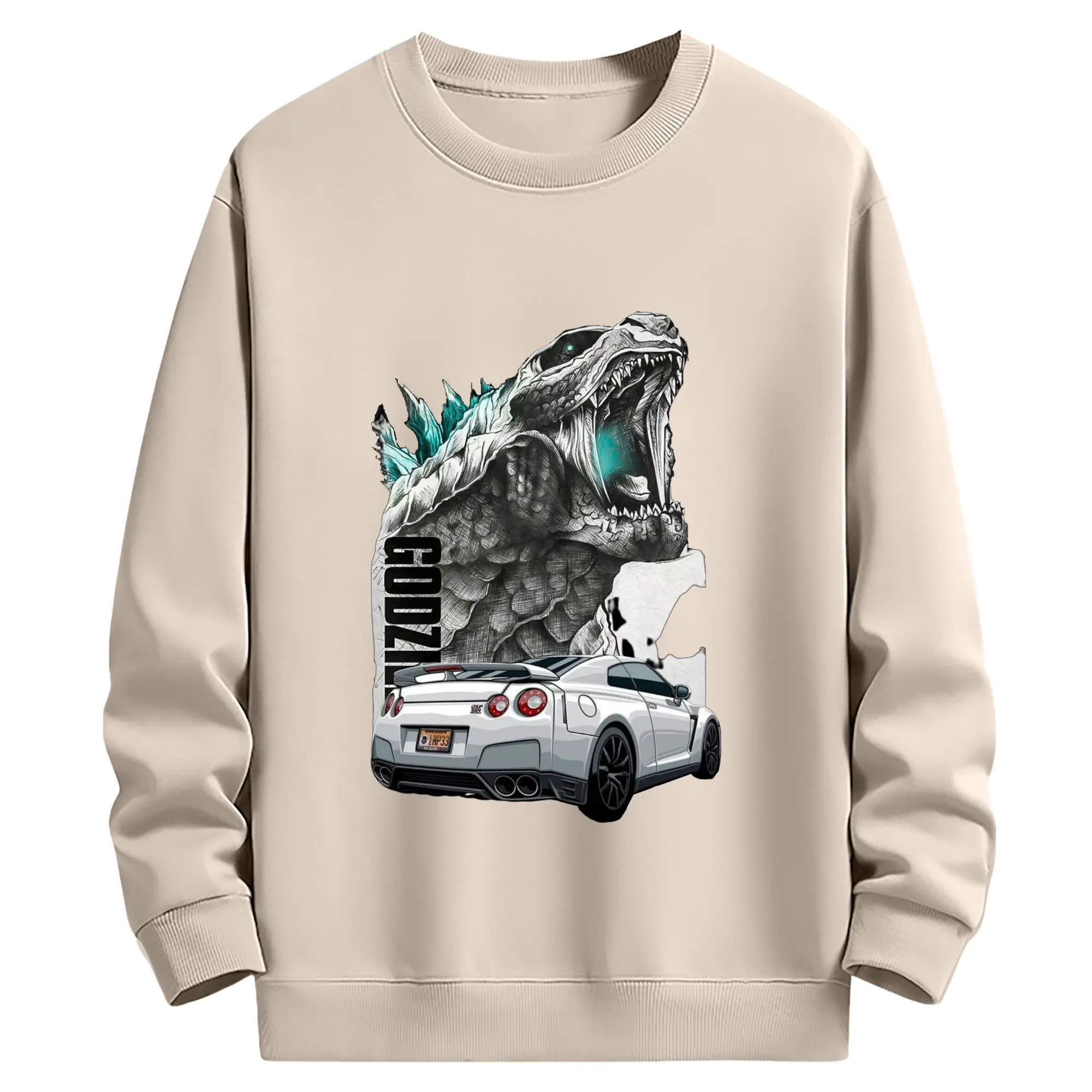 ゴジラ GTRコラボ 日産ゴジラ - 高品質 クルーネック スウェット ・ コットン59% ポリエステル41% ・ ユニセックス 長袖 トレーナー ・ カジュアル デイリー スポーツ 散歩用