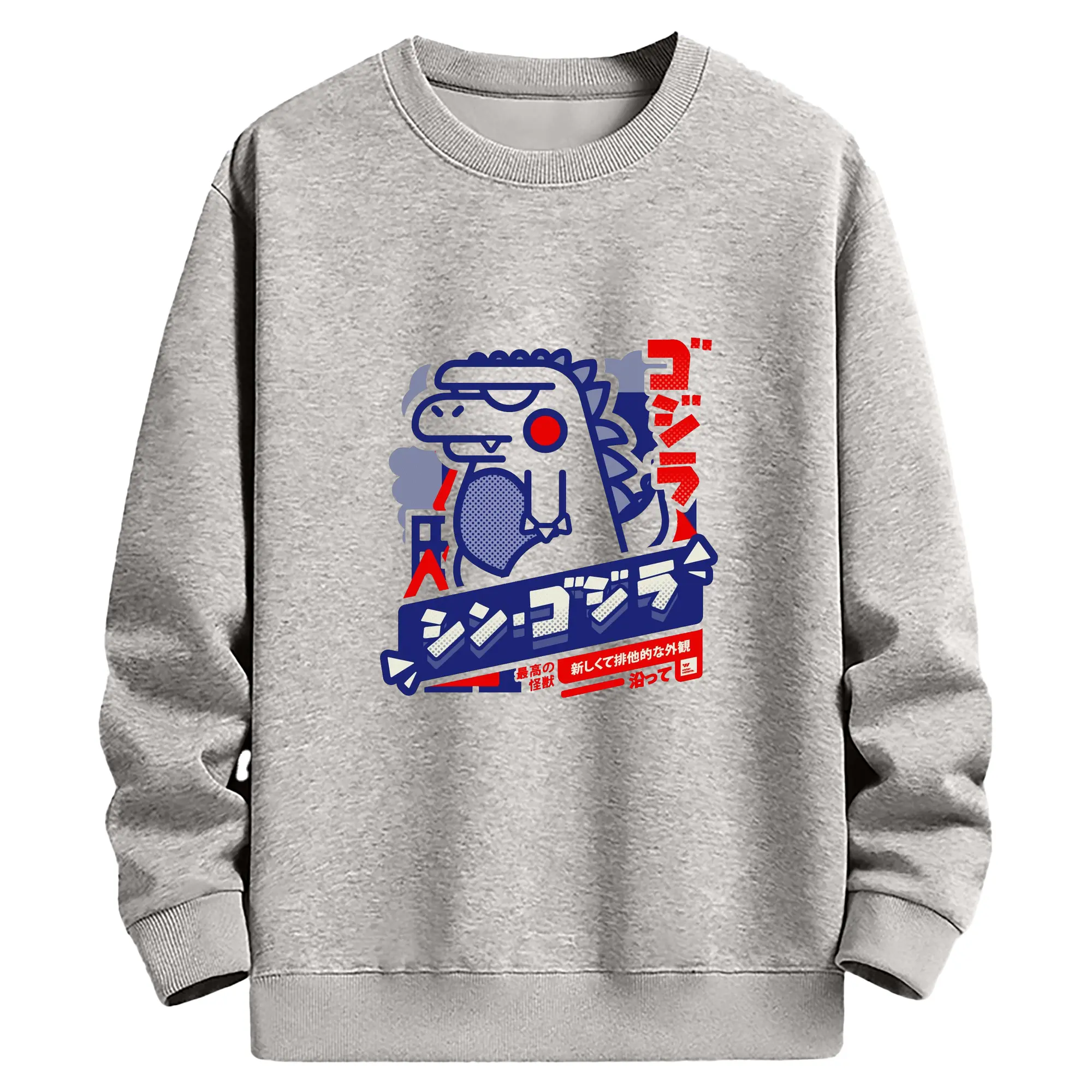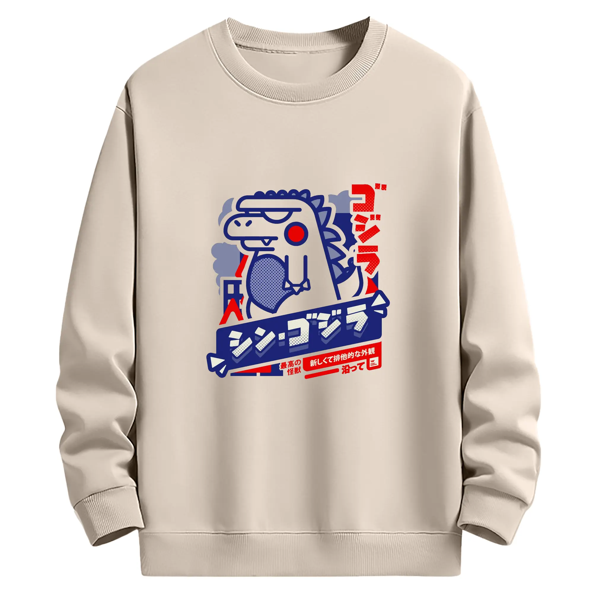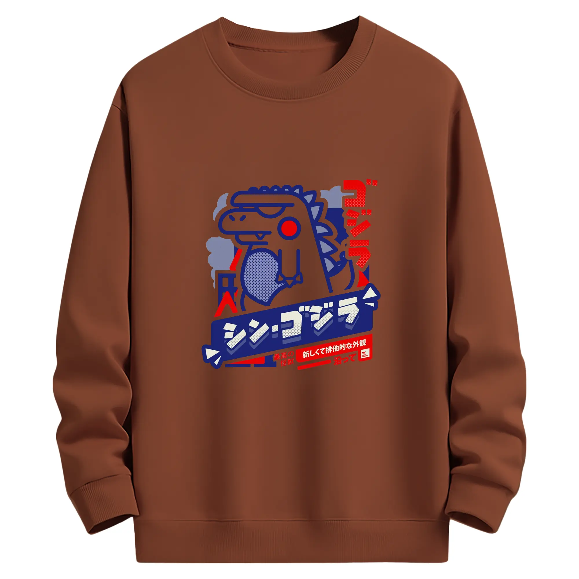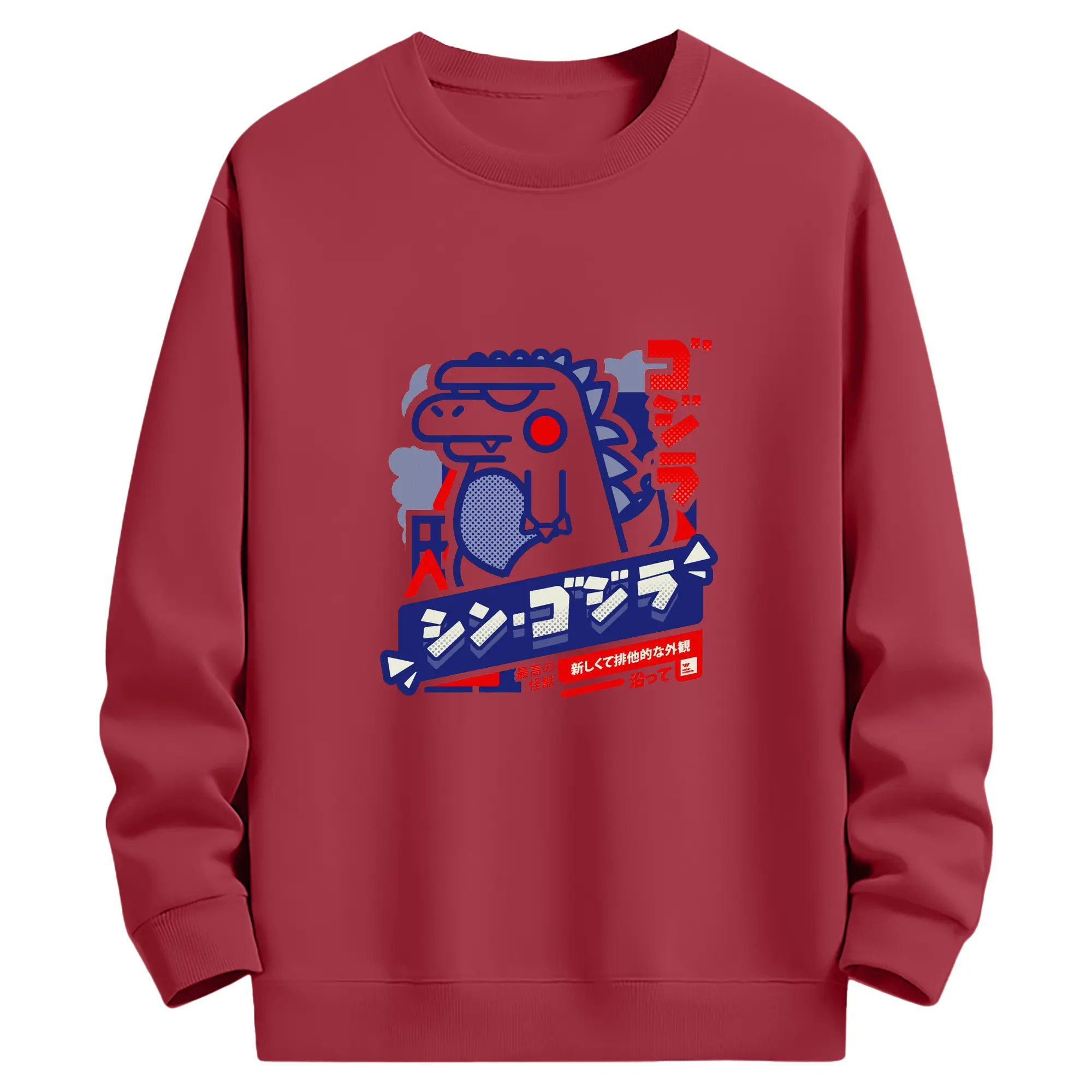 ゴジラ - 高品質 クルーネック スウェット ・ コットン59% ポリエステル41% ・ ユニセックス 長袖 トレーナー ・ カジュアル デイリー スポーツ 散歩用