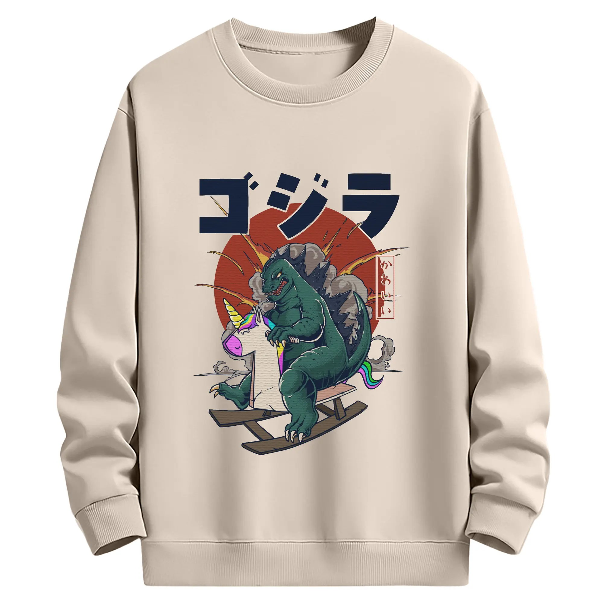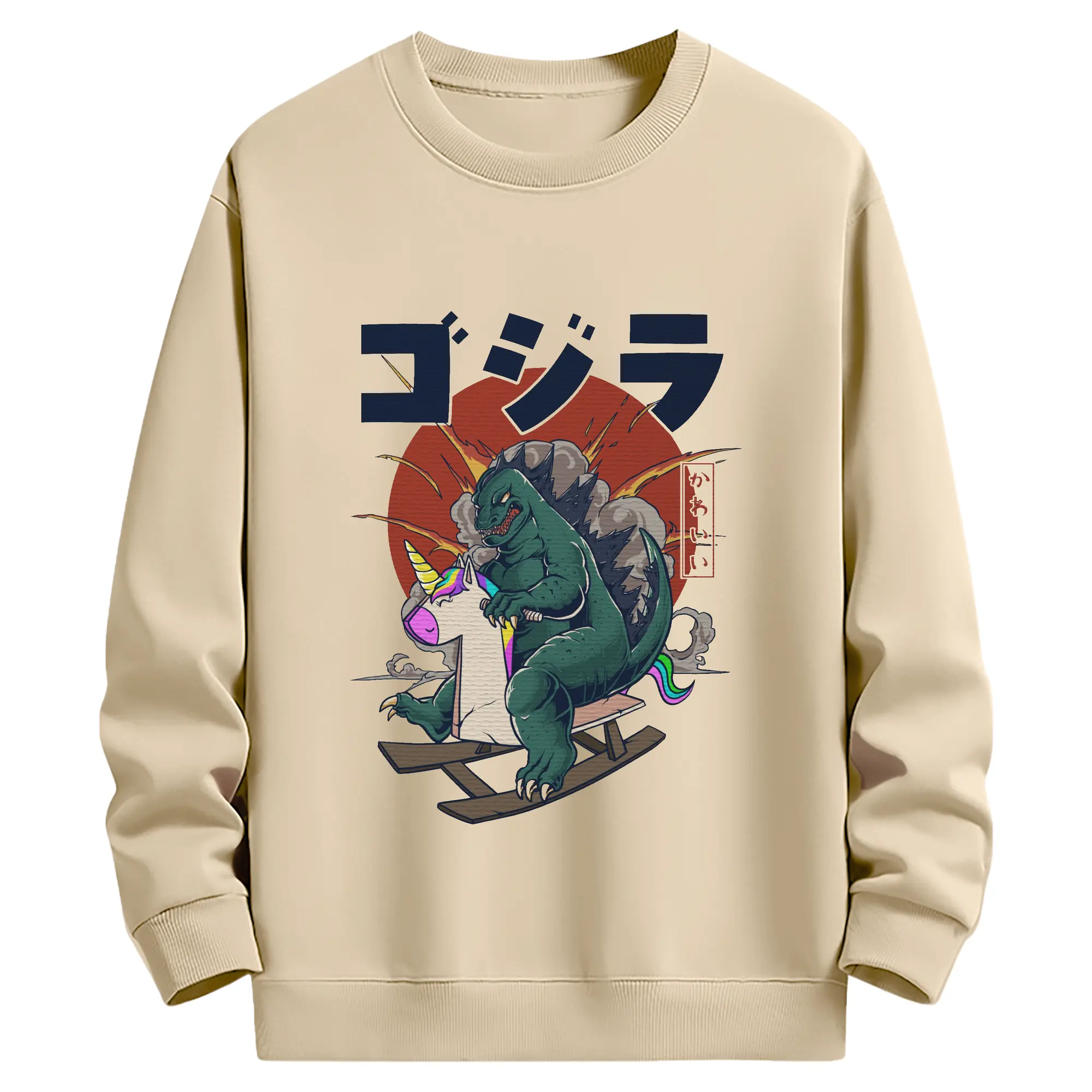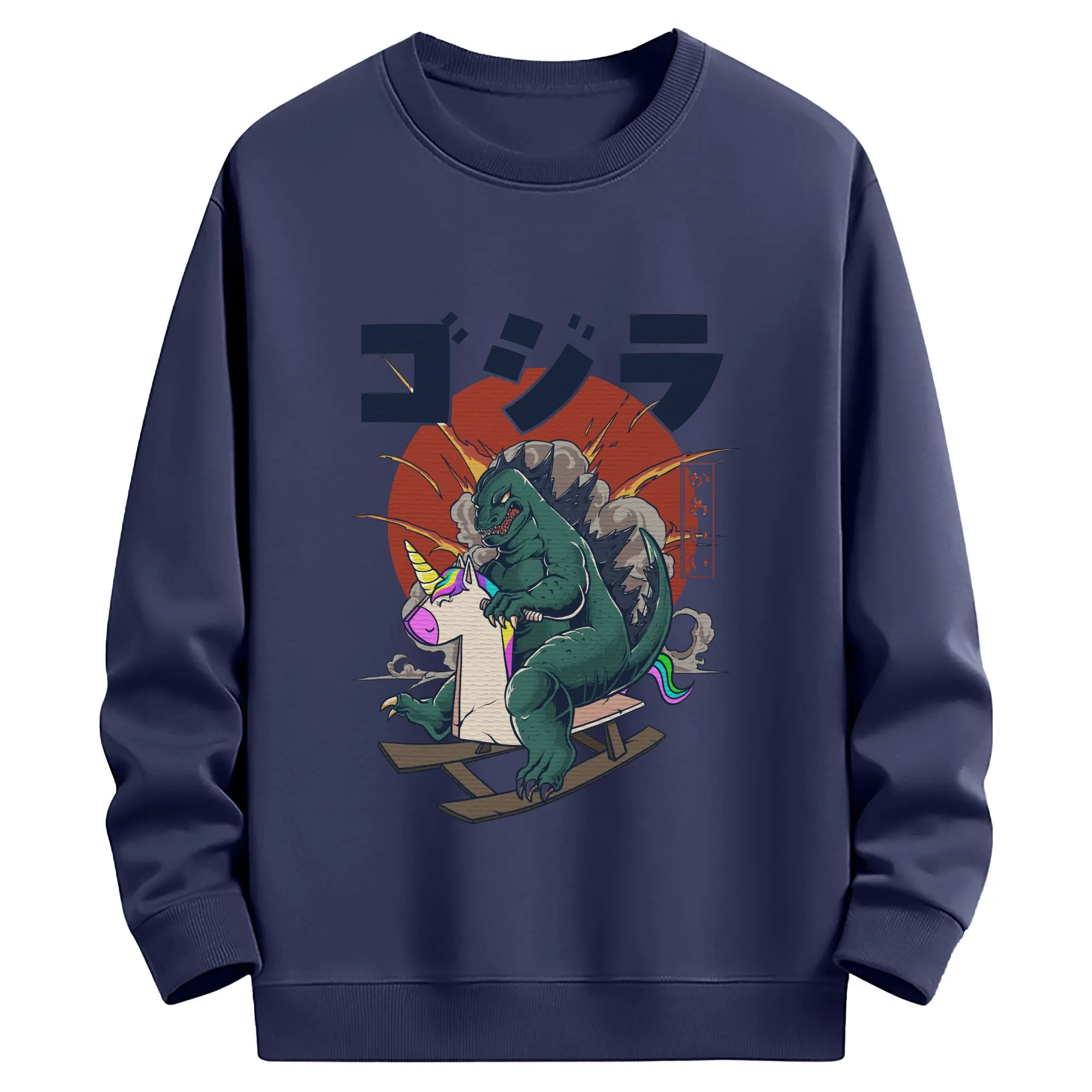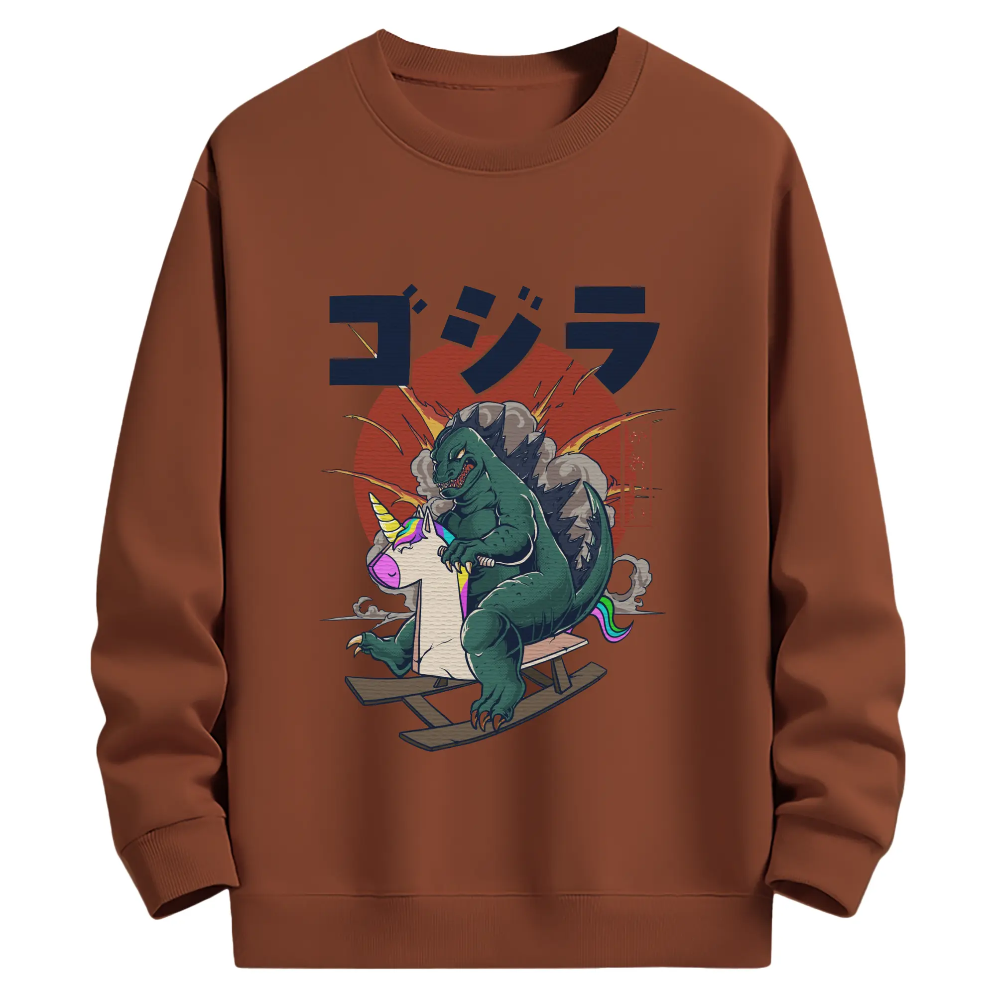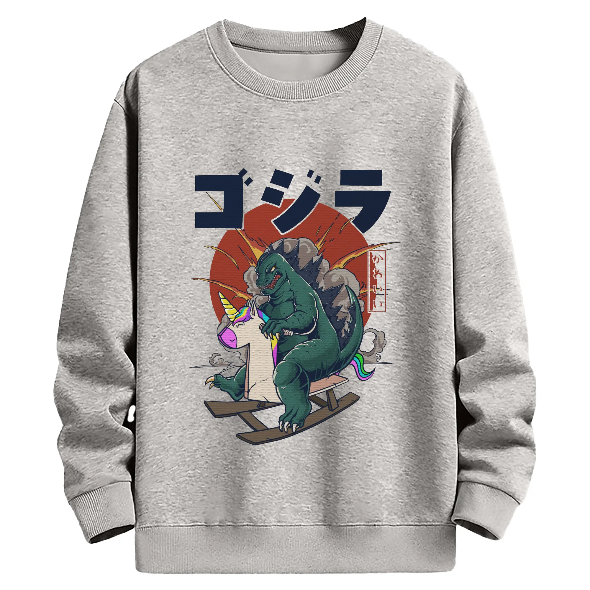 ゴジラ - 高品質 クルーネック スウェット ・ コットン59% ポリエステル41% ・ ユニセックス 長袖 トレーナー ・ カジュアル デイリー スポーツ 散歩用