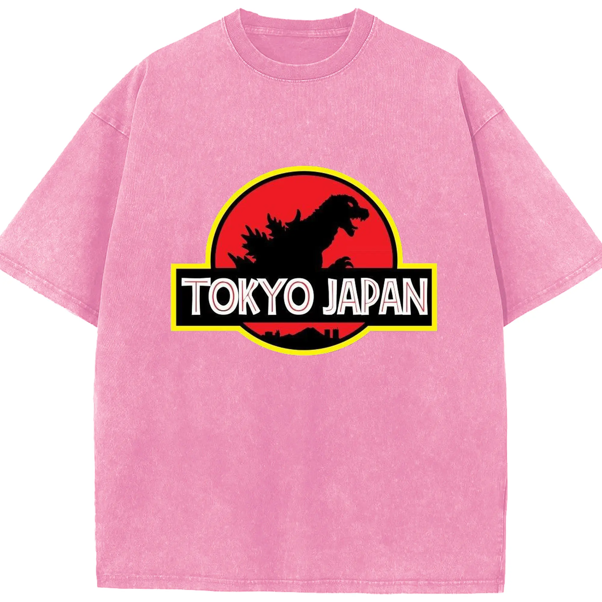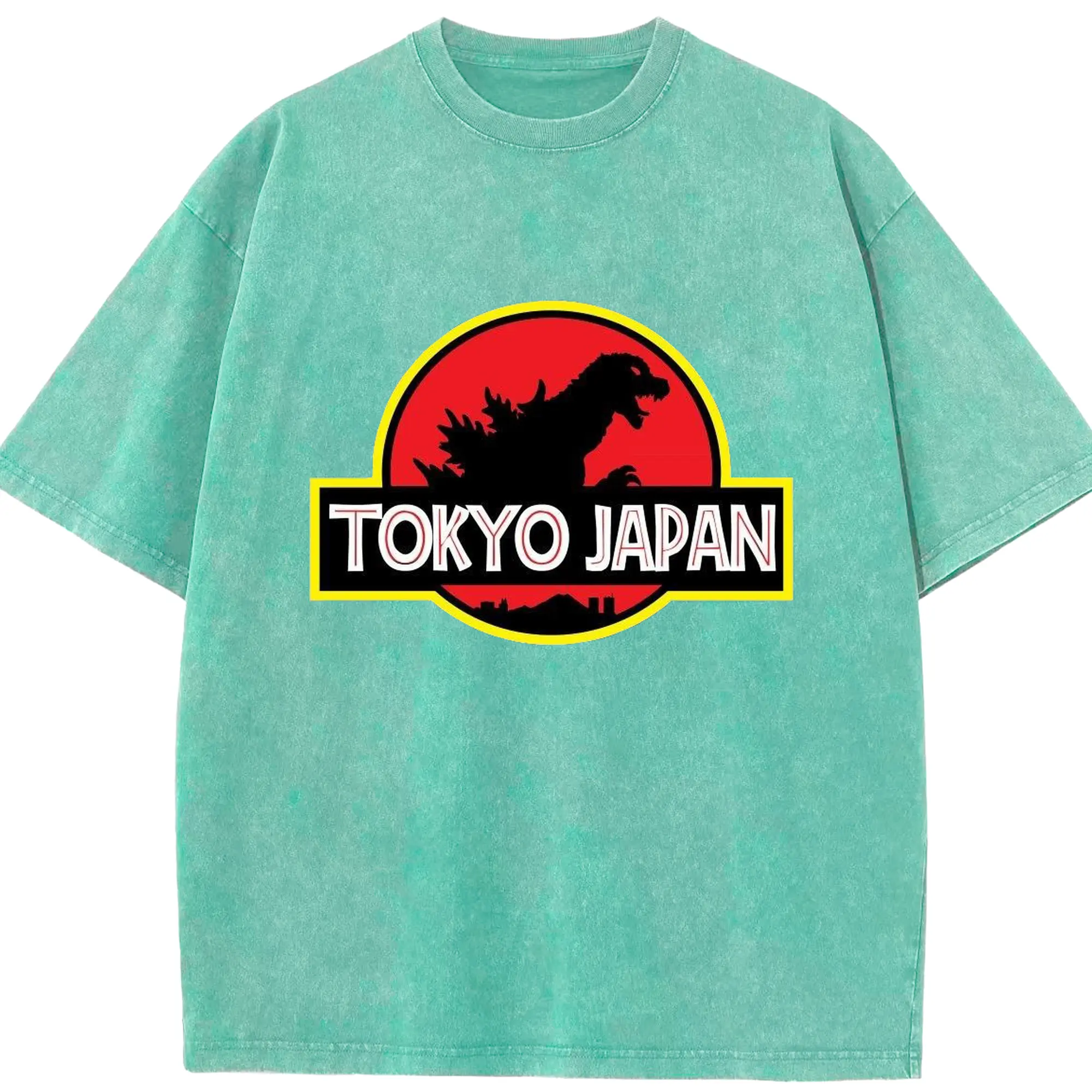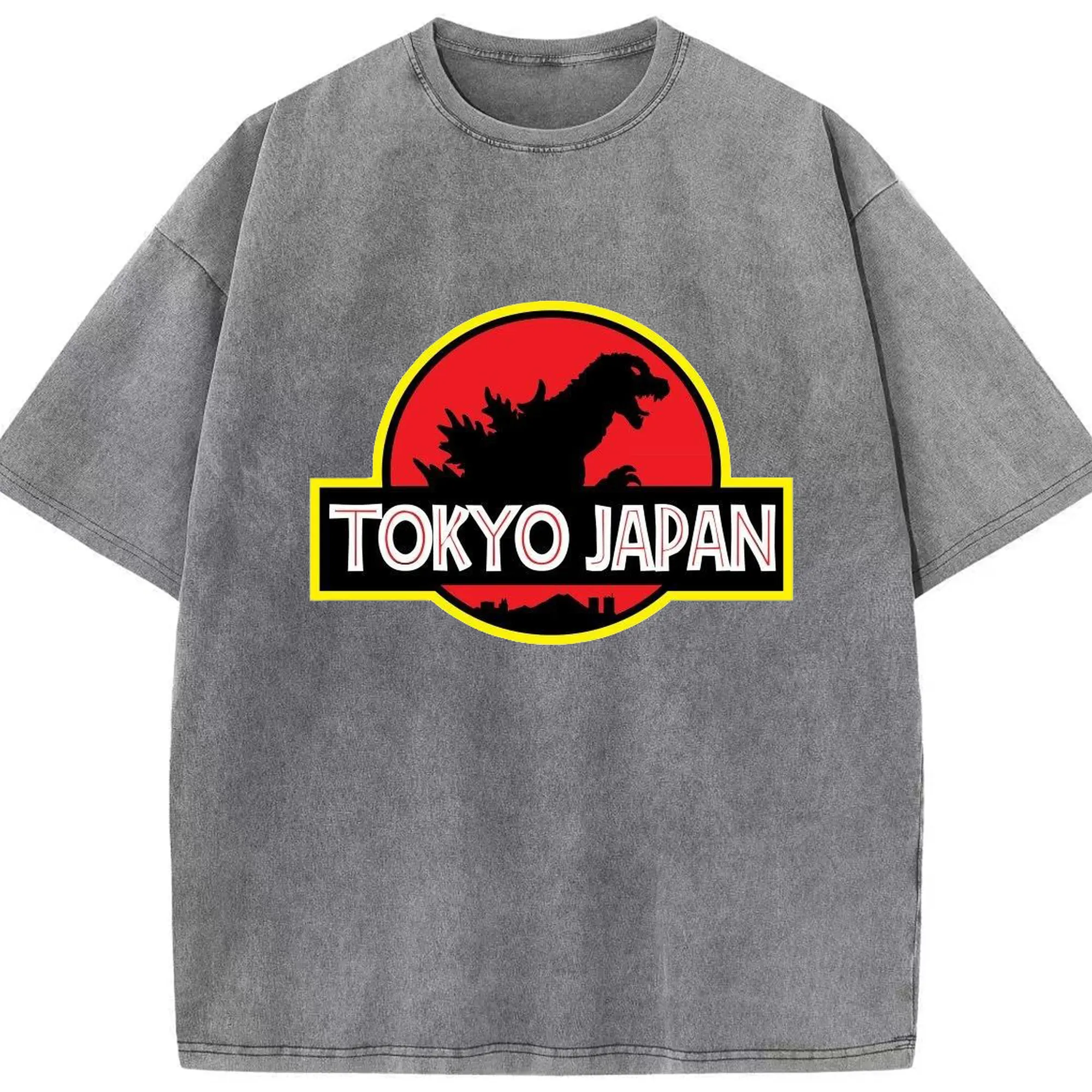 ゴジラ - 綿100% ヴィンテージ風 半袖Tシャツ ・ フロントプリント ・ 柔らか肌触り ・ 通気性 快適 ・ スポーツ カジュアル 外出用