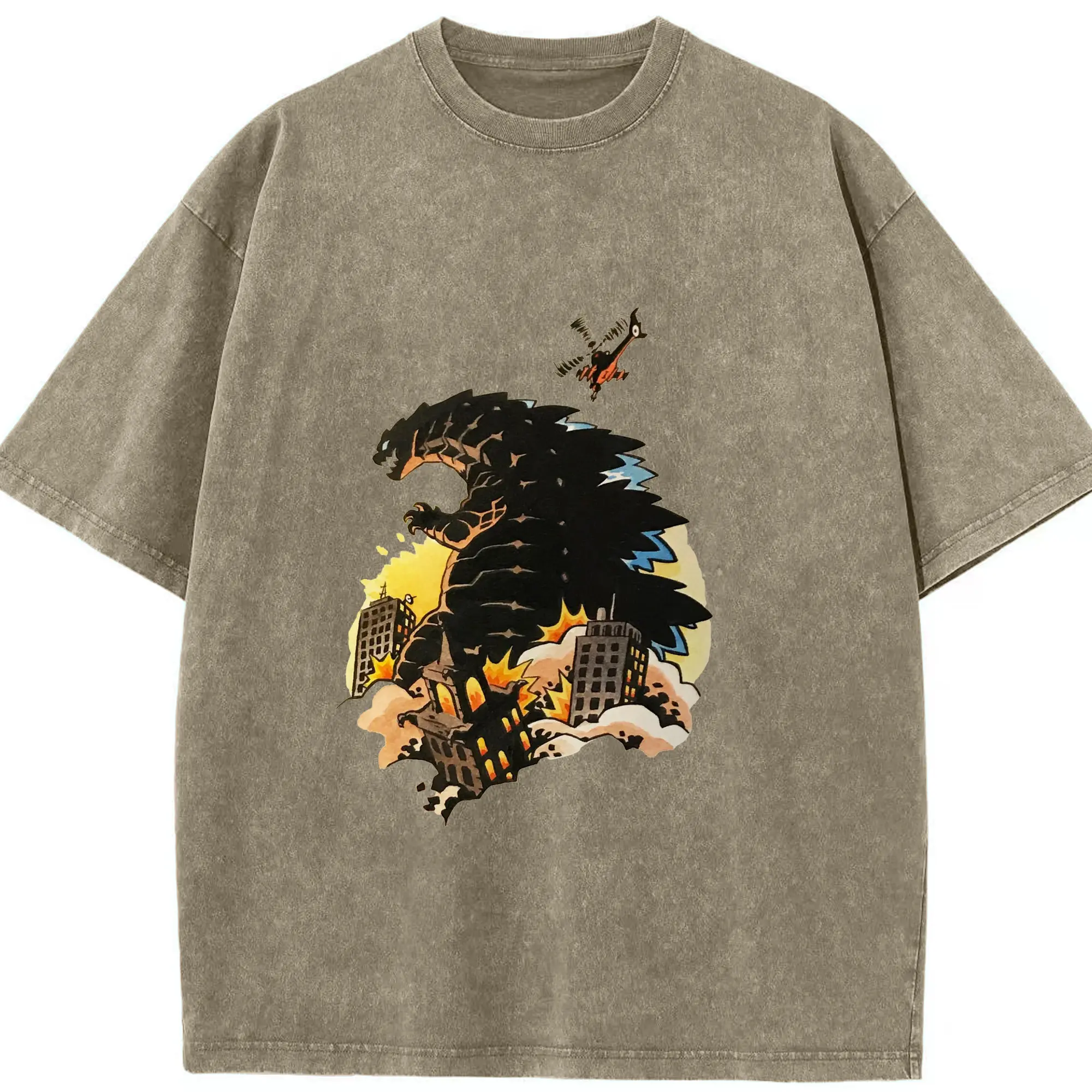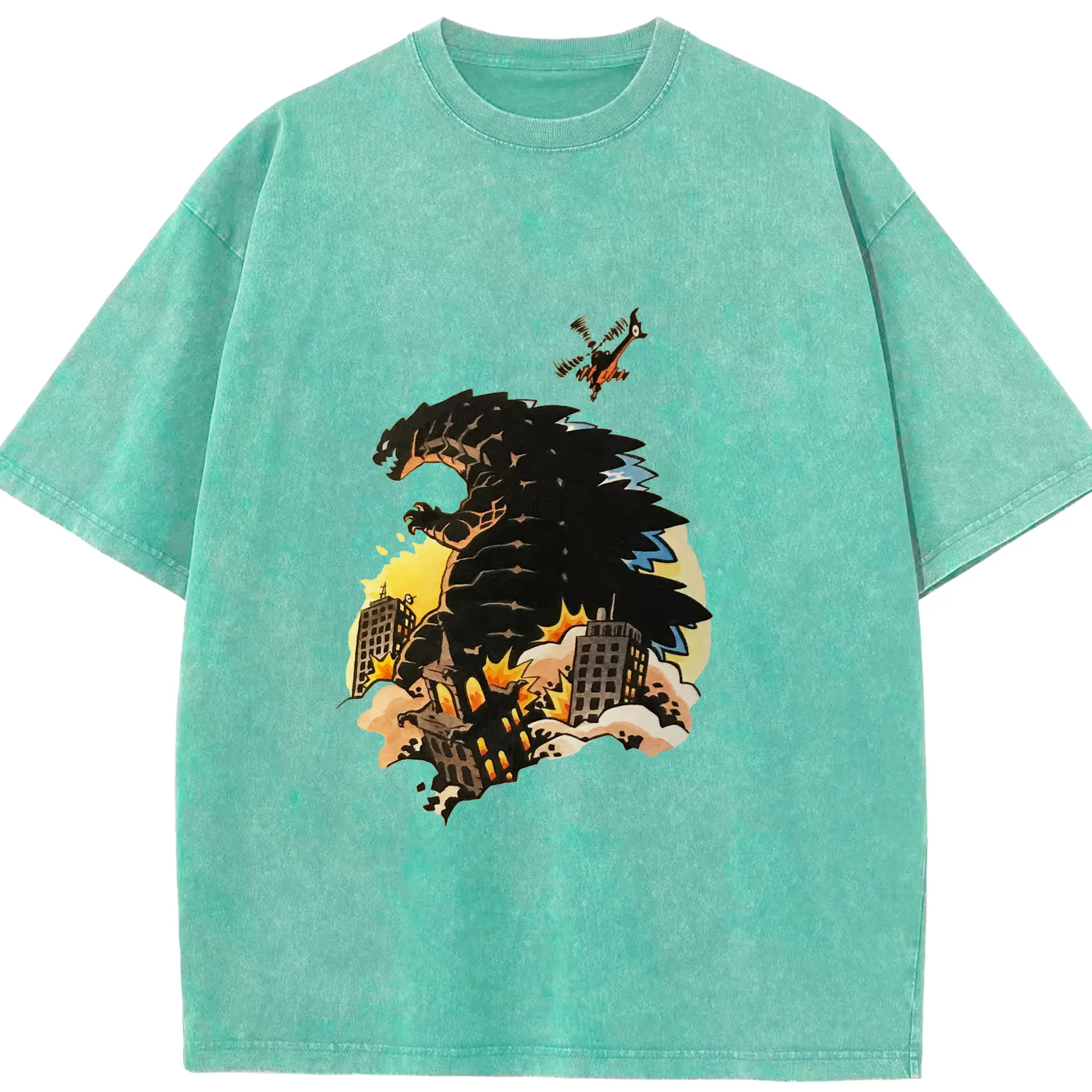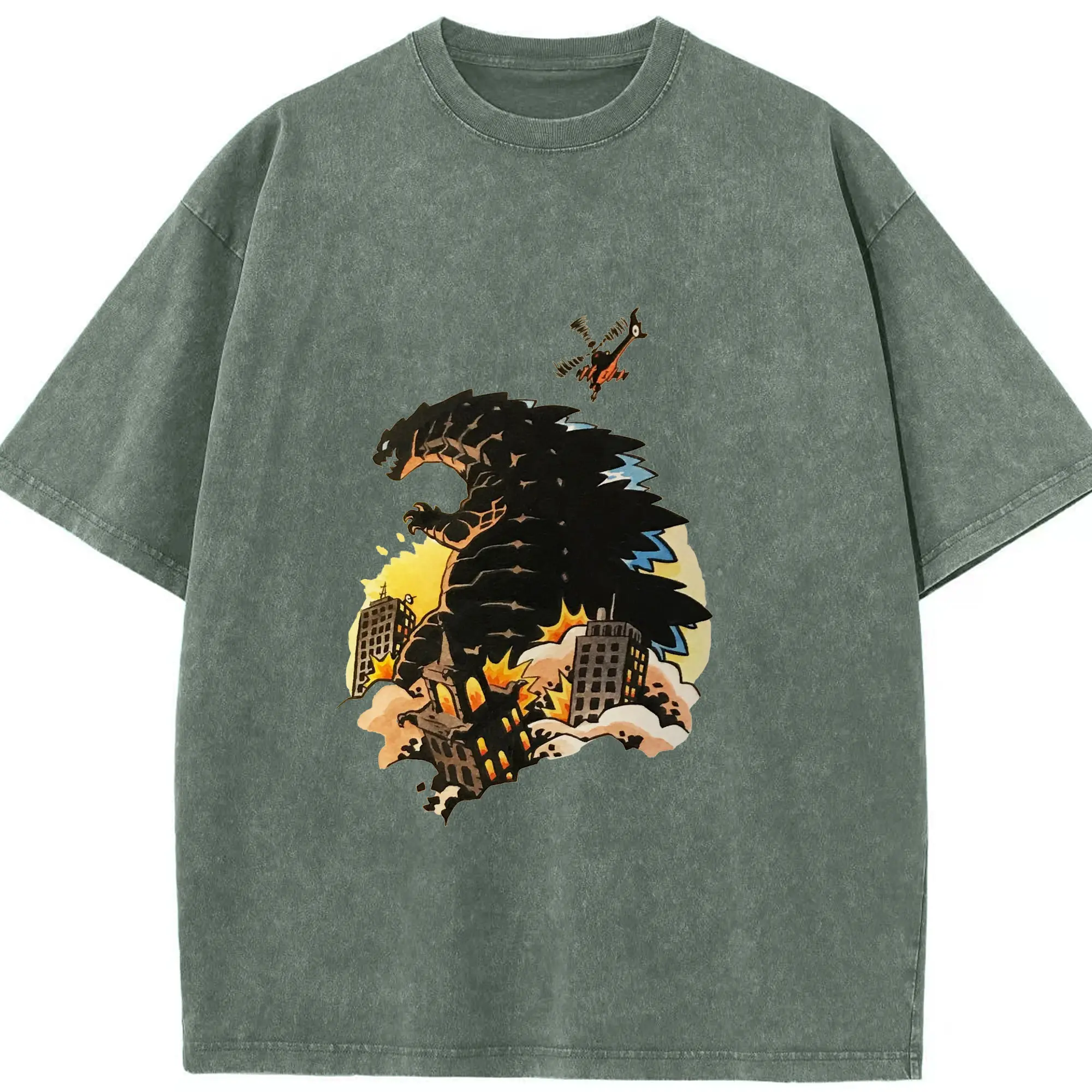 ゴジラ - 綿100% ヴィンテージ風 半袖Tシャツ ・ フロントプリント ・ 柔らか肌触り ・ 通気性 快適 ・ スポーツ カジュアル 外出用