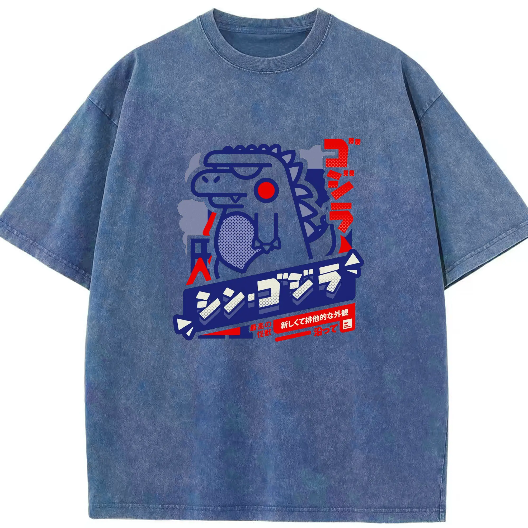 ゴジラ - 綿100% ヴィンテージ風 半袖Tシャツ ・ フロントプリント ・ 柔らか肌触り ・ 通気性 快適 ・ スポーツ カジュアル 外出用