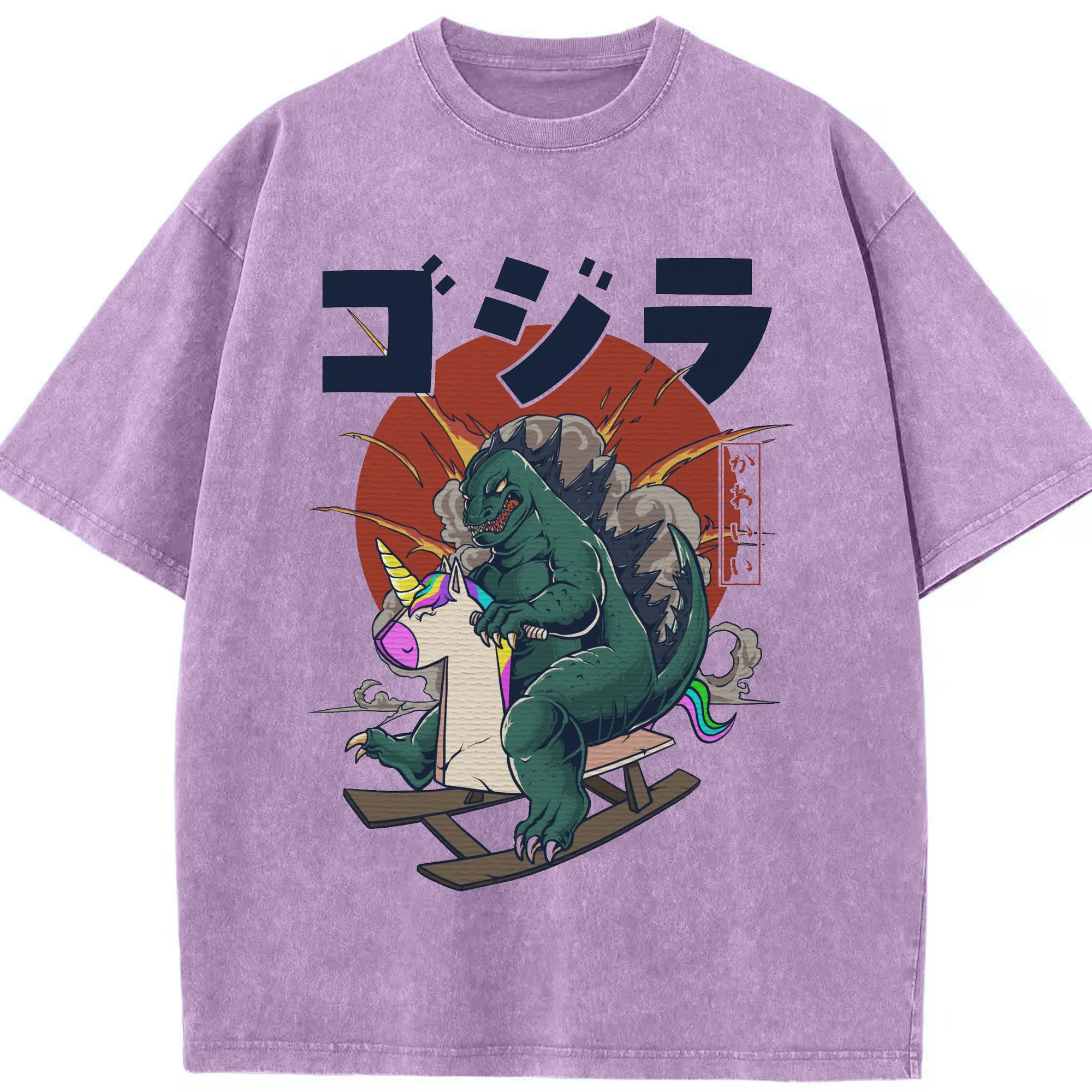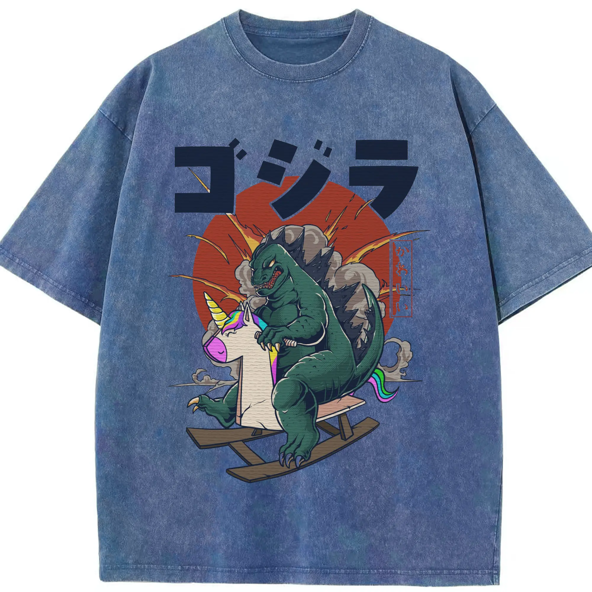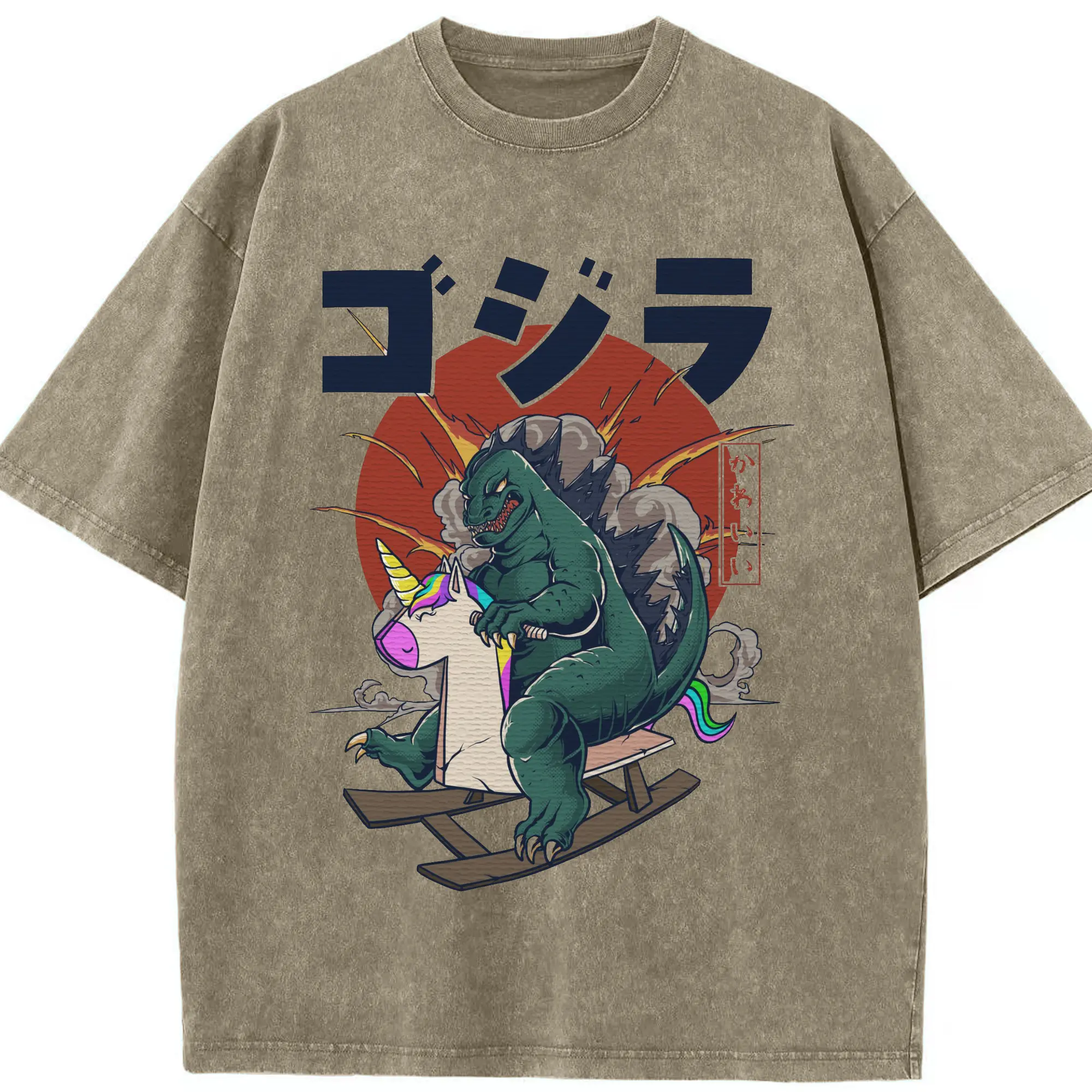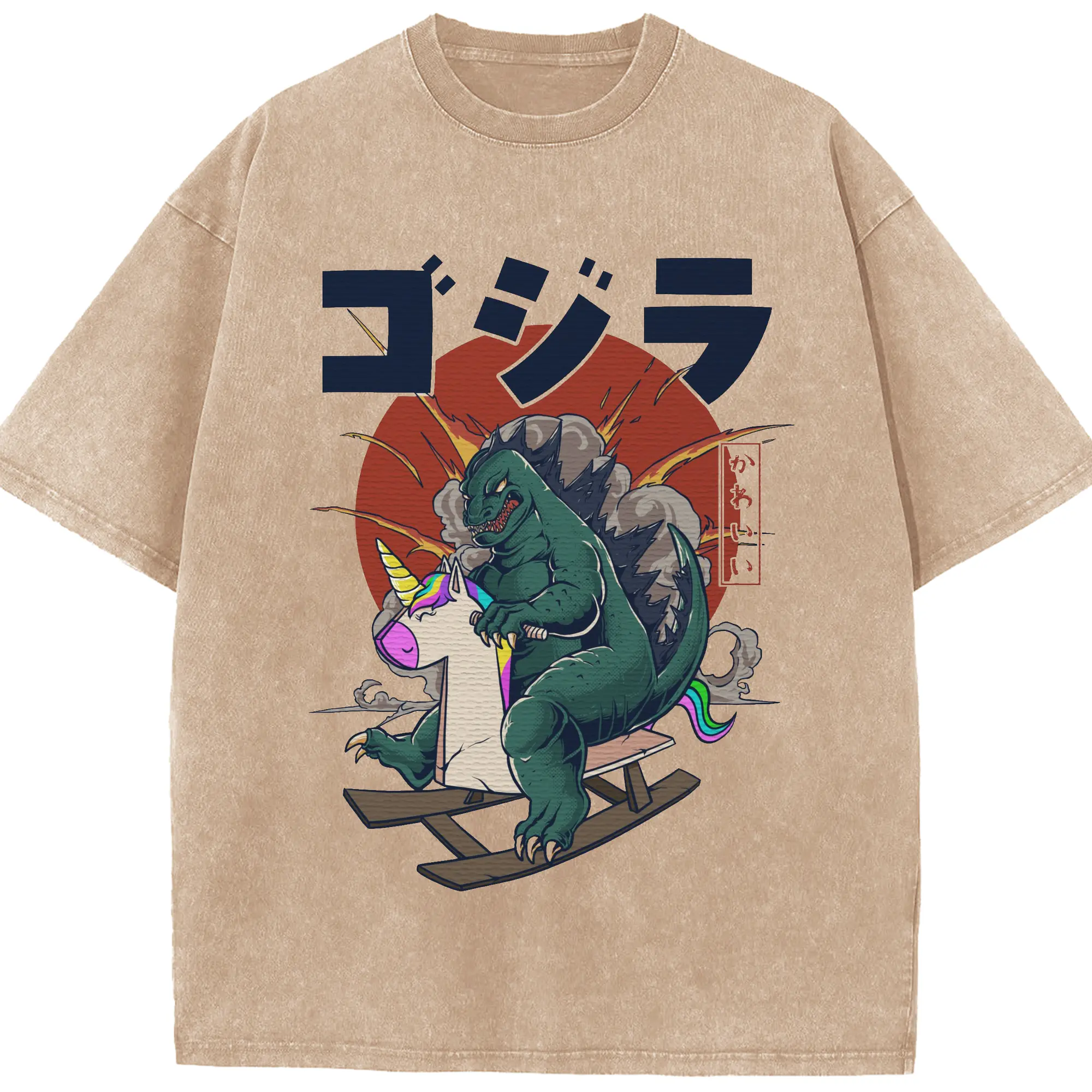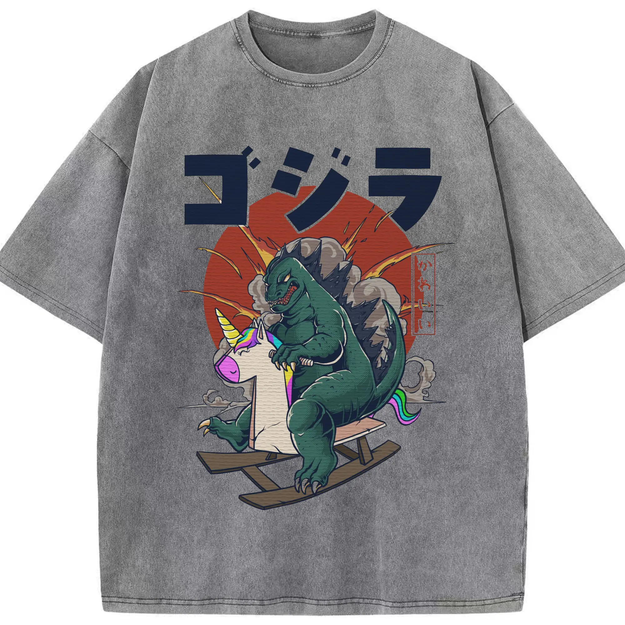 ゴジラ - 綿100% ヴィンテージ風 半袖Tシャツ ・ フロントプリント ・ 柔らか肌触り ・ 通気性 快適 ・ スポーツ カジュアル 外出用