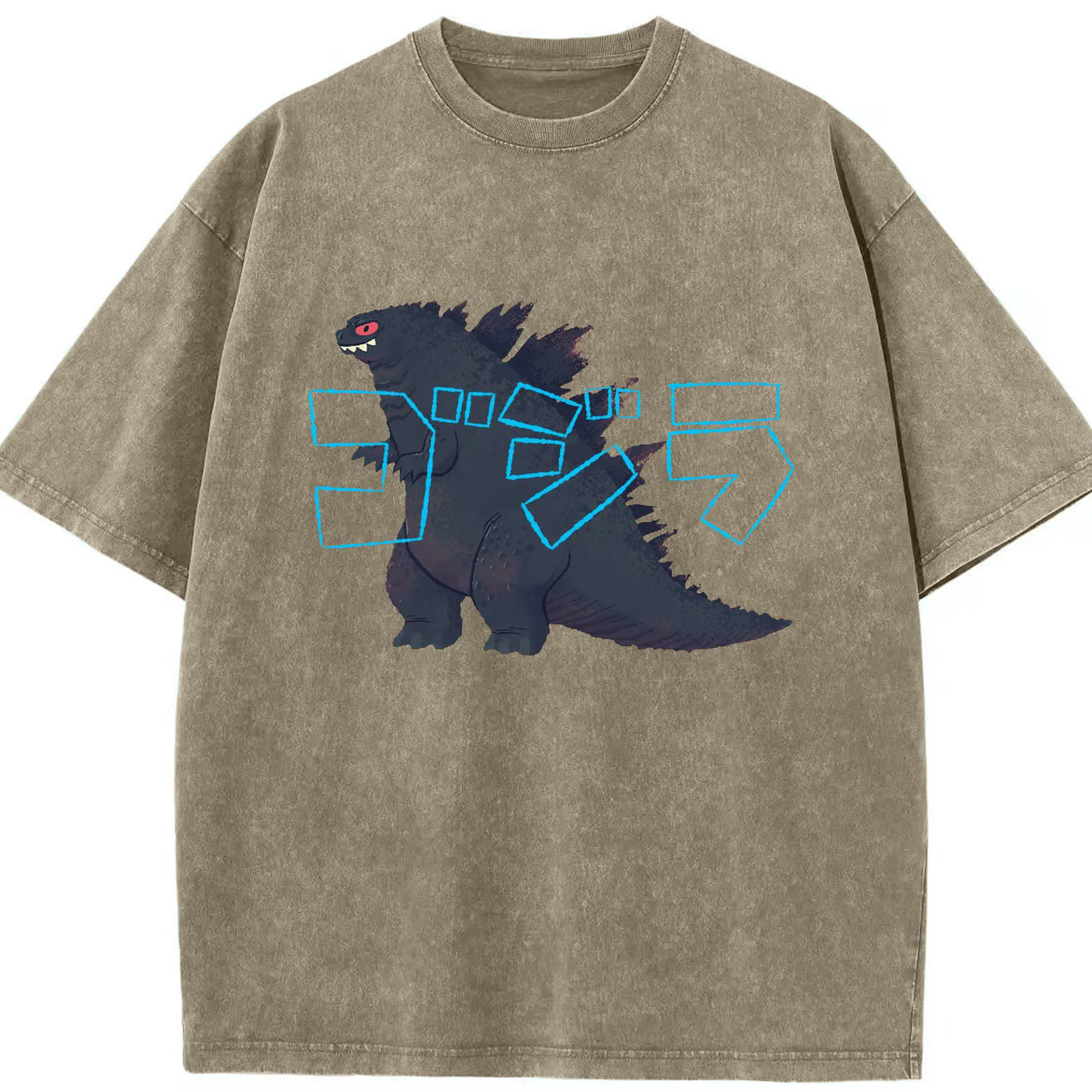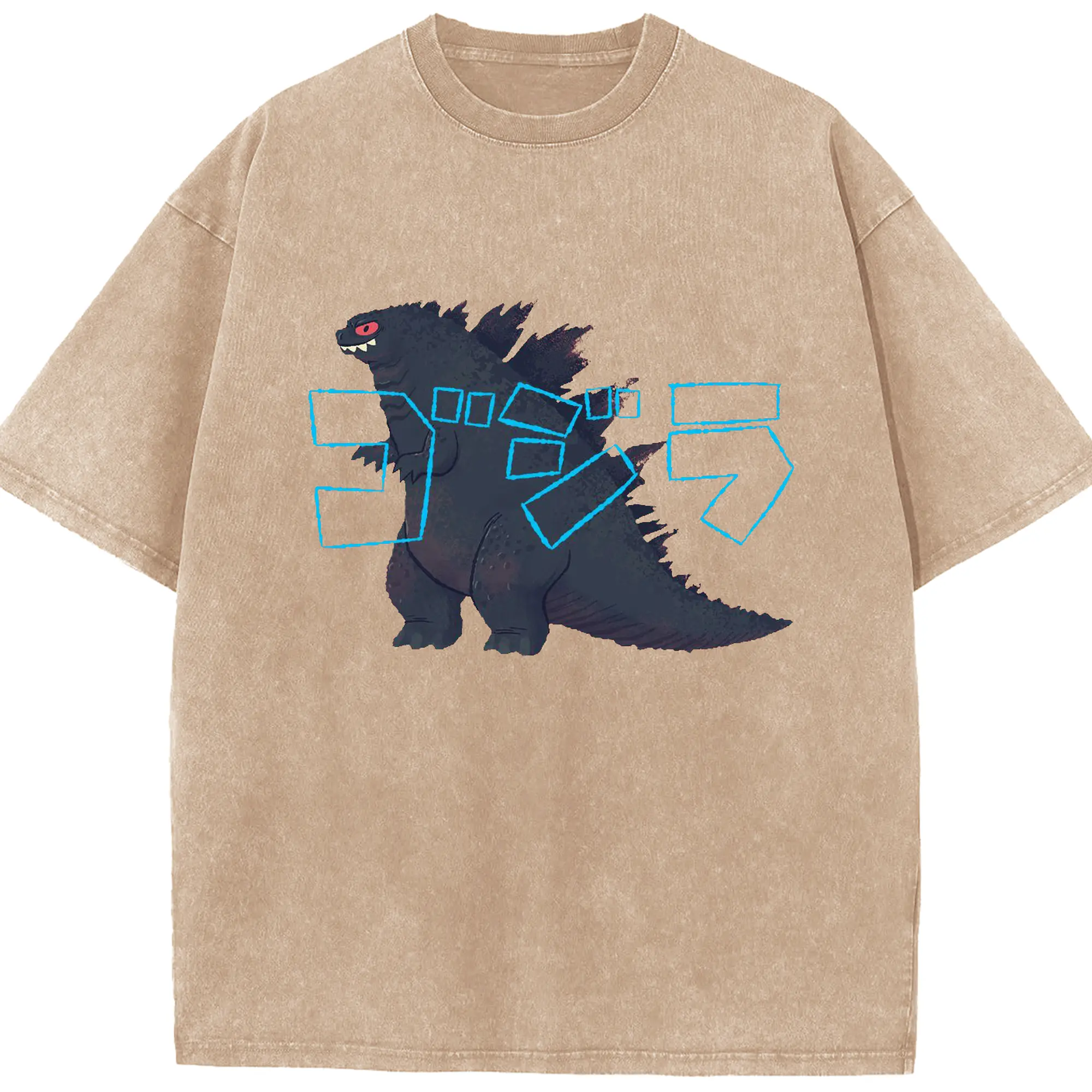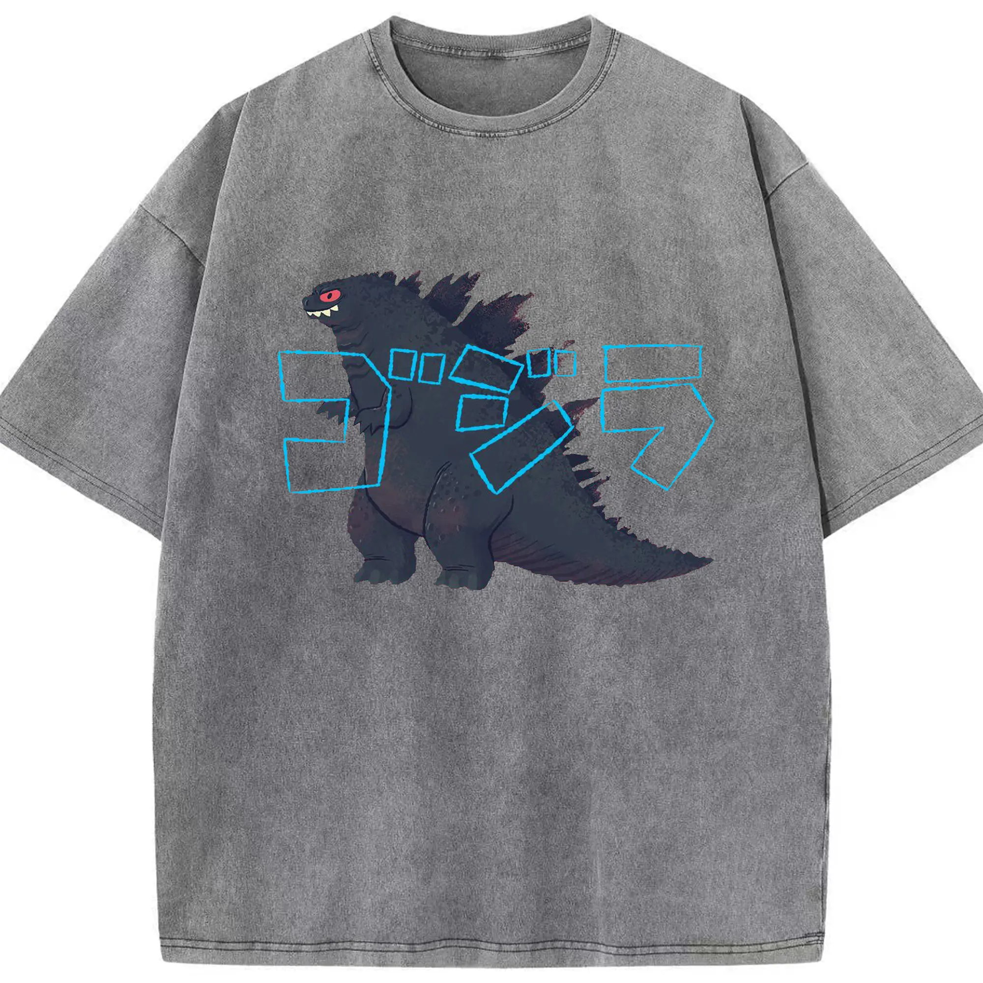 ゴジラ - 綿100% ヴィンテージ風 半袖Tシャツ ・ フロントプリント ・ 柔らか肌触り ・ 通気性 快適 ・ スポーツ カジュアル 外出用