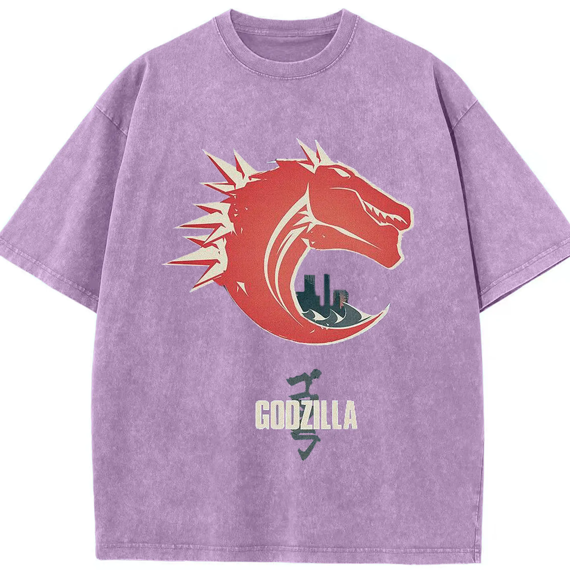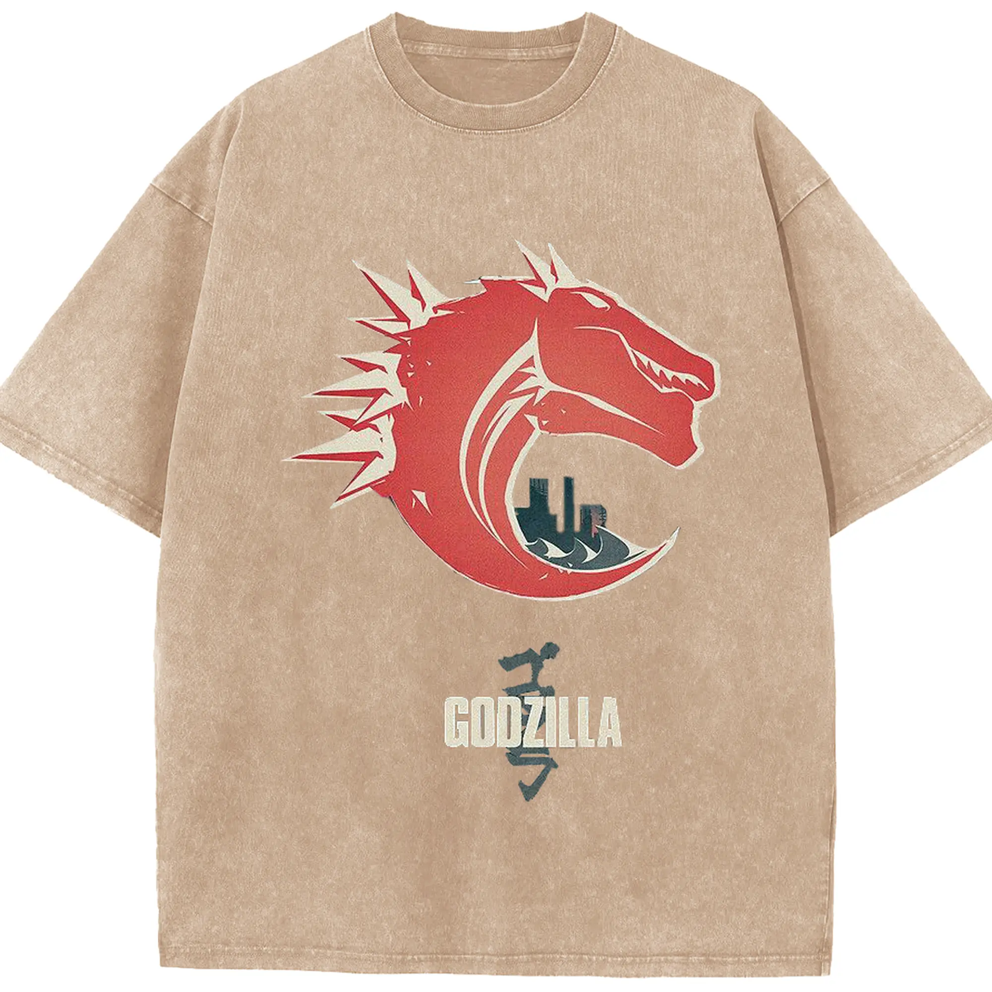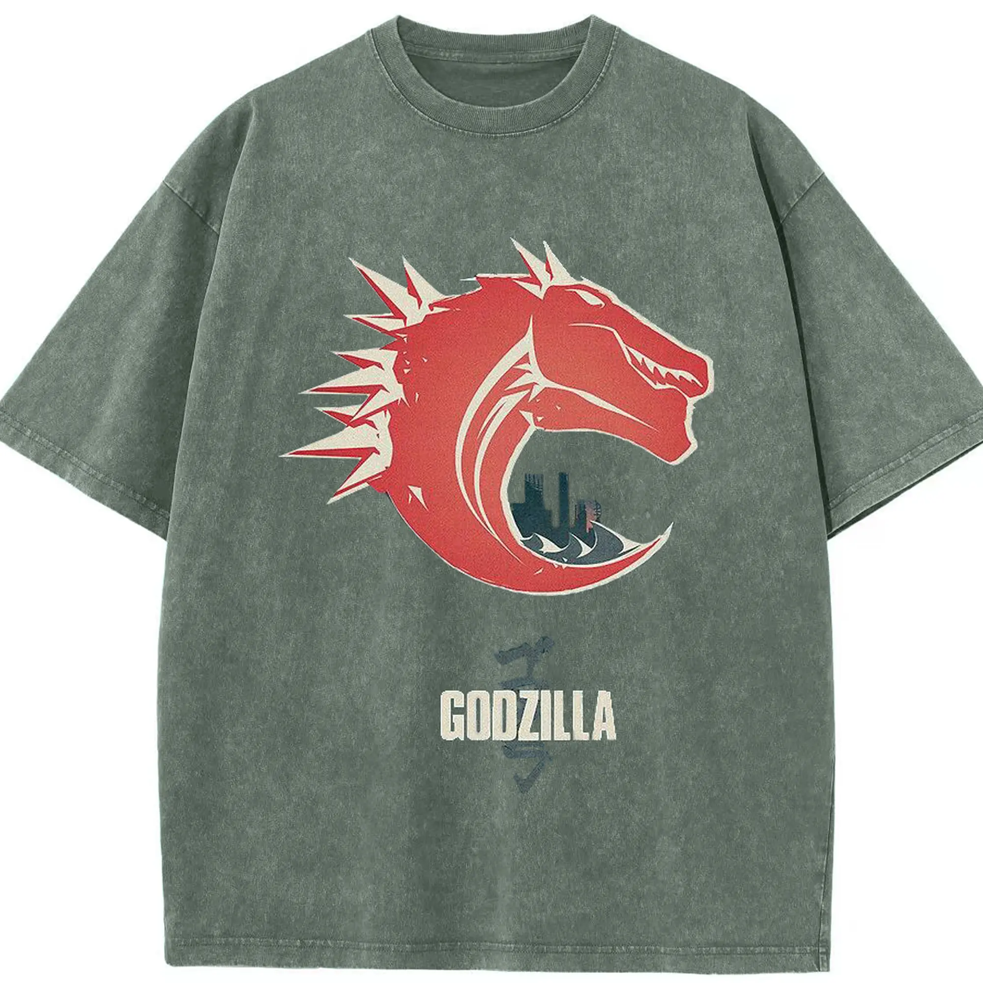 ゴジラ シンプルロゴ - 綿100% ヴィンテージ風 半袖Tシャツ ・ フロントプリント ・ 柔らか肌触り ・ 通気性 快適 ・ スポーツ カジュアル 外出用