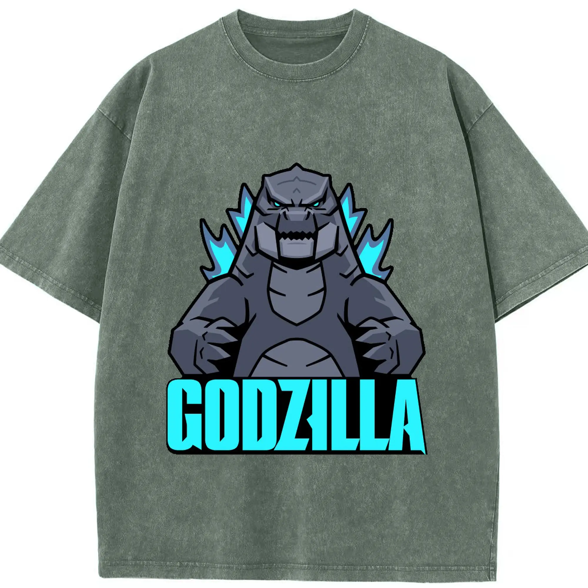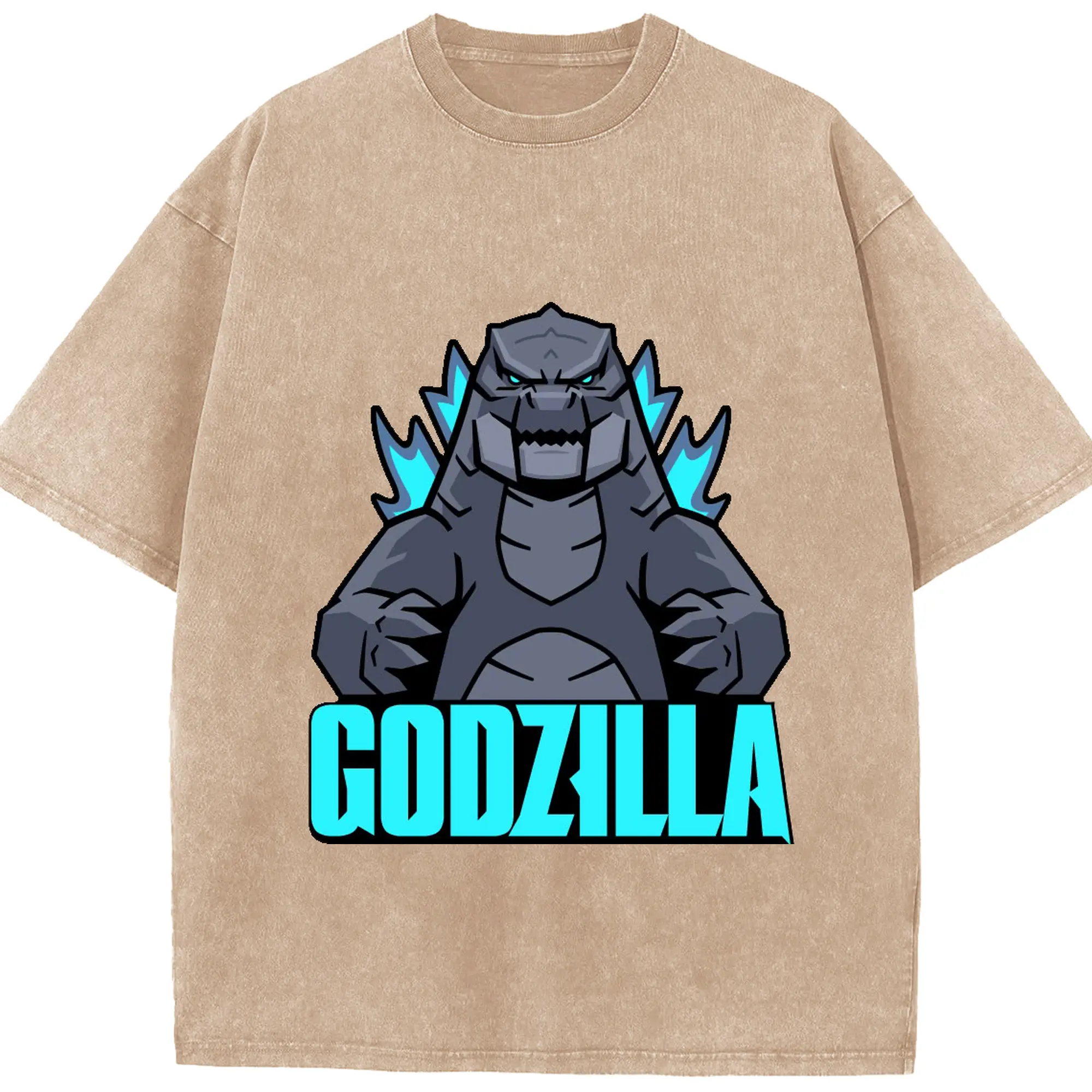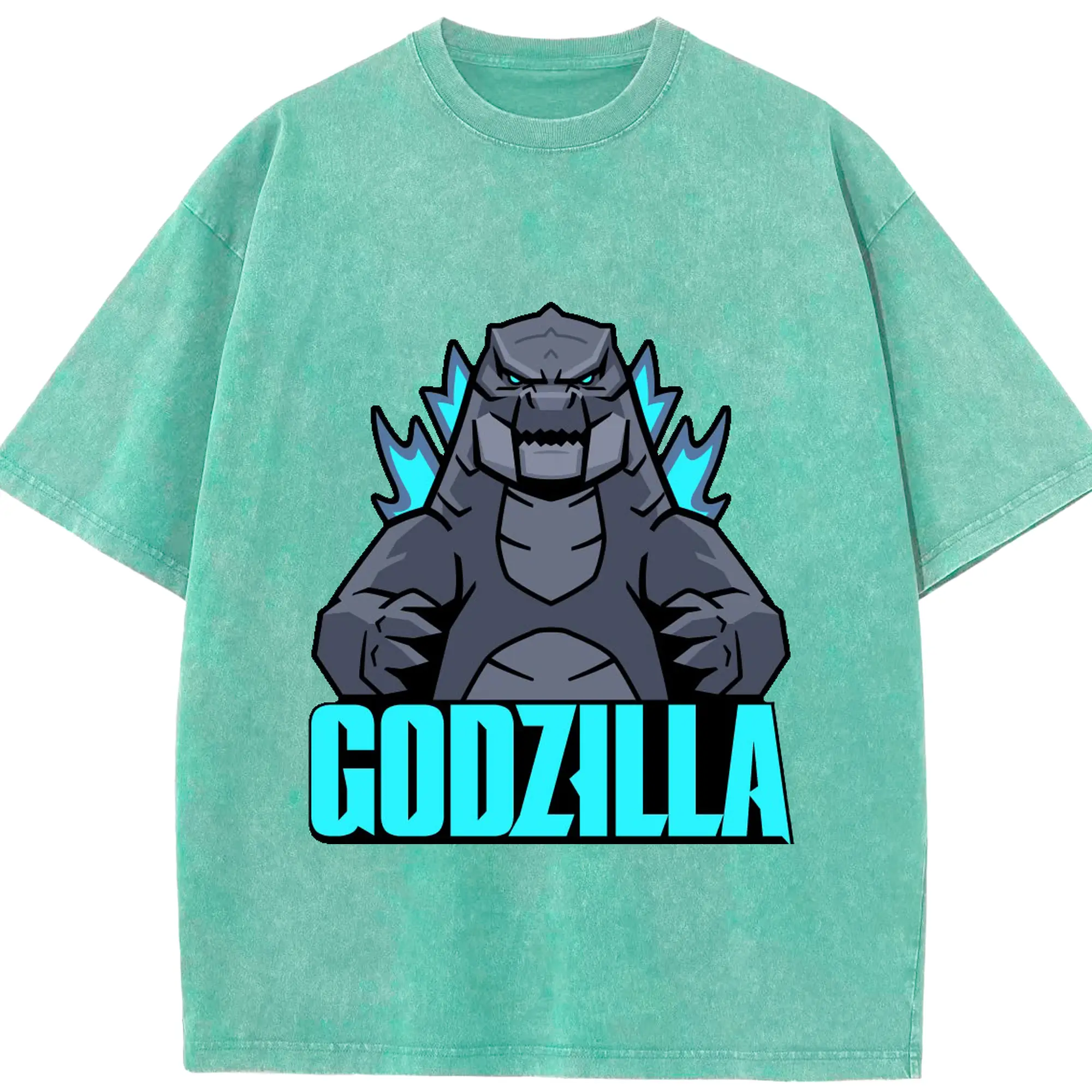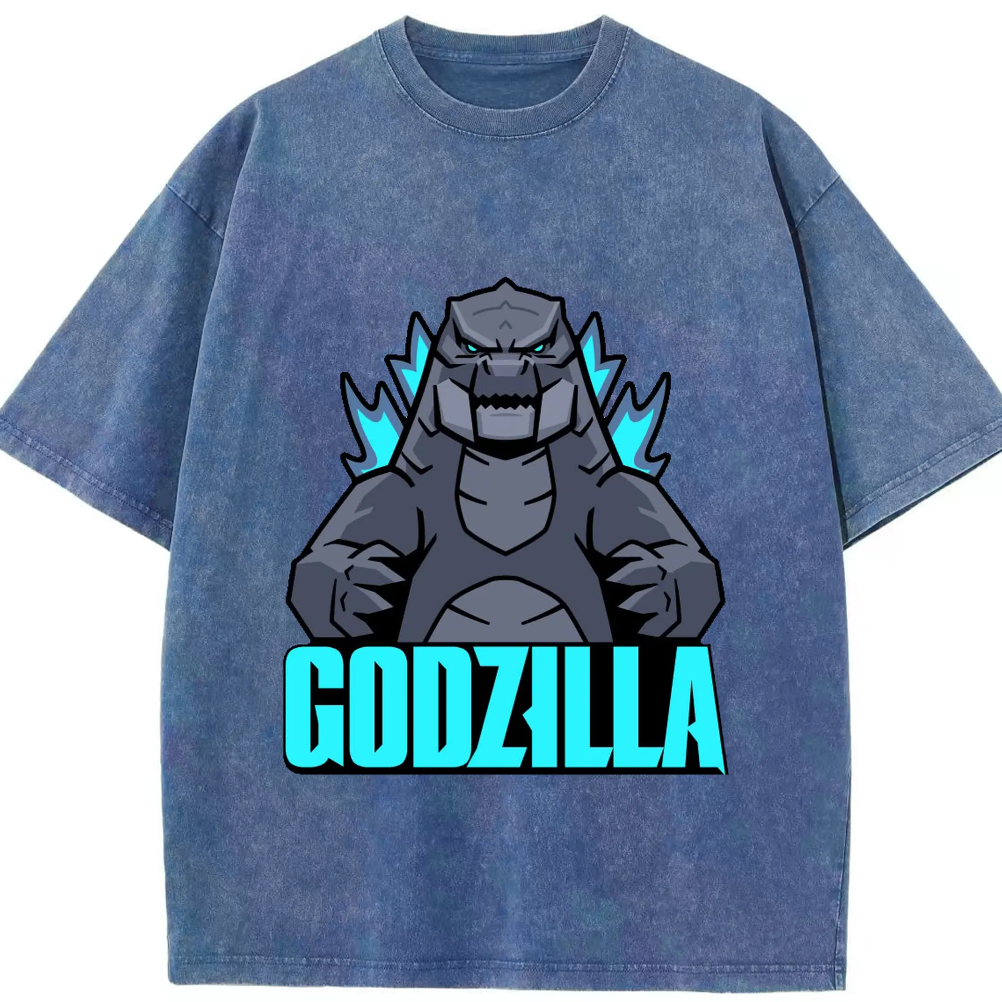 ゴジラ シンプルロゴ - 綿100% ヴィンテージ風 半袖Tシャツ ・ フロントプリント ・ 柔らか肌触り ・ 通気性 快適 ・ スポーツ カジュアル 外出用