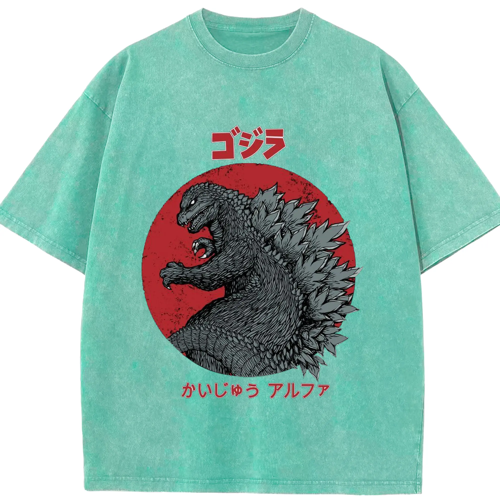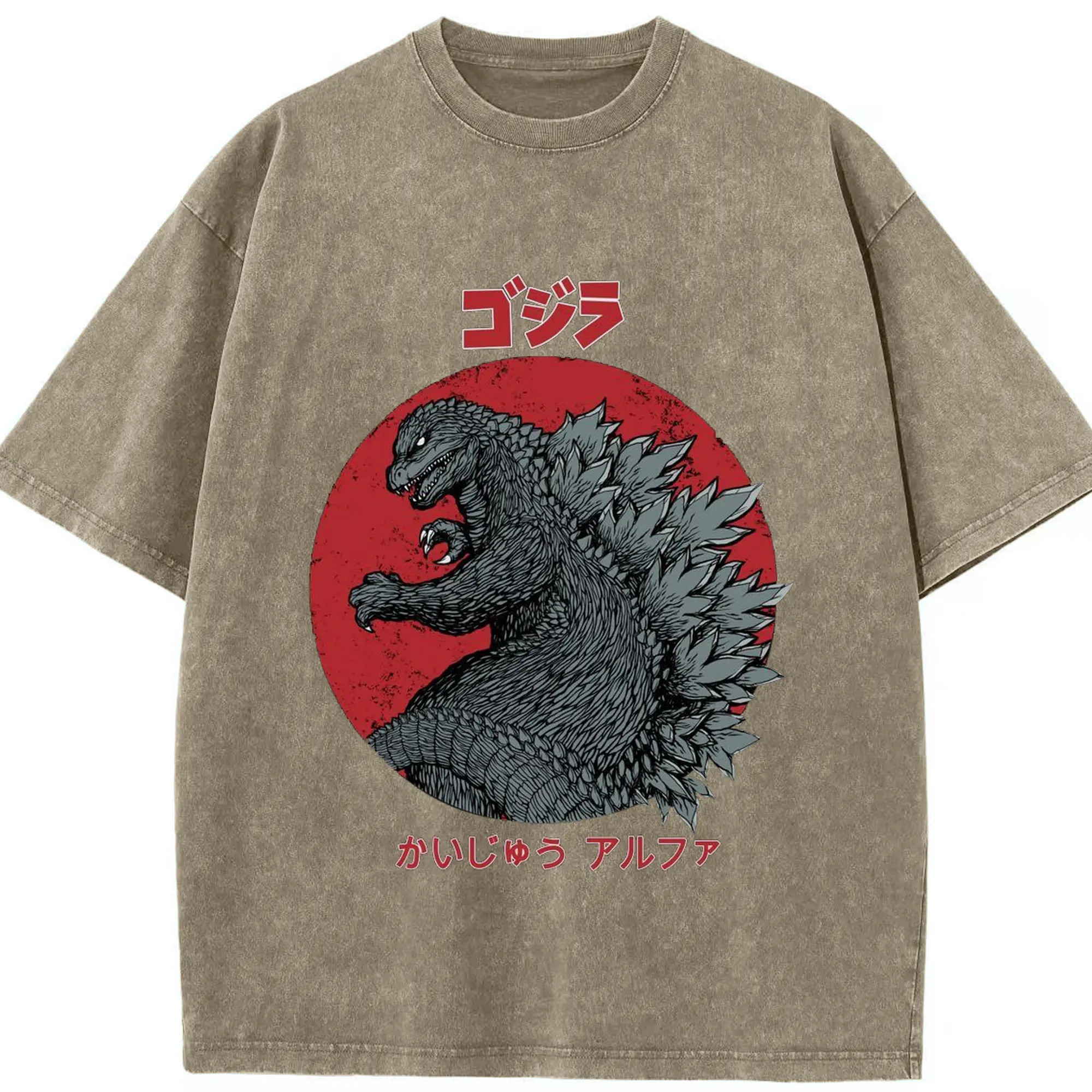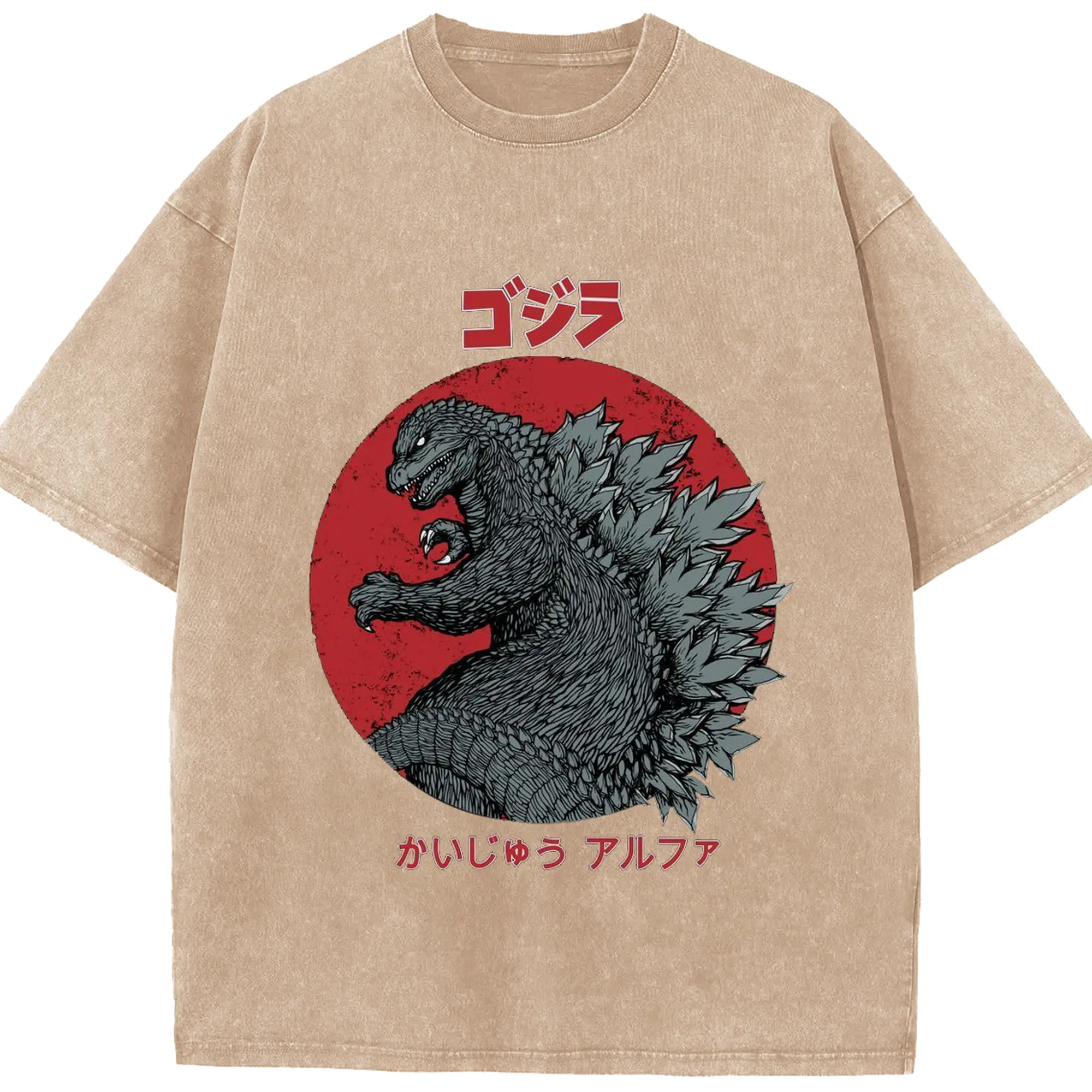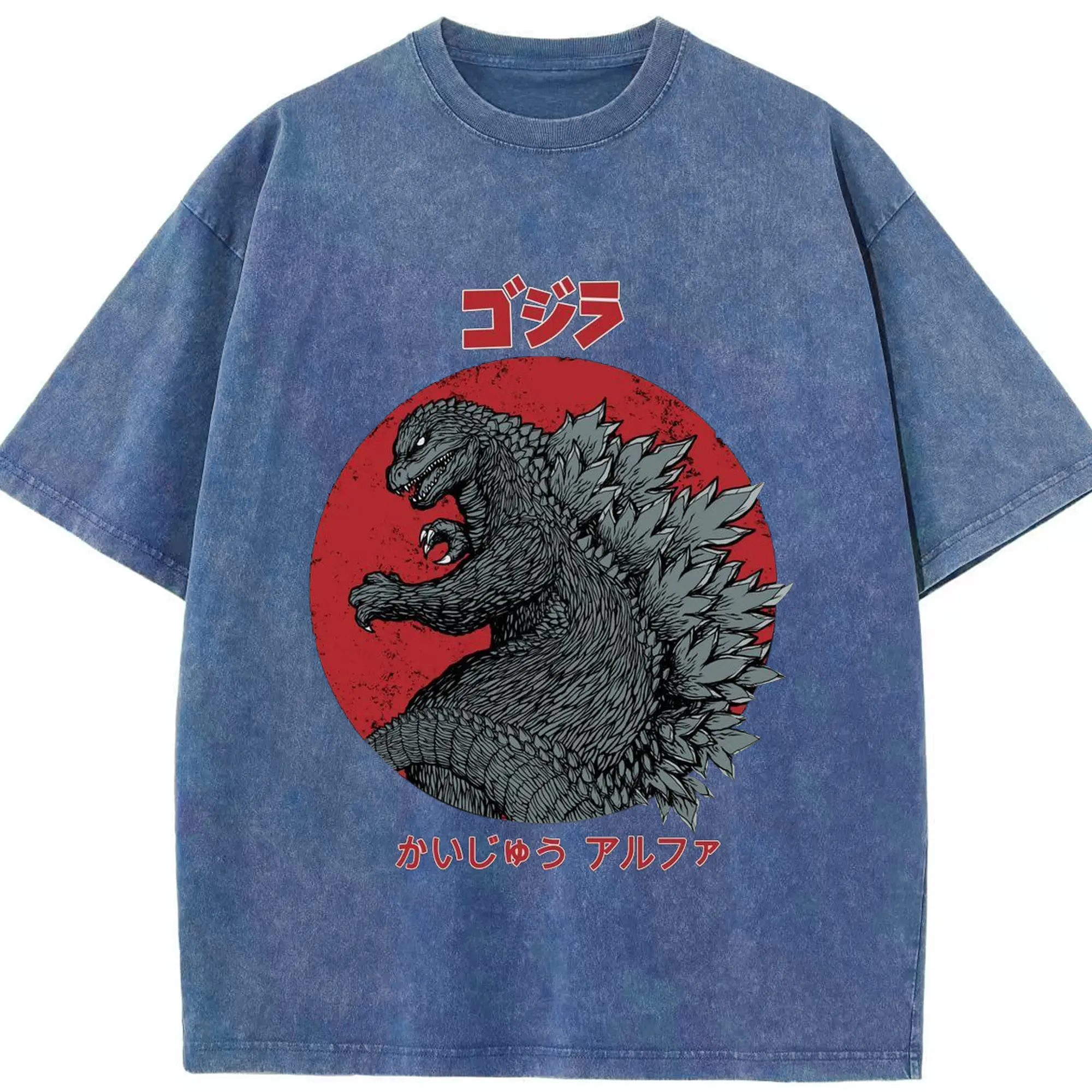 ゴジラ - 綿100% ヴィンテージ風 半袖Tシャツ ・ フロントプリント ・ 柔らか肌触り ・ 通気性 快適 ・ スポーツ カジュアル 外出用