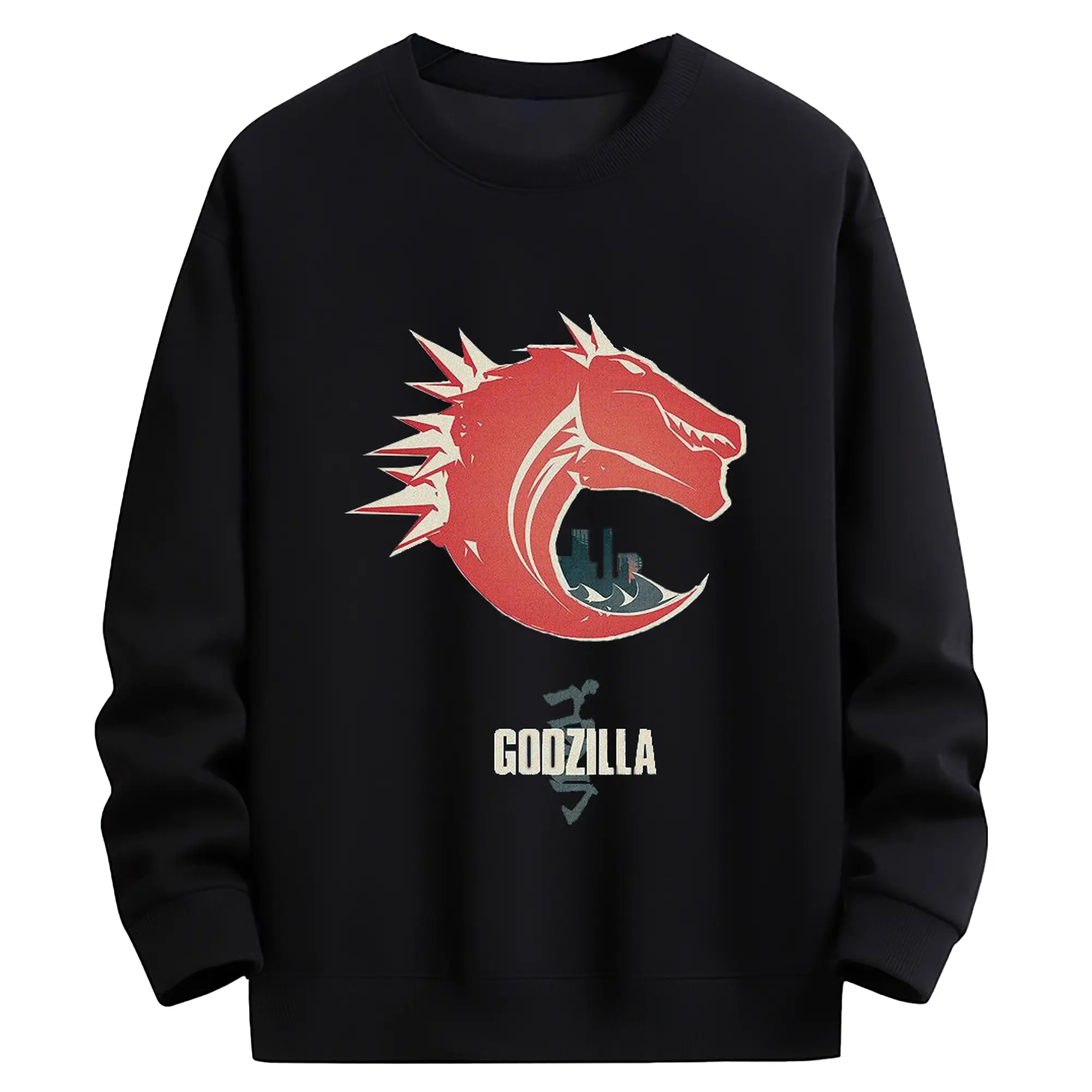 ゴジラ - 高品質 クルーネック スウェット ・ コットン59% ポリエステル41% ・ ユニセックス 長袖 トレーナー ・ カジュアル デイリー スポーツ 散歩用