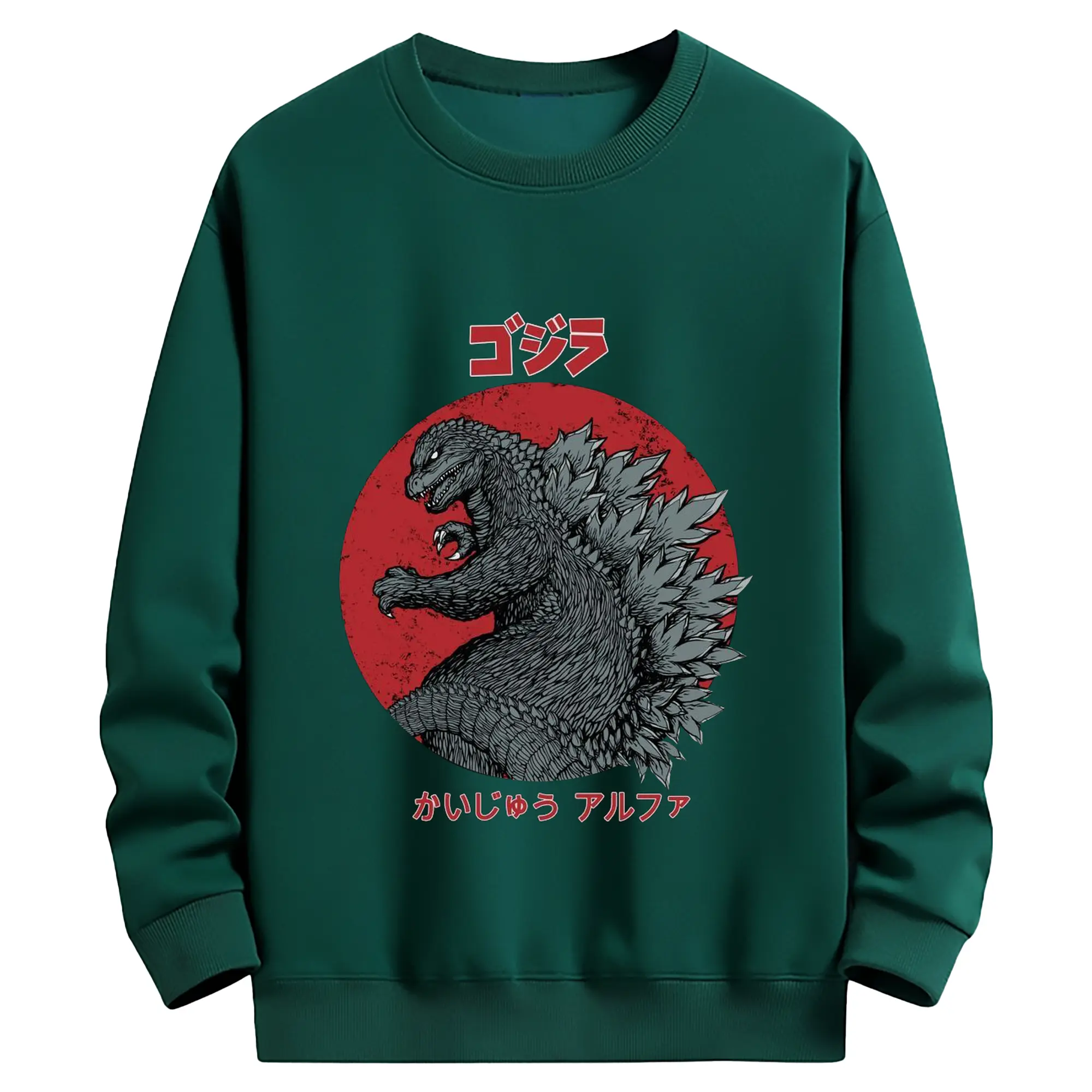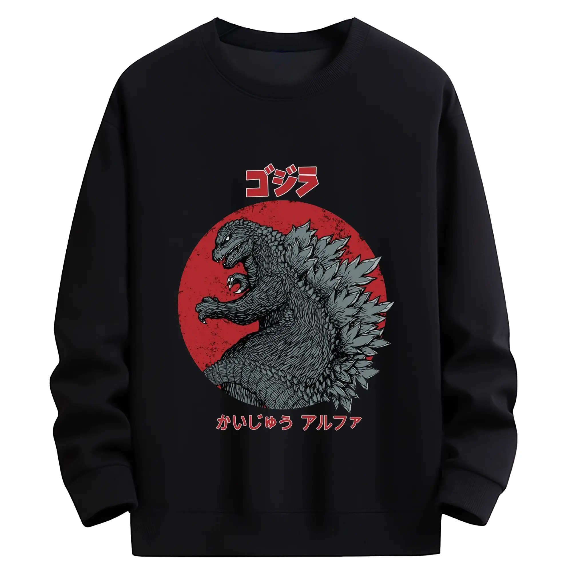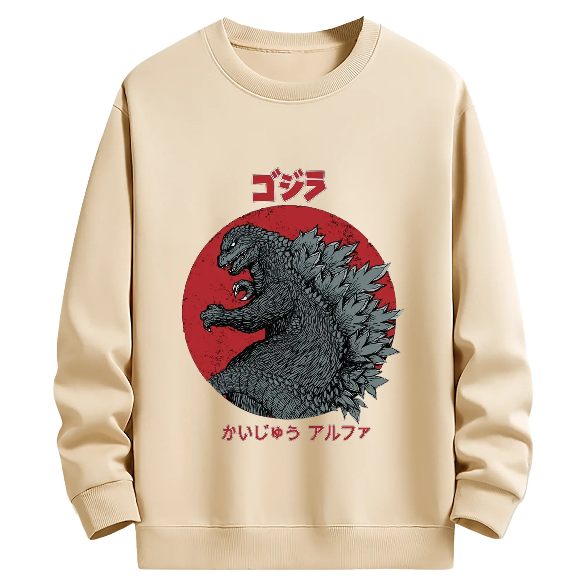 ゴジラ - 高品質 クルーネック スウェット ・ コットン59% ポリエステル41% ・ ユニセックス 長袖 トレーナー ・ カジュアル デイリー スポーツ 散歩用