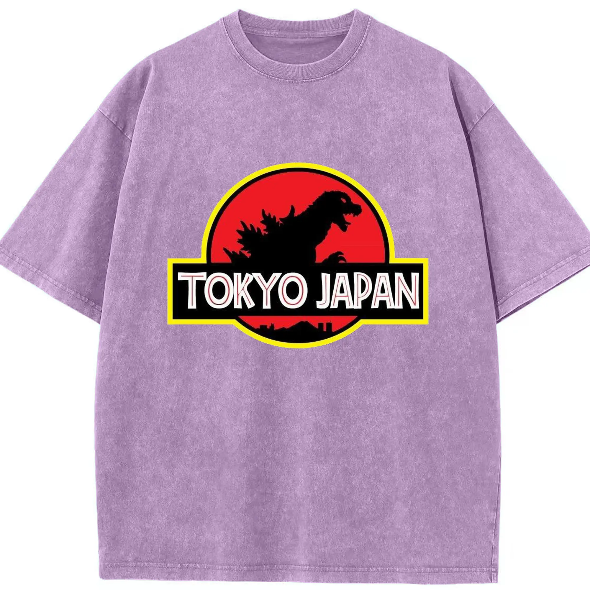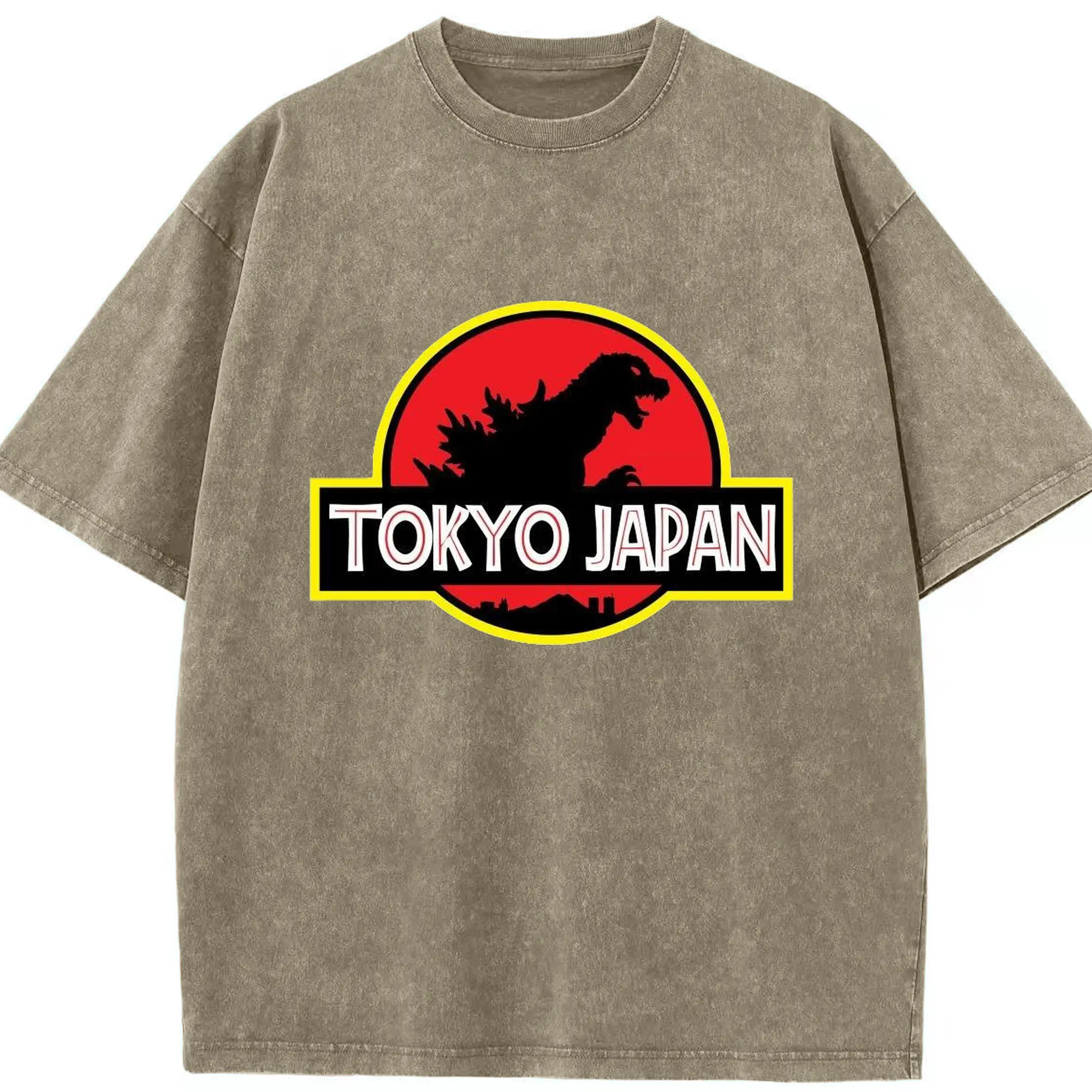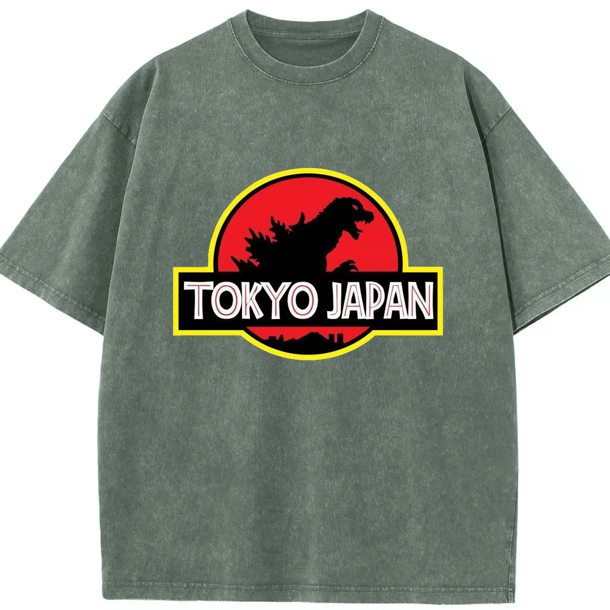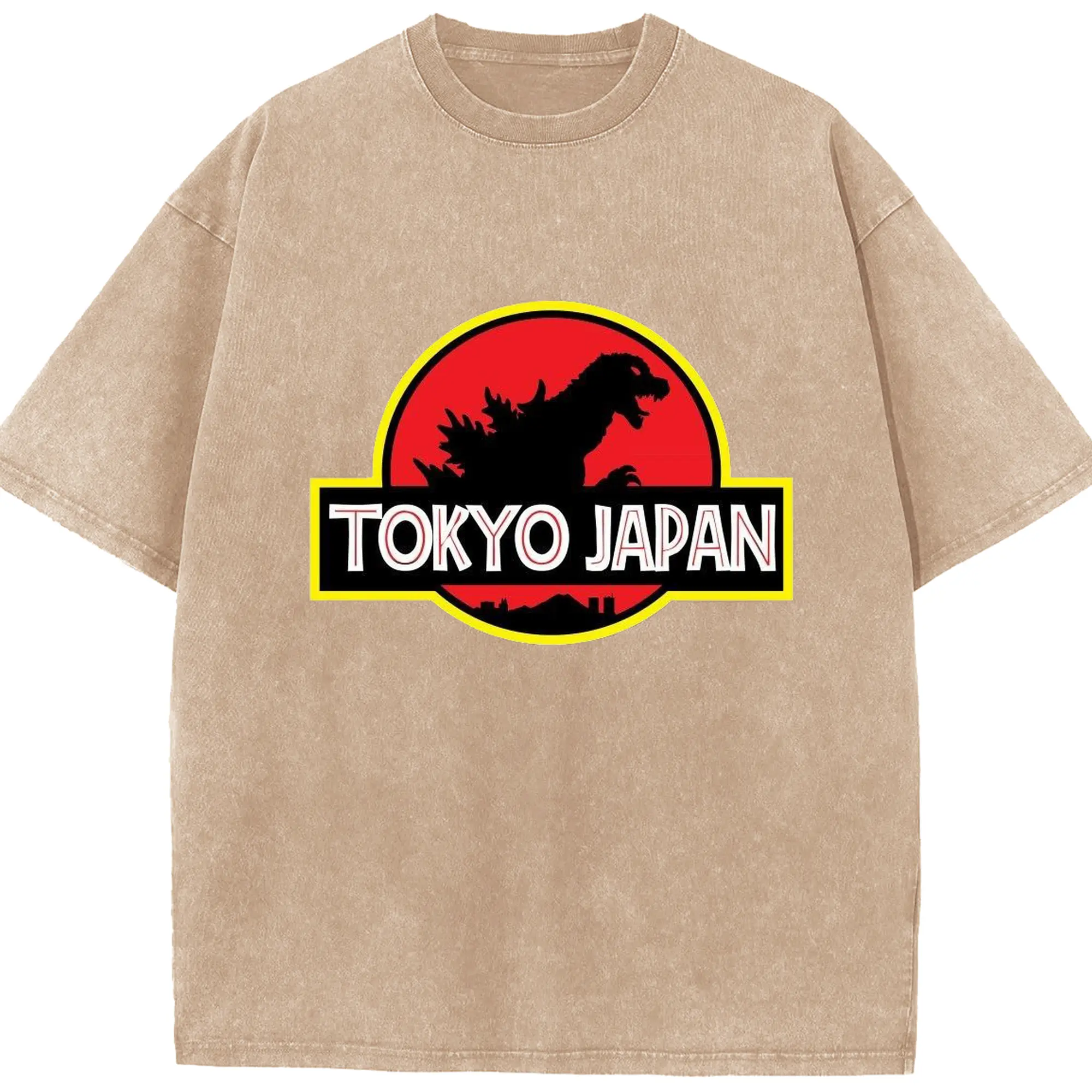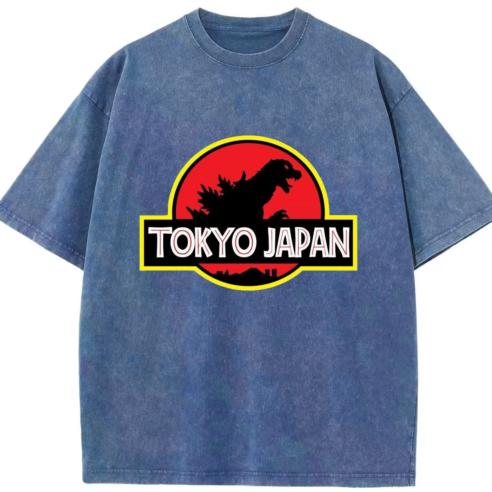 ゴジラ - 綿100% ヴィンテージ風 半袖Tシャツ ・ フロントプリント ・ 柔らか肌触り ・ 通気性 快適 ・ スポーツ カジュアル 外出用