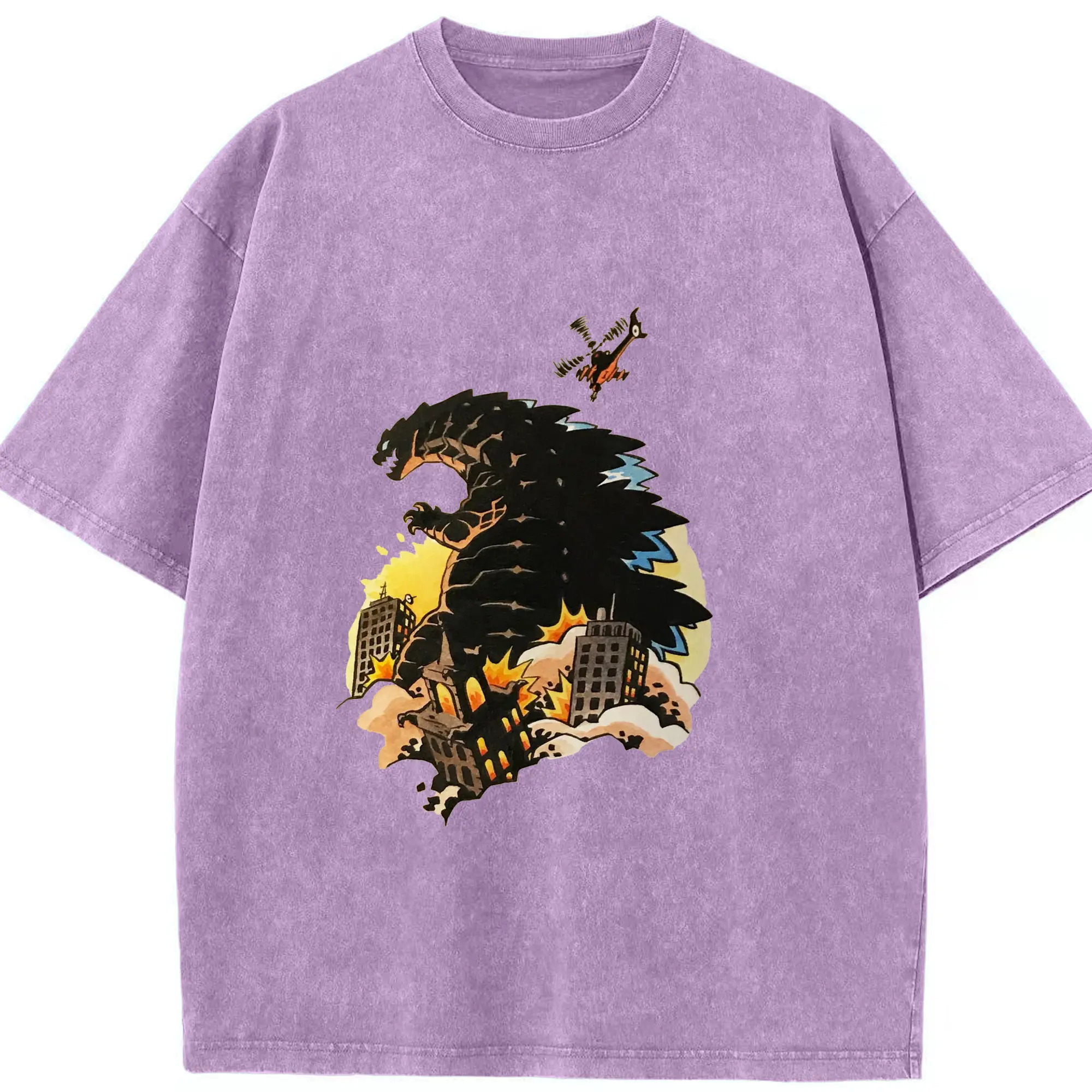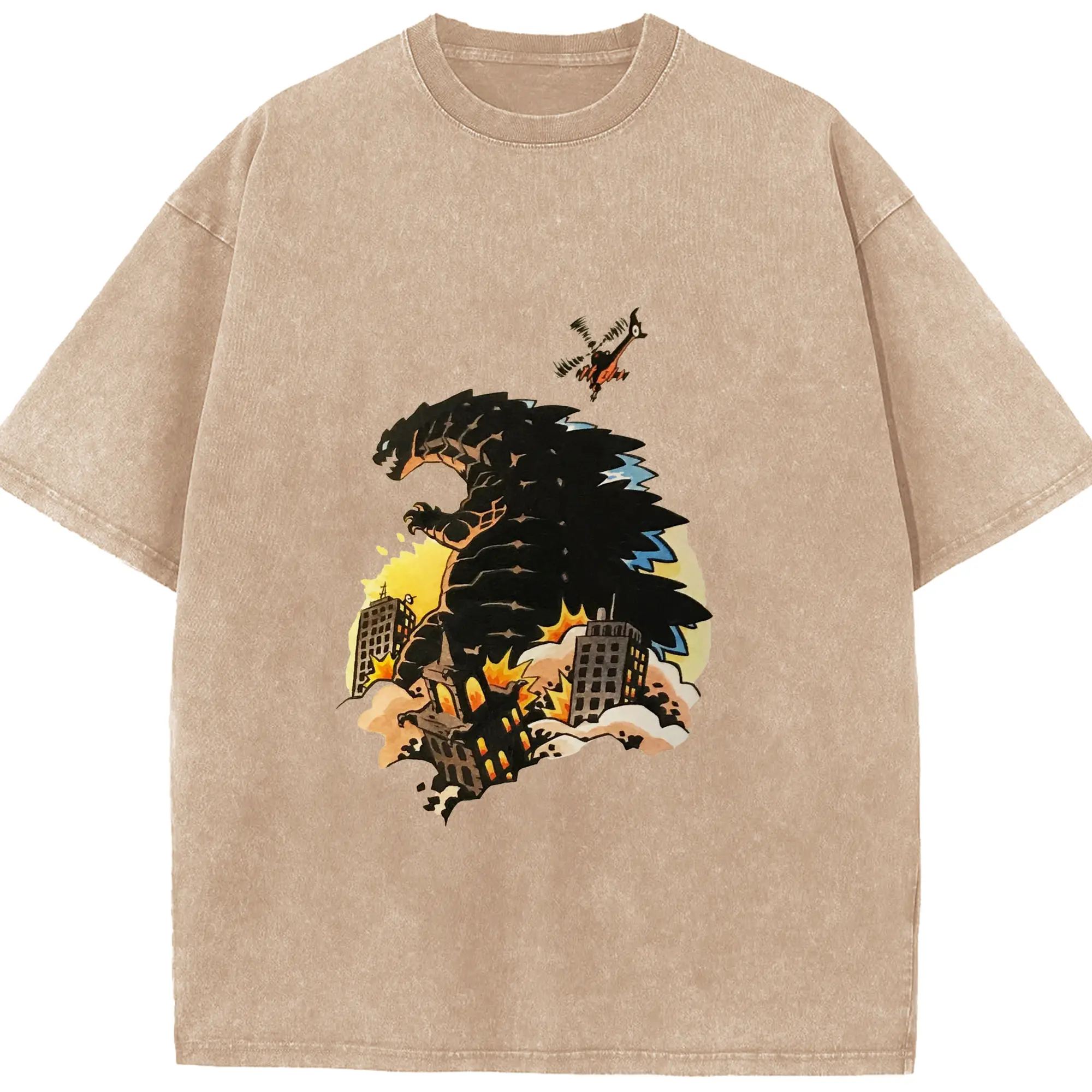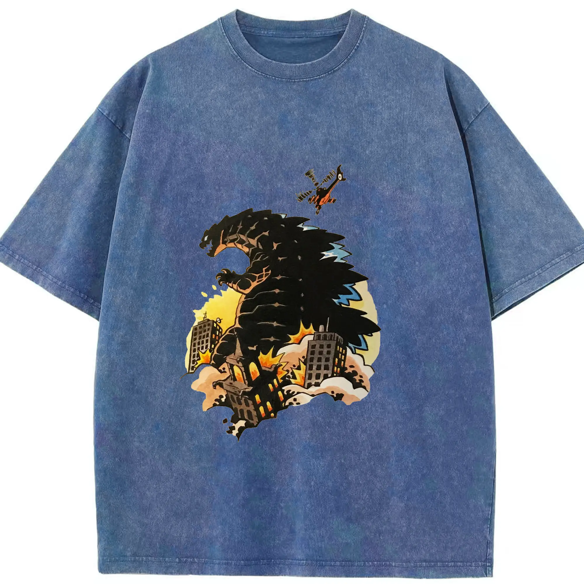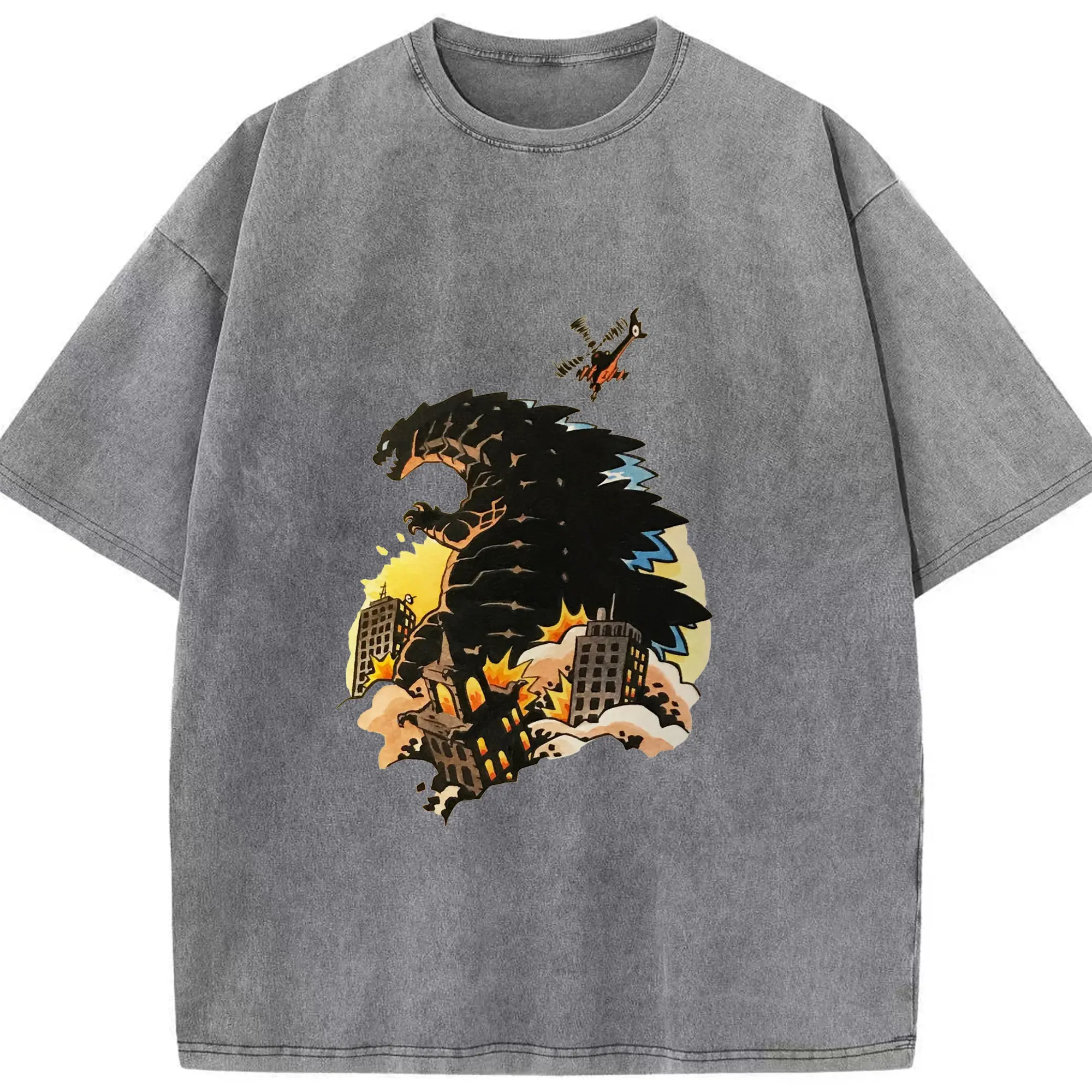ゴジラ - 綿100% ヴィンテージ風 半袖Tシャツ ・ フロントプリント ・ 柔らか肌触り ・ 通気性 快適 ・ スポーツ カジュアル 外出用