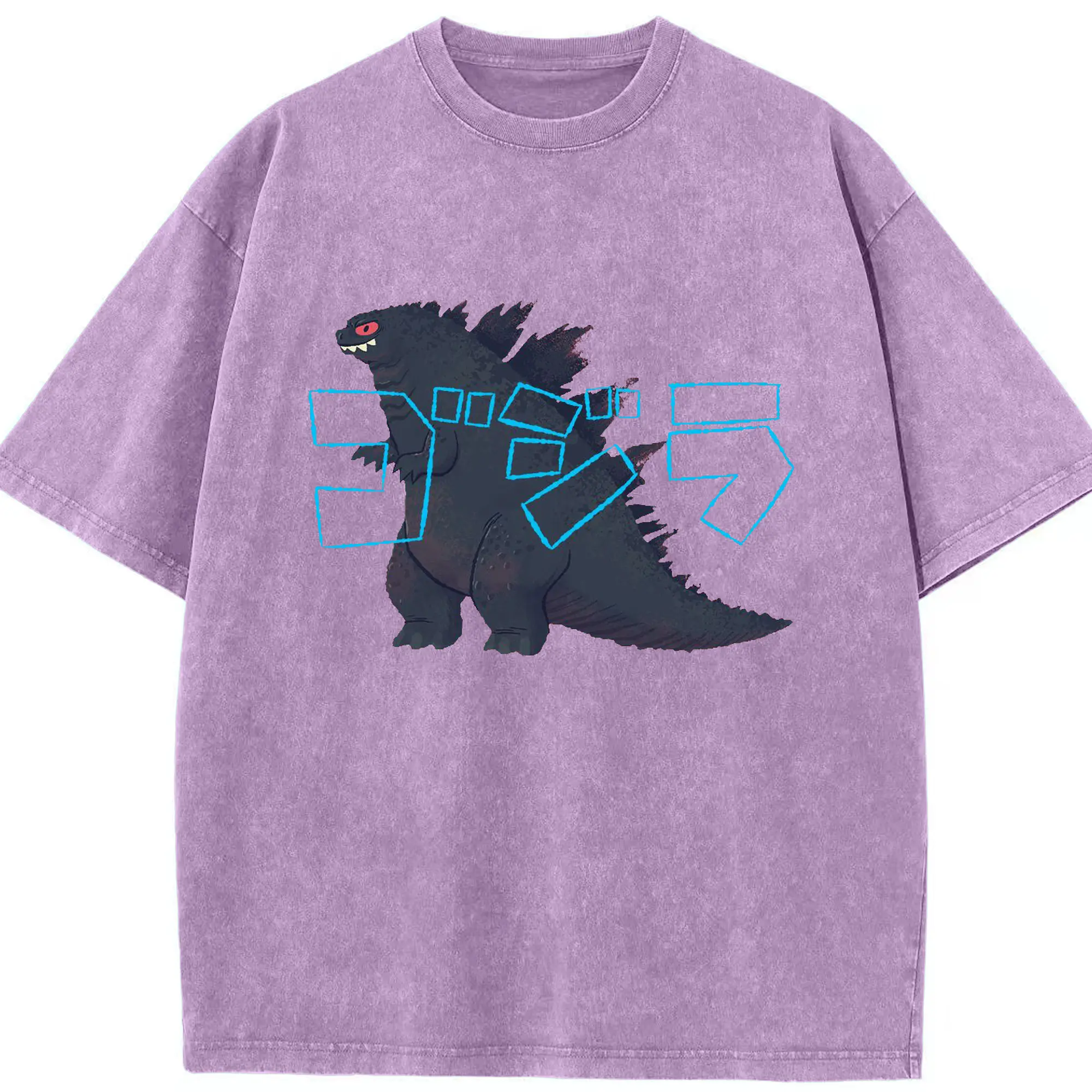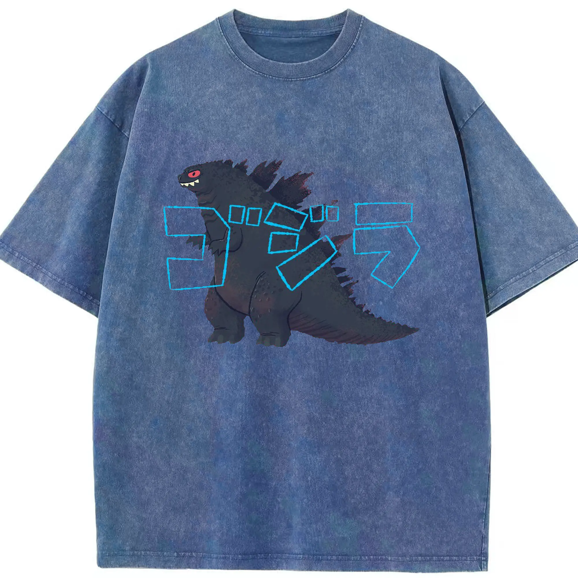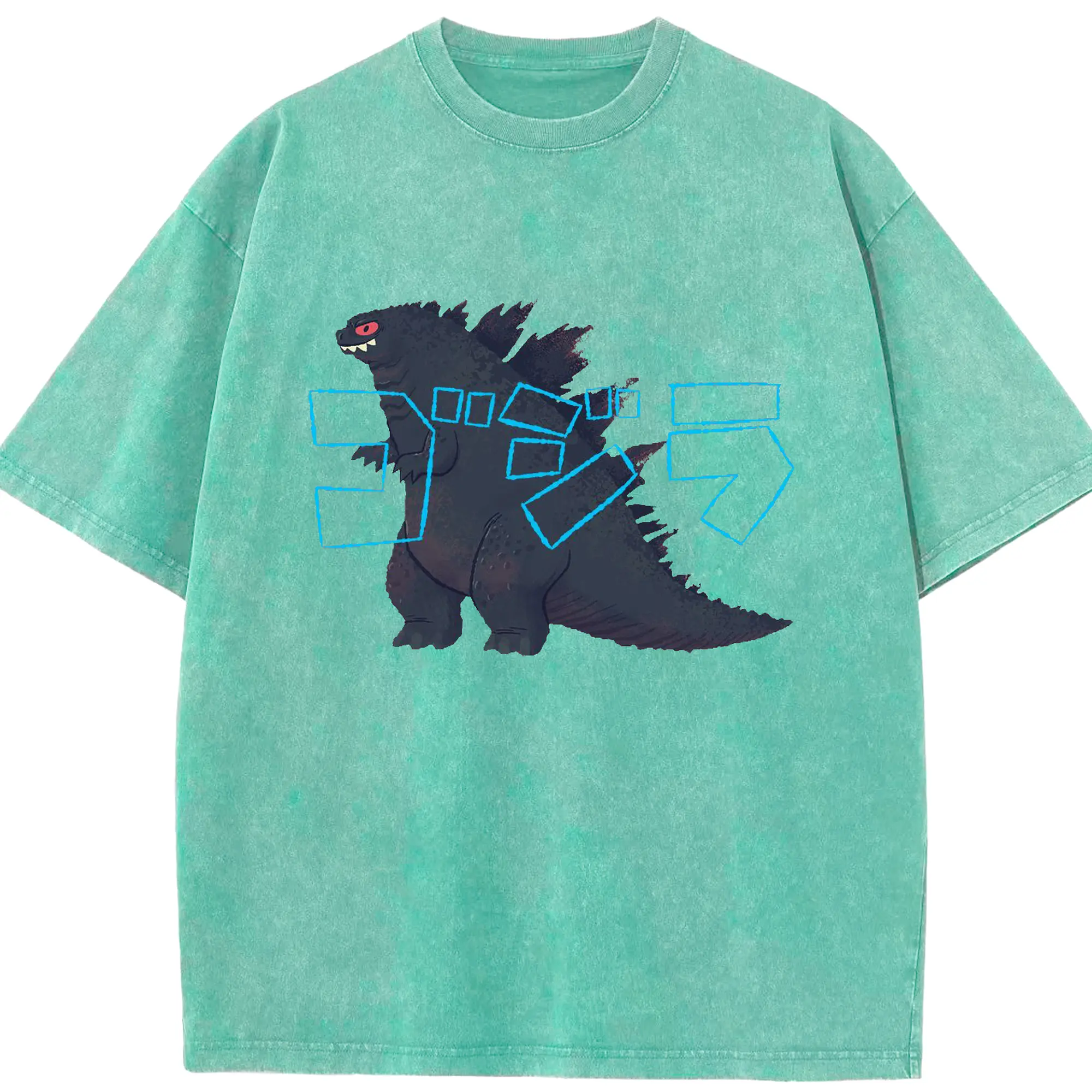 ゴジラ - 綿100% ヴィンテージ風 半袖Tシャツ ・ フロントプリント ・ 柔らか肌触り ・ 通気性 快適 ・ スポーツ カジュアル 外出用