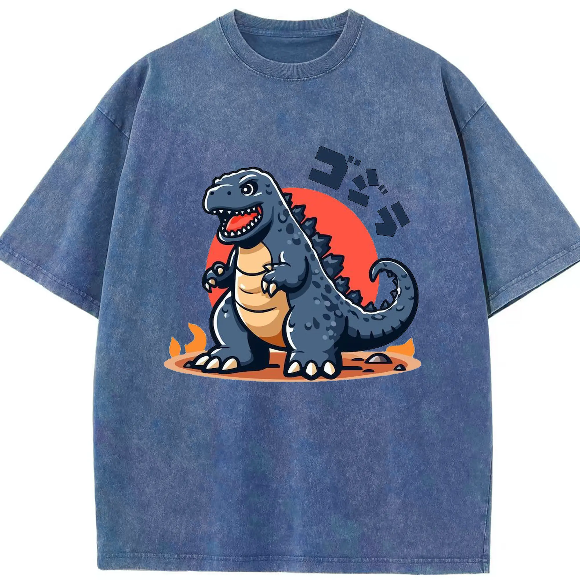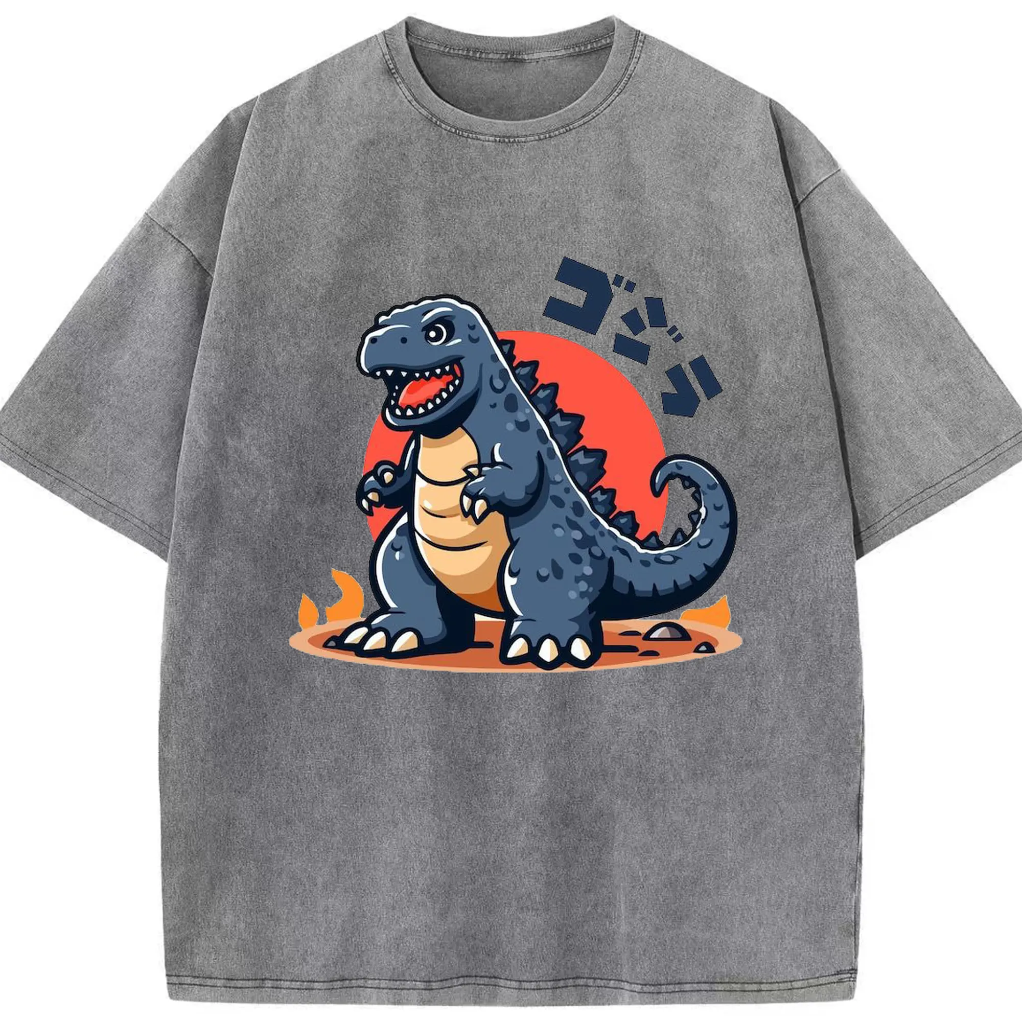 ゴジラ - 綿100% ヴィンテージ風 半袖Tシャツ ・ フロントプリント ・ 柔らか肌触り ・ 通気性 快適 ・ スポーツ カジュアル 外出用
