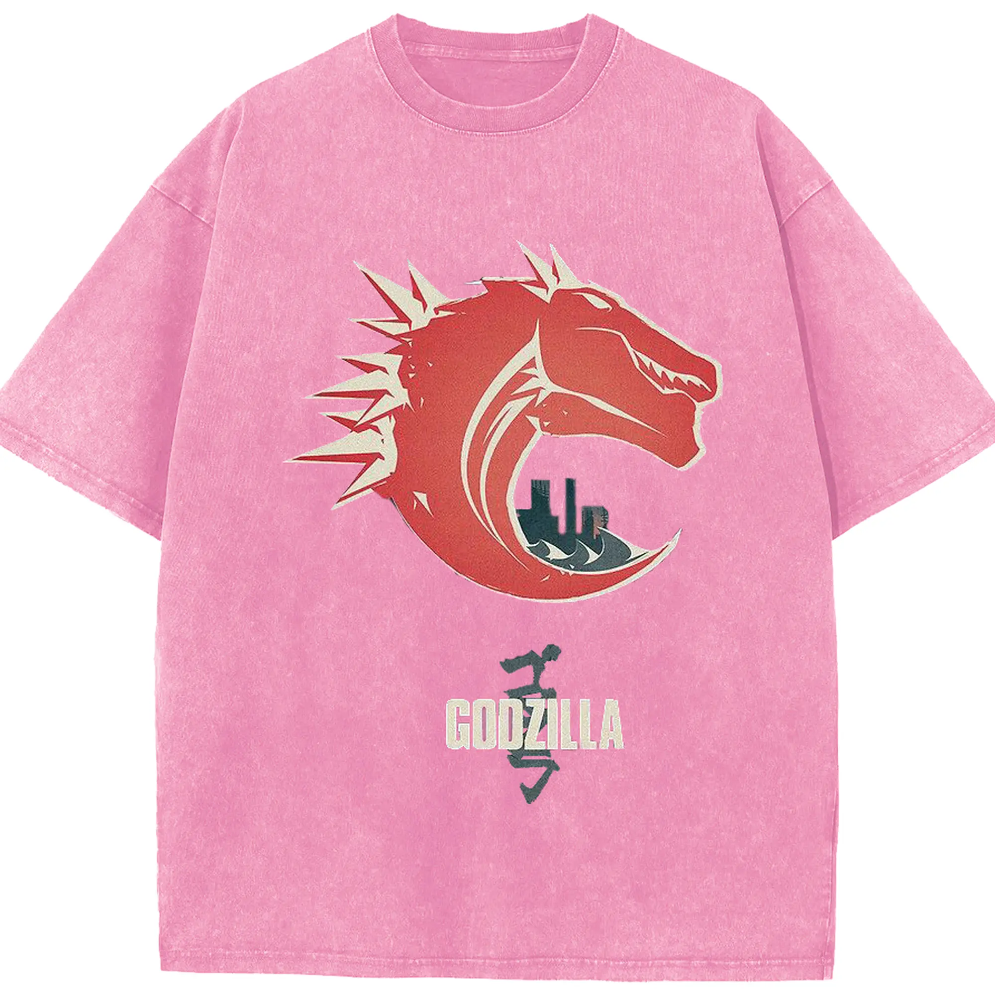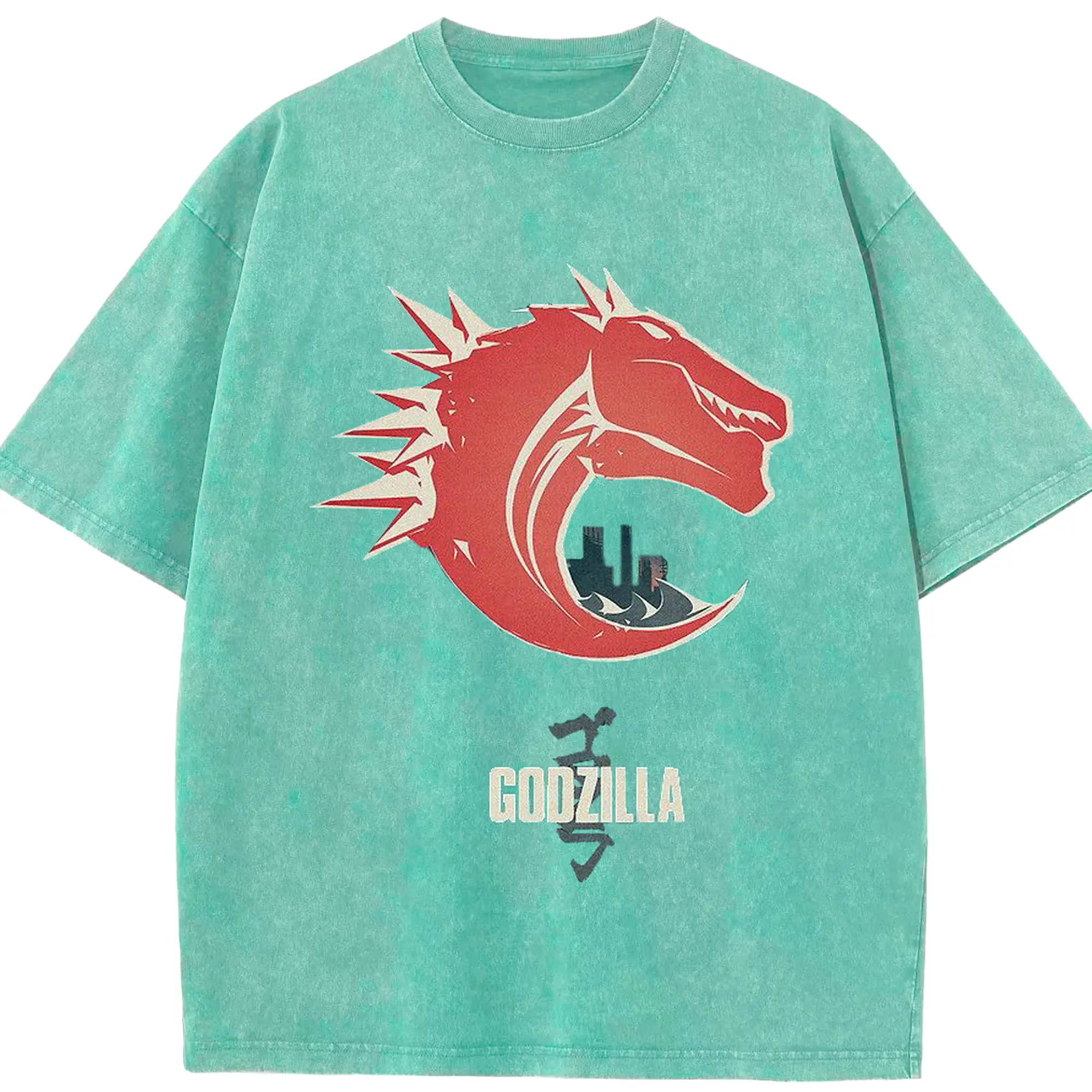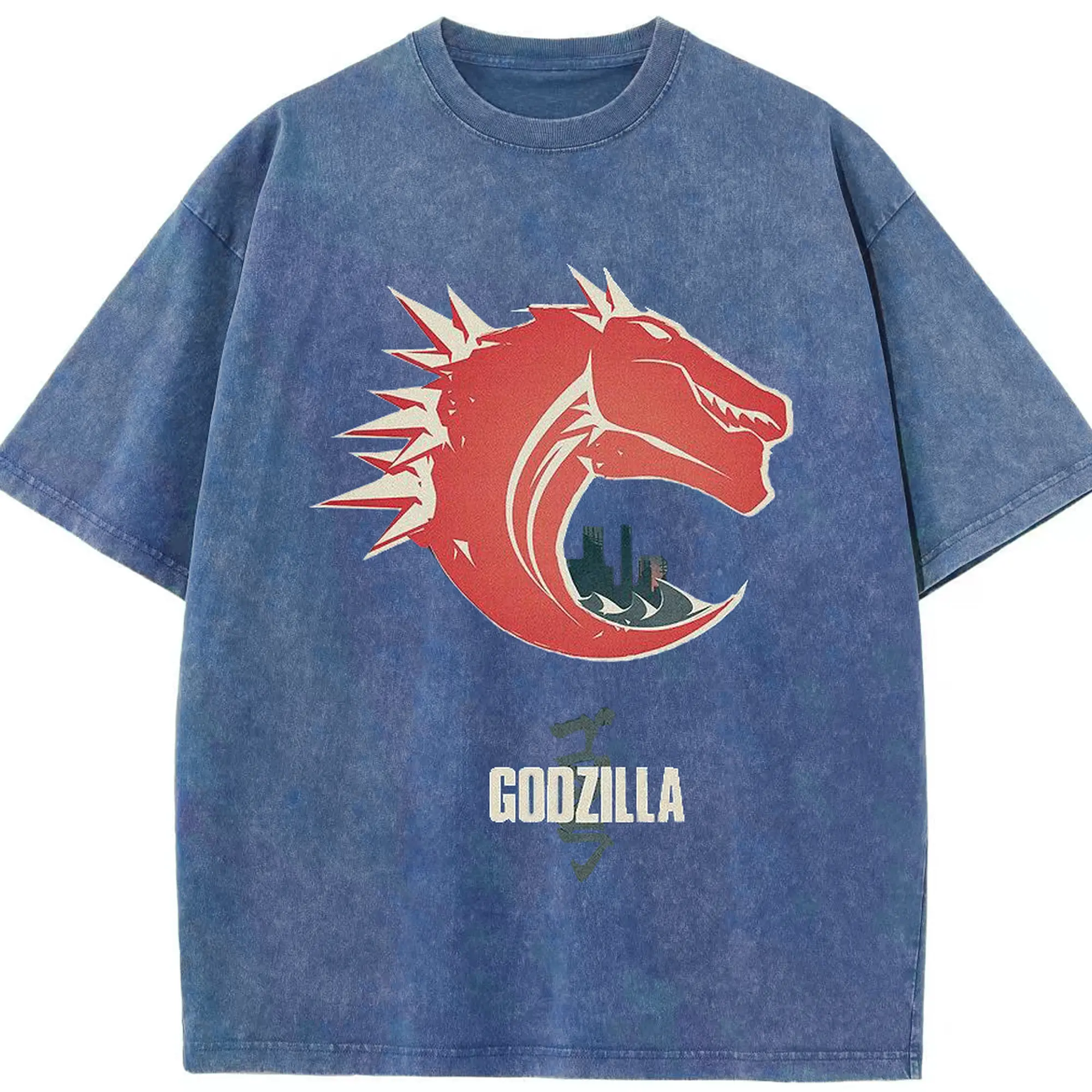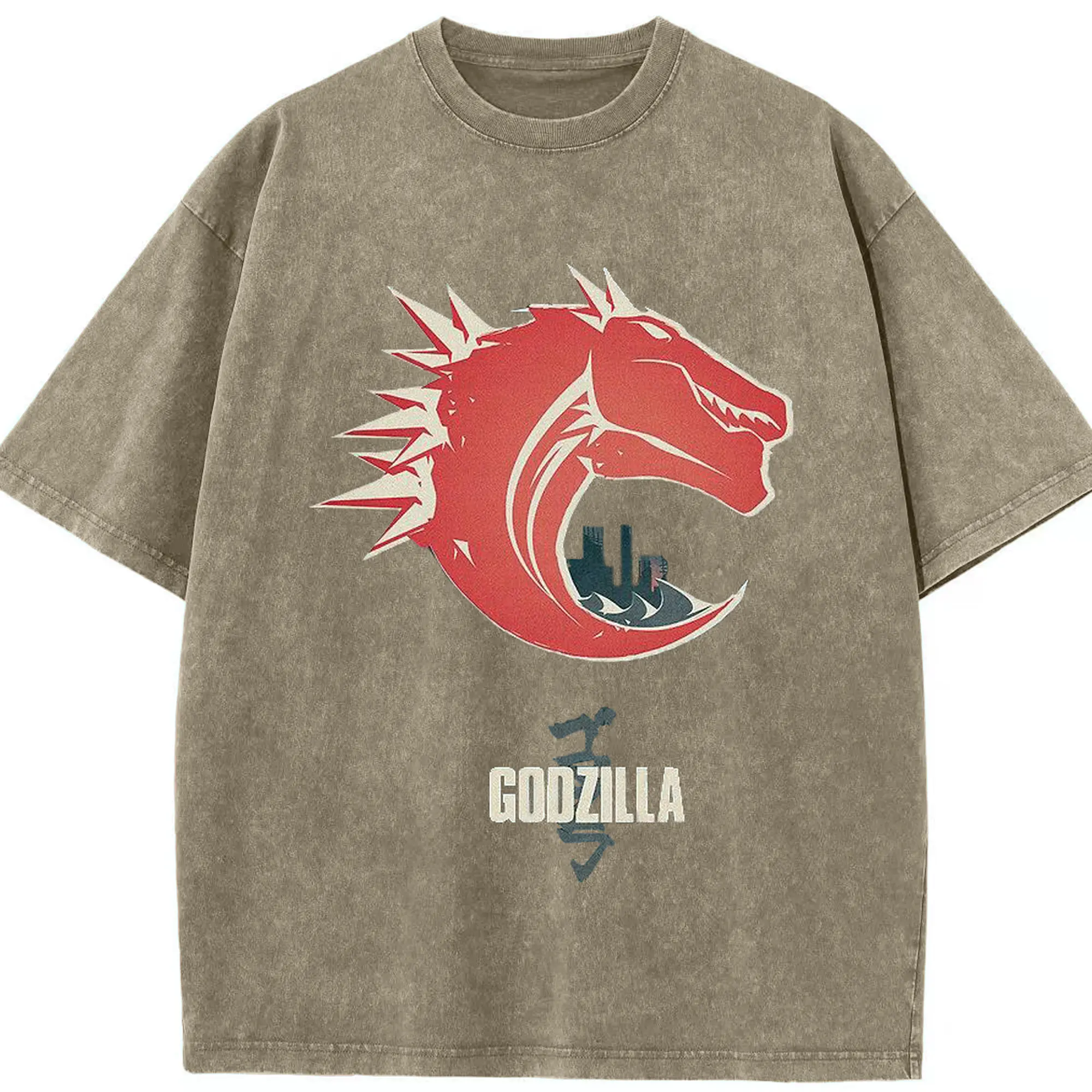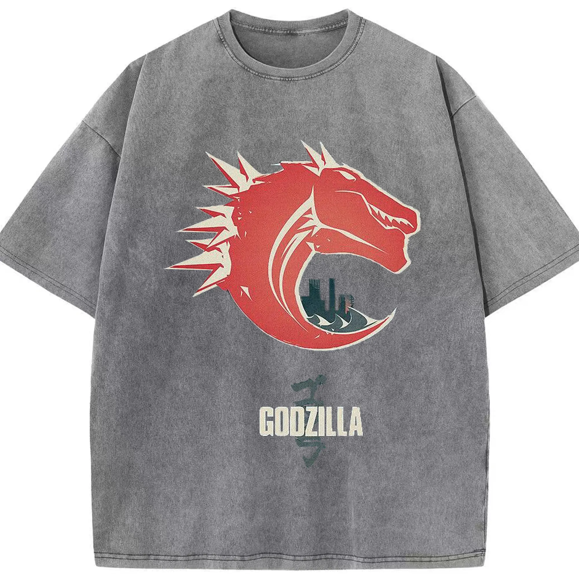 ゴジラ - 綿100% ヴィンテージ風 半袖Tシャツ ・ フロントプリント ・ 柔らか肌触り ・ 通気性 快適 ・ スポーツ カジュアル 外出用