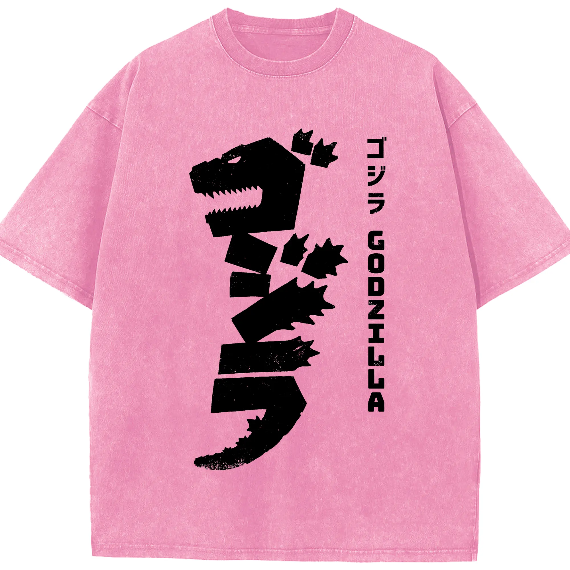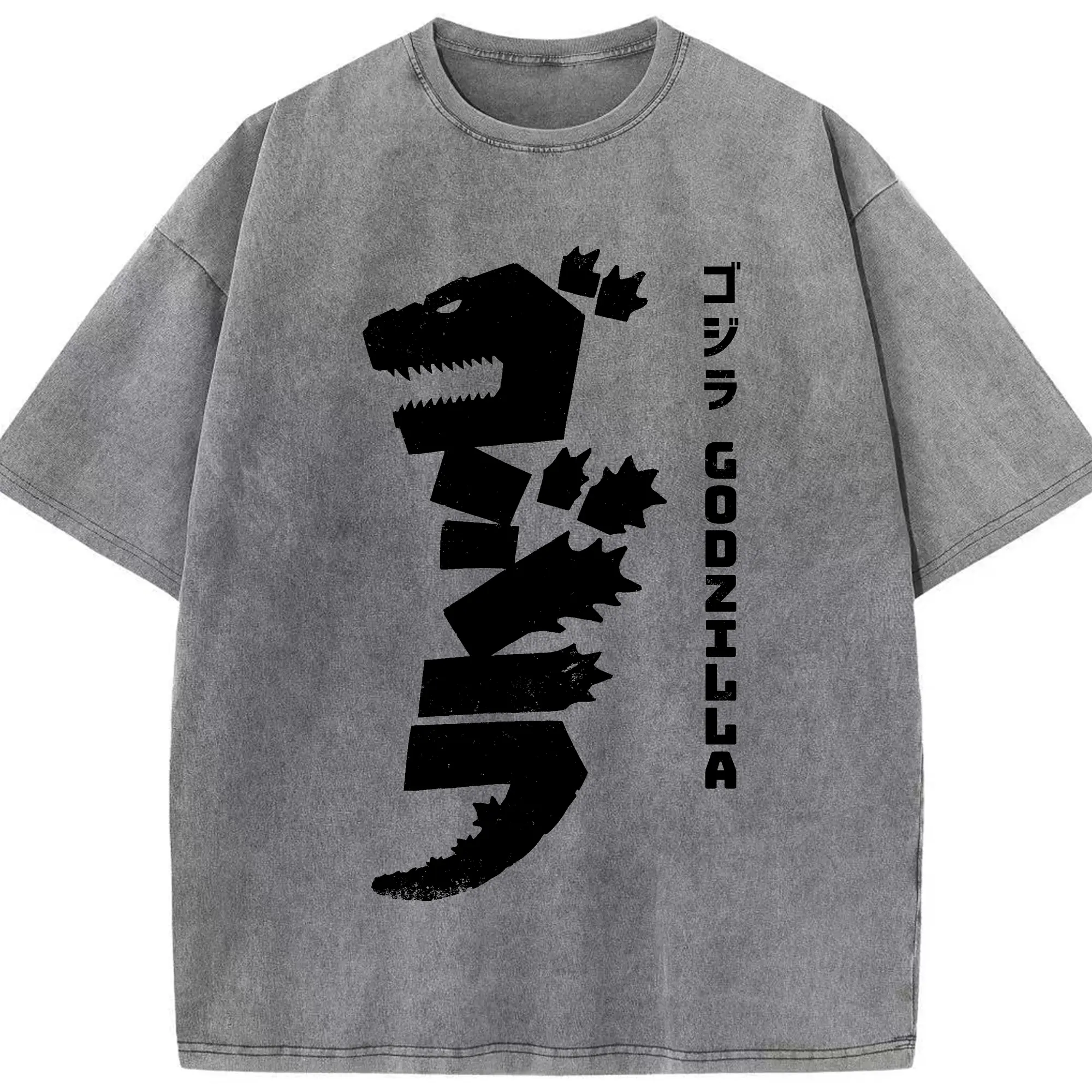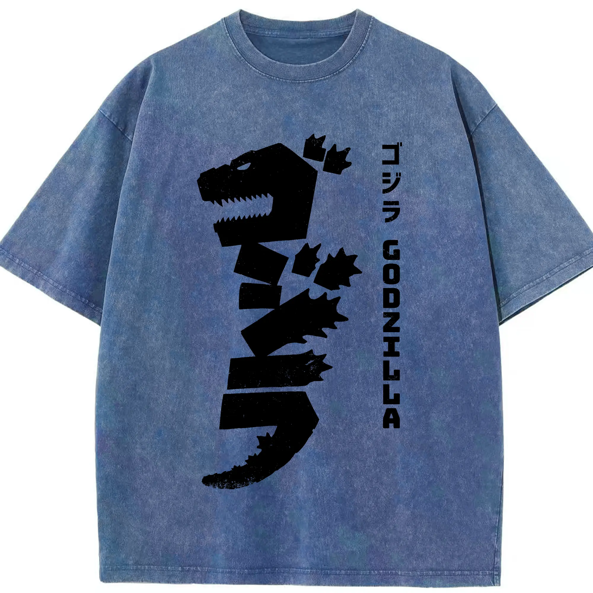ゴジラ シンプルロゴ - 綿100% ヴィンテージ風 半袖Tシャツ ・ フロントプリント ・ 柔らか肌触り ・ 通気性 快適 ・ スポーツ カジュアル 外出用