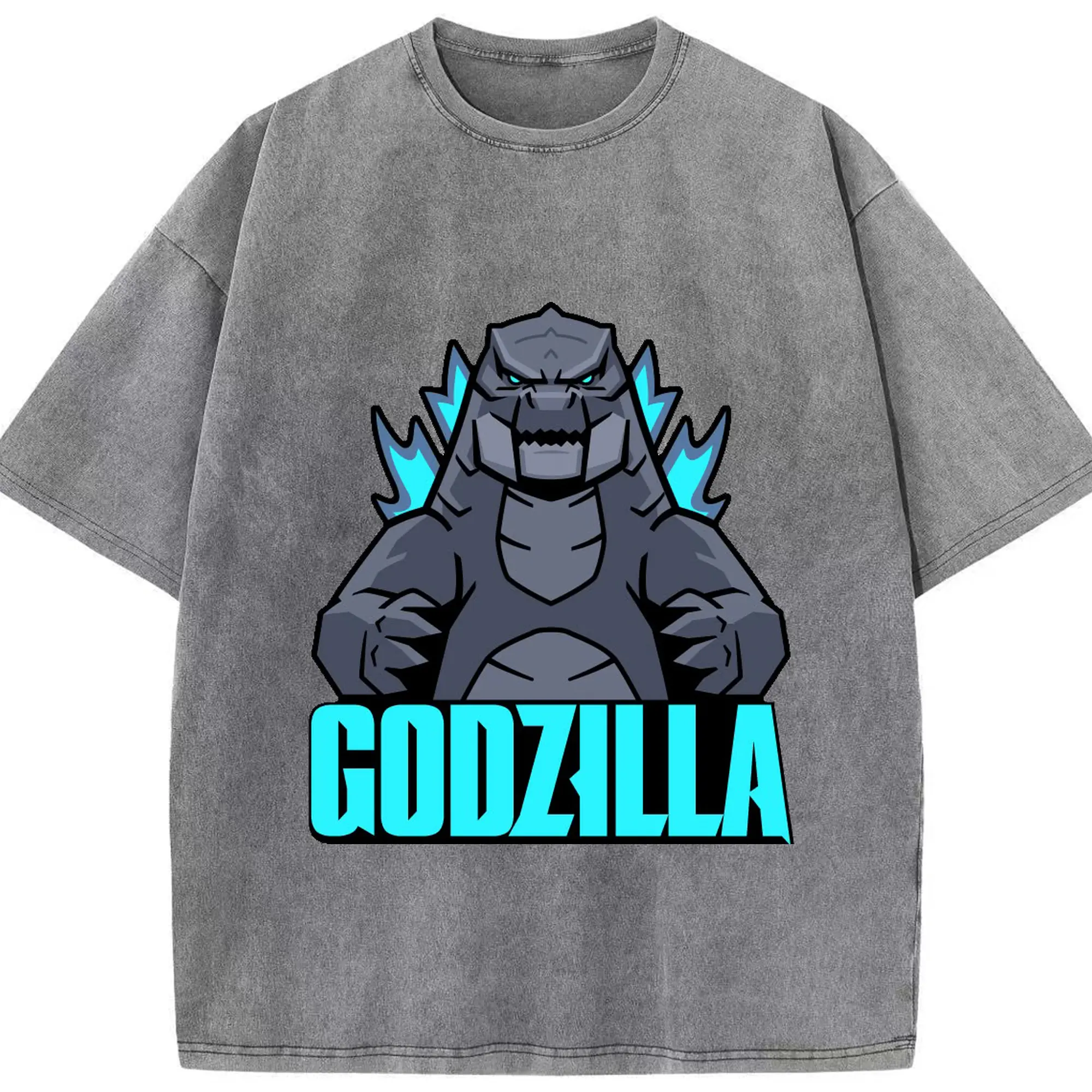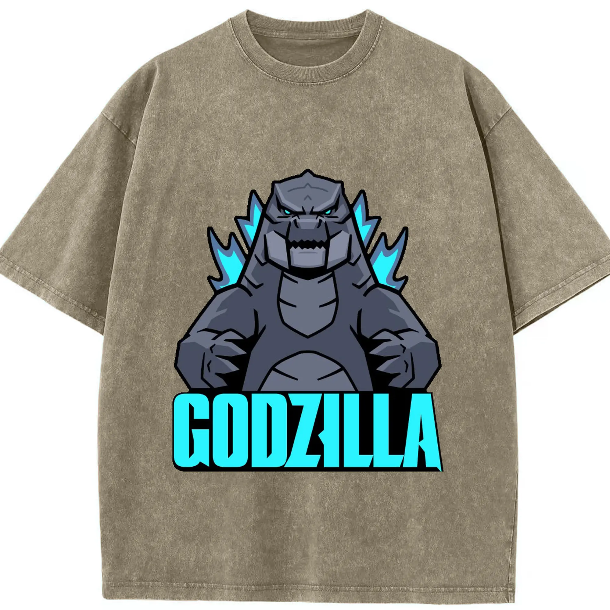 ゴジラ シンプルロゴ - 綿100% ヴィンテージ風 半袖Tシャツ ・ フロントプリント ・ 柔らか肌触り ・ 通気性 快適 ・ スポーツ カジュアル 外出用
