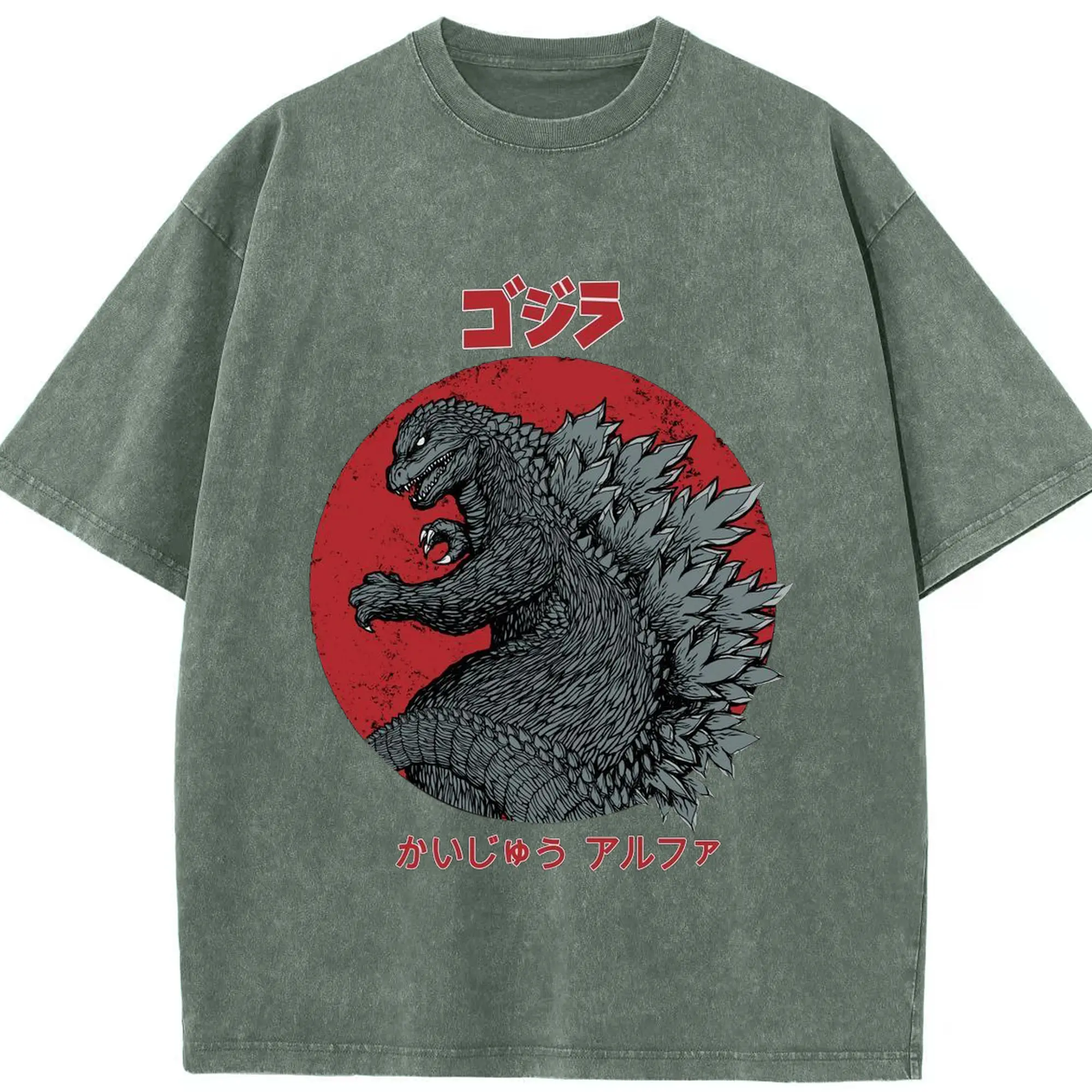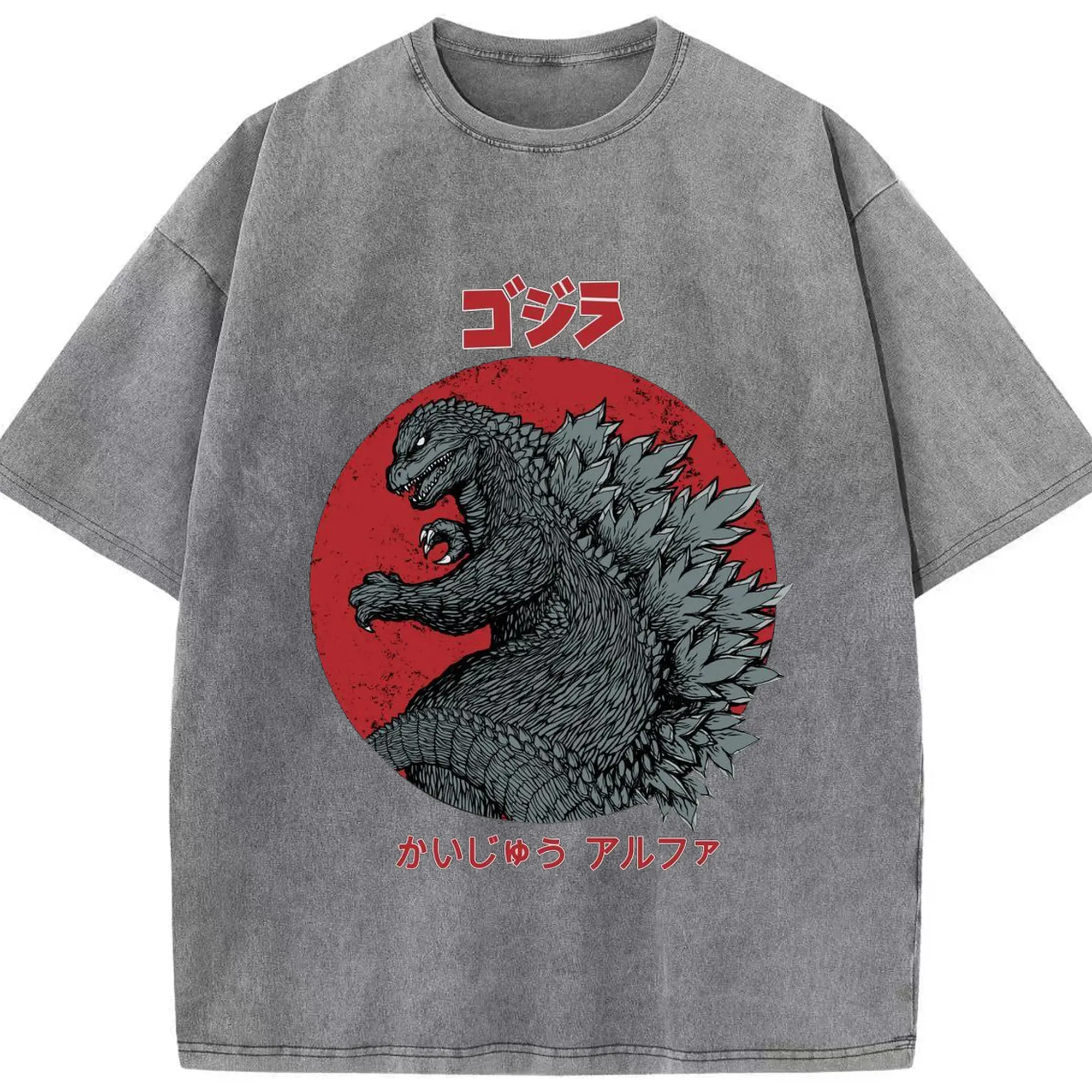ゴジラ - 綿100% ヴィンテージ風 半袖Tシャツ ・ フロントプリント ・ 柔らか肌触り ・ 通気性 快適 ・ スポーツ カジュアル 外出用