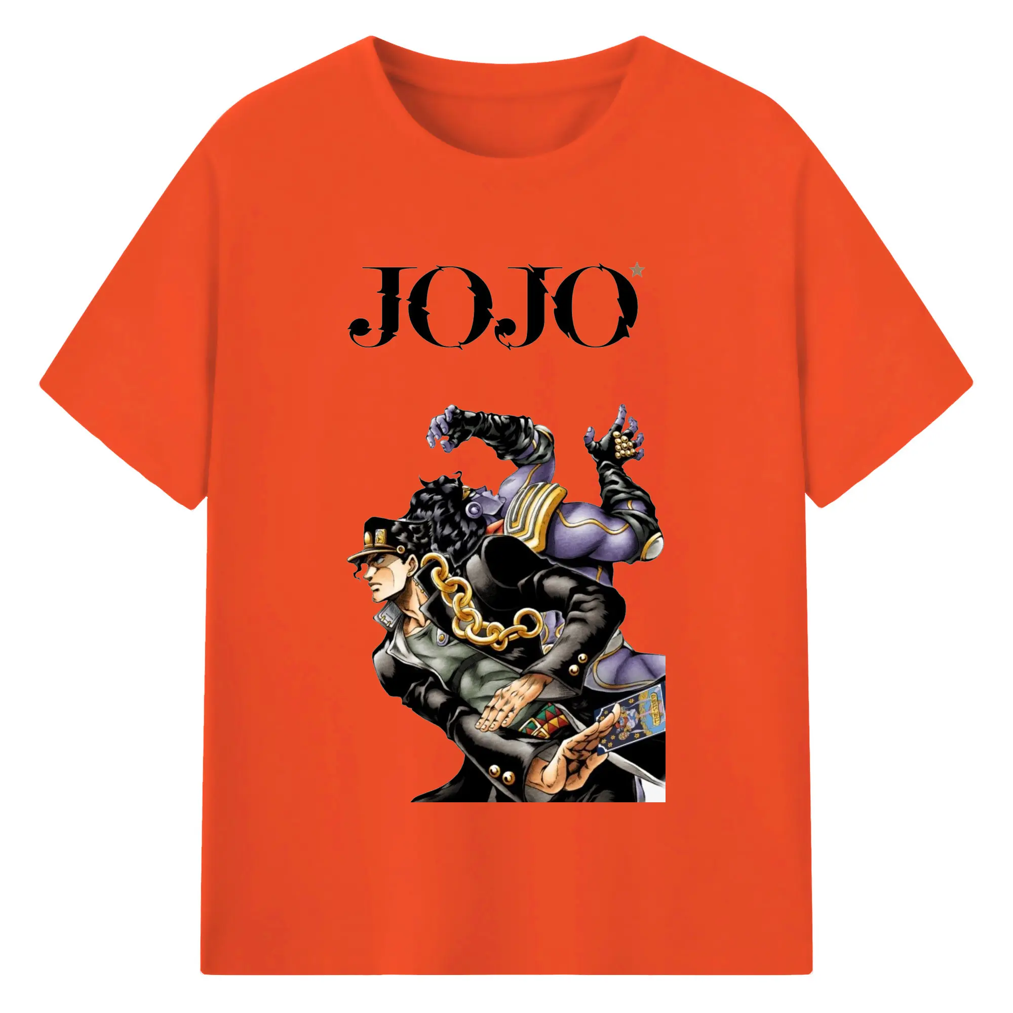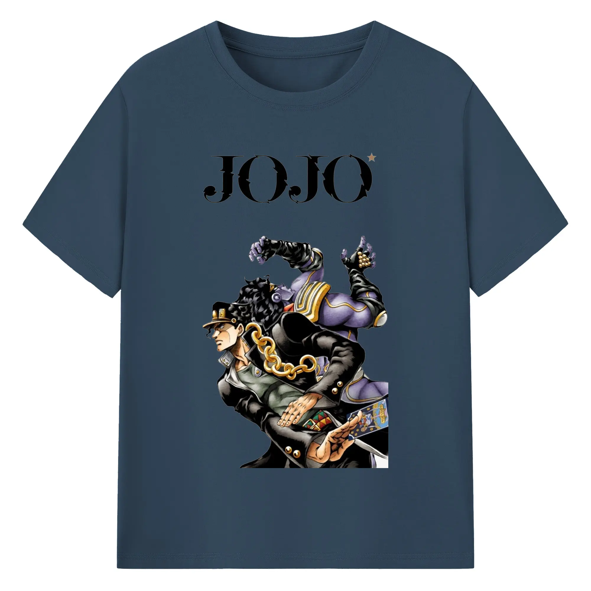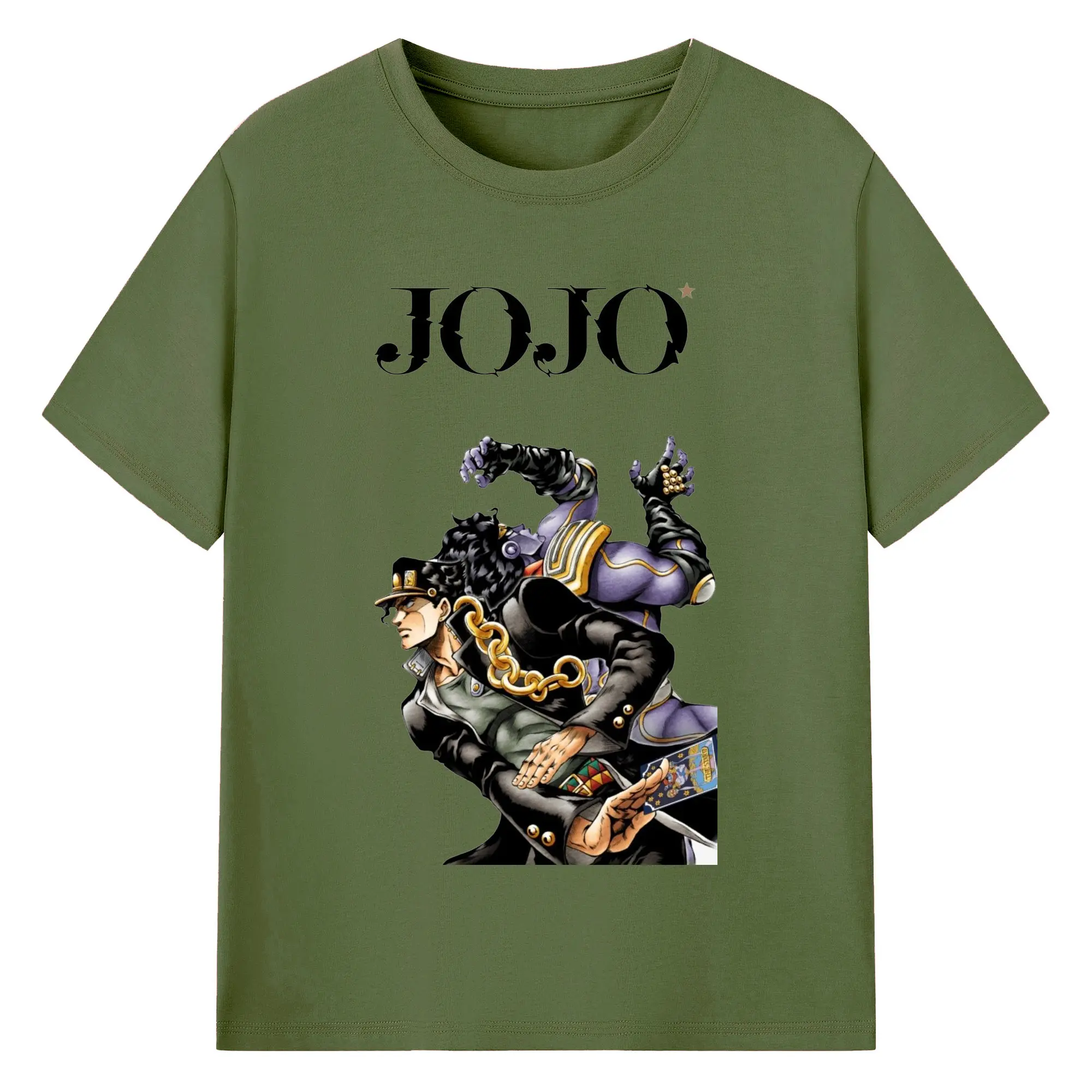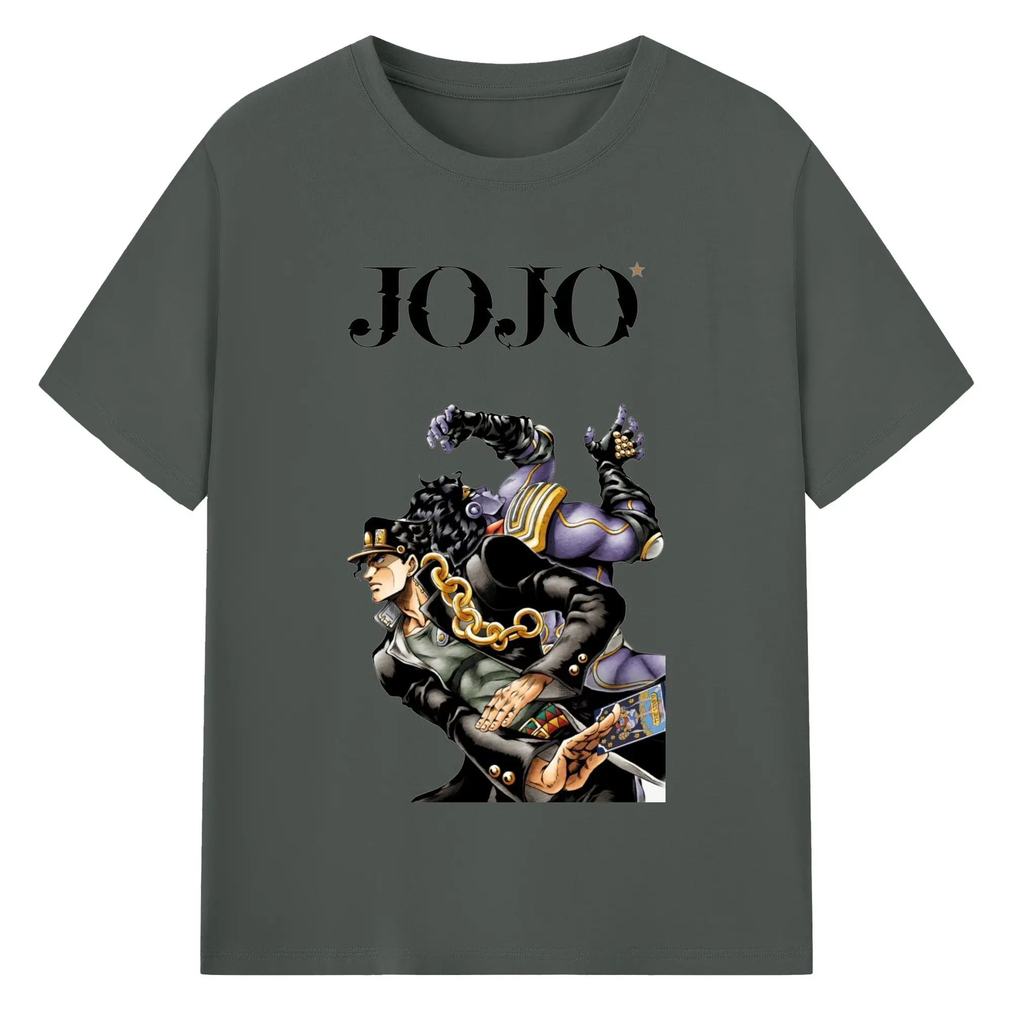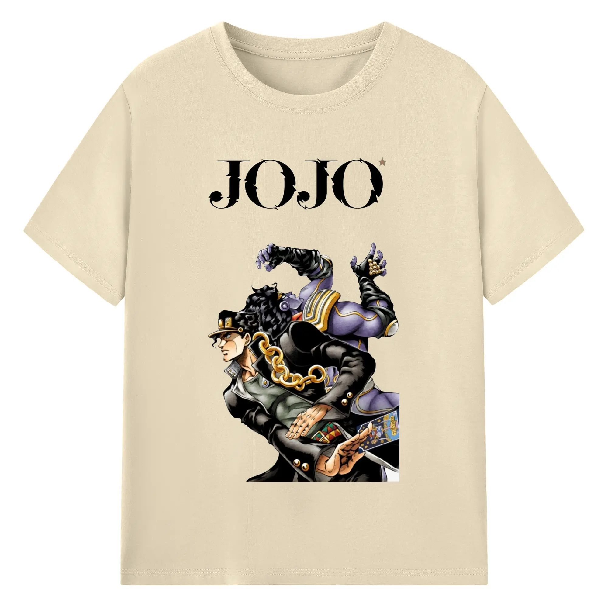 ジョジョの奇妙な冒険 空条承太郎 - 綿100% ヴィンテージ風 半袖Tシャツ ・ フロントプリント ・ 柔らか肌触り ・ 通気性 快適 ・ スポーツ カジュアル 外出用
