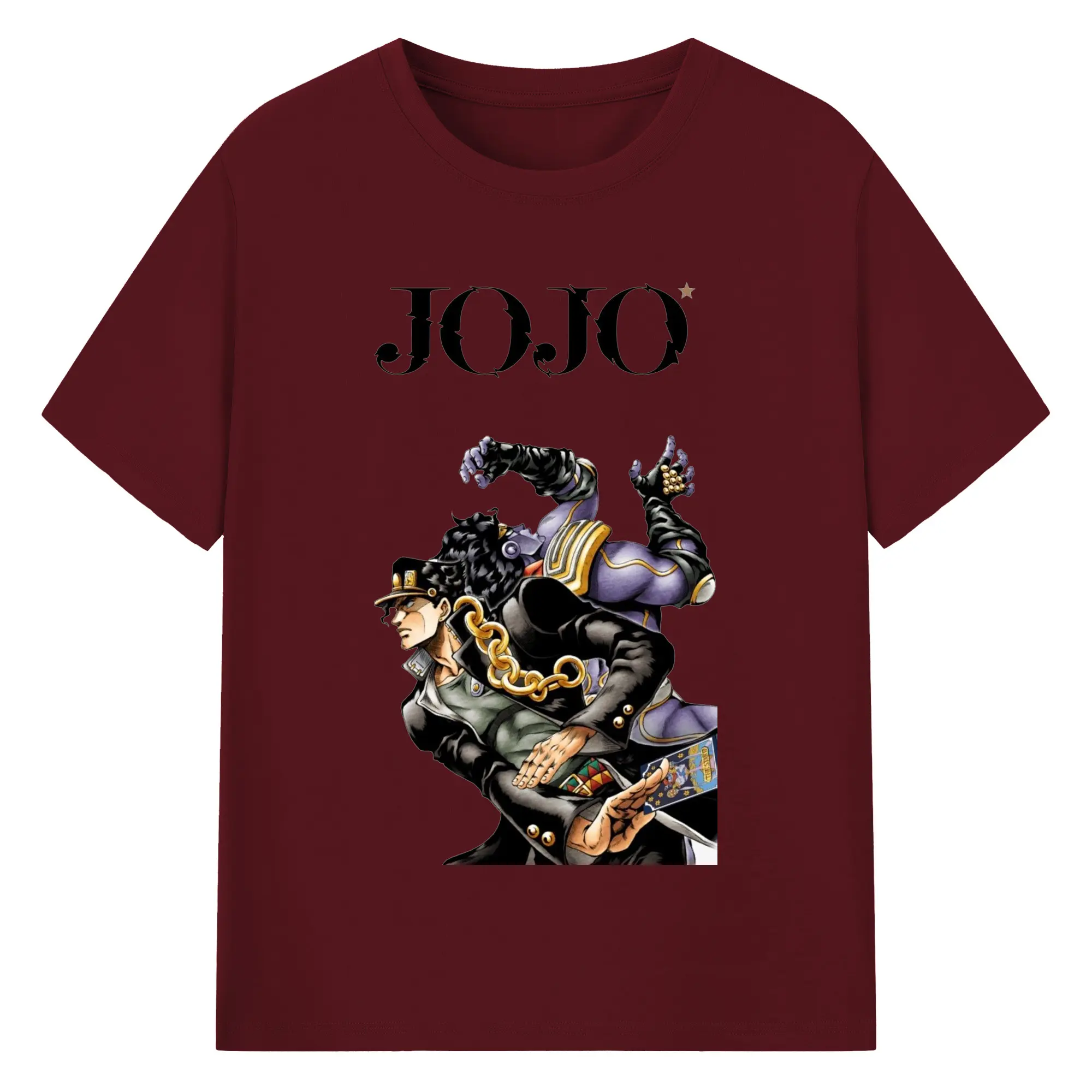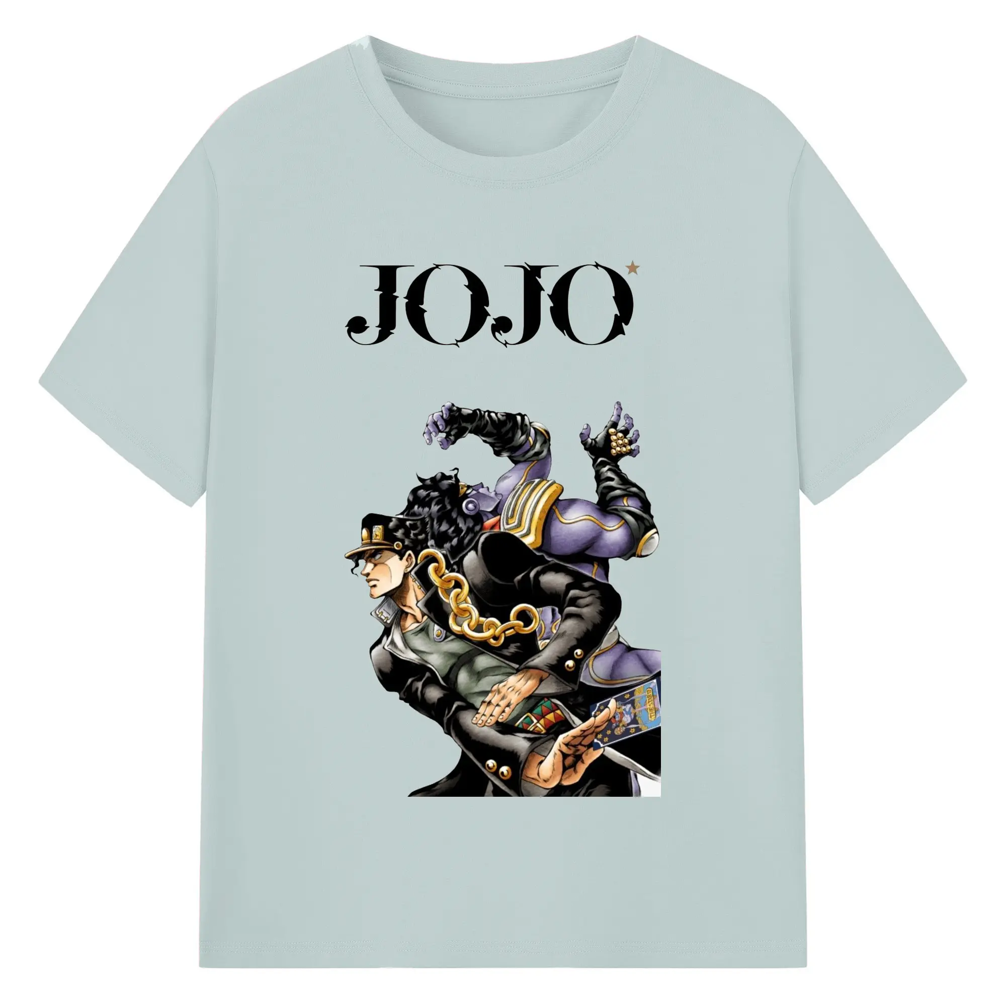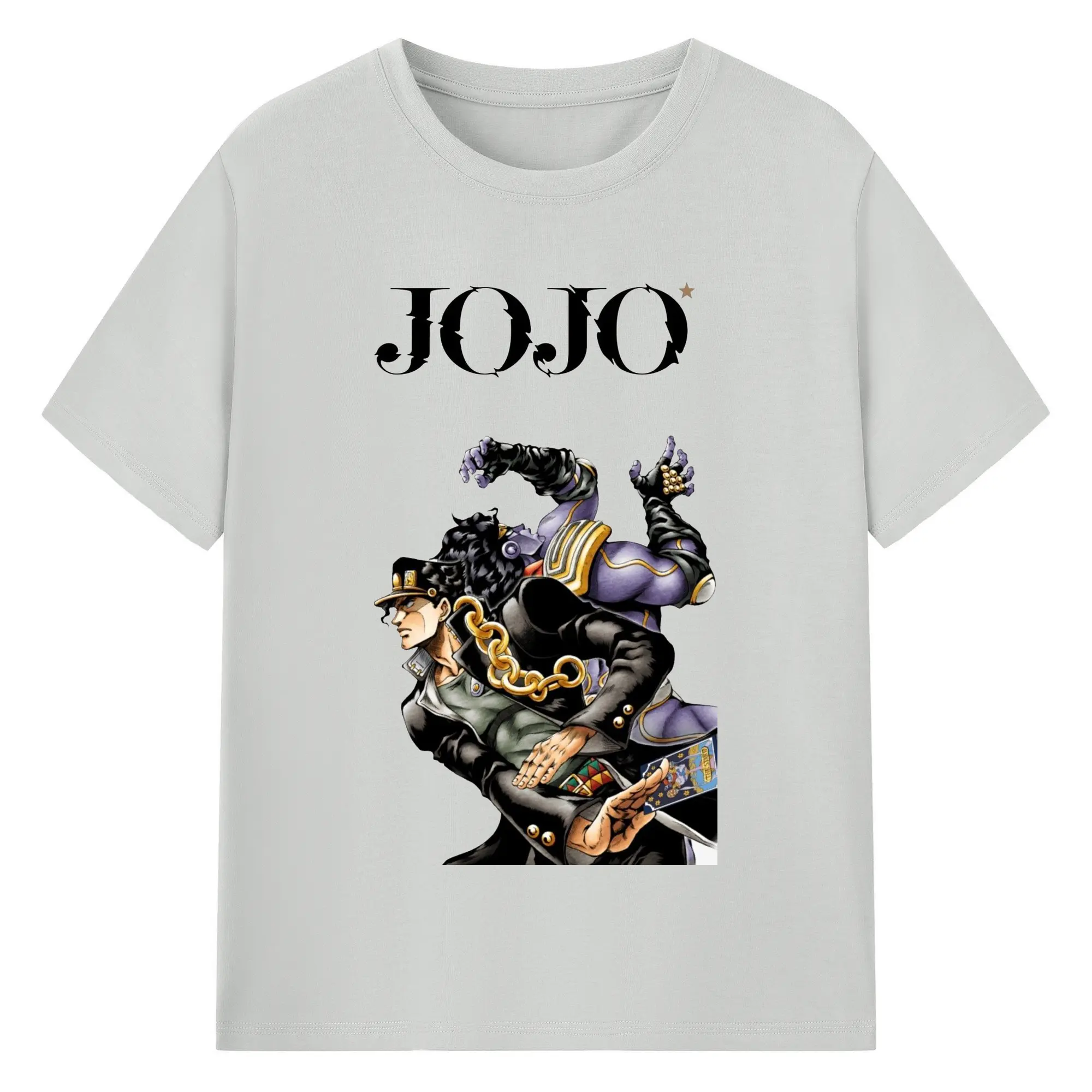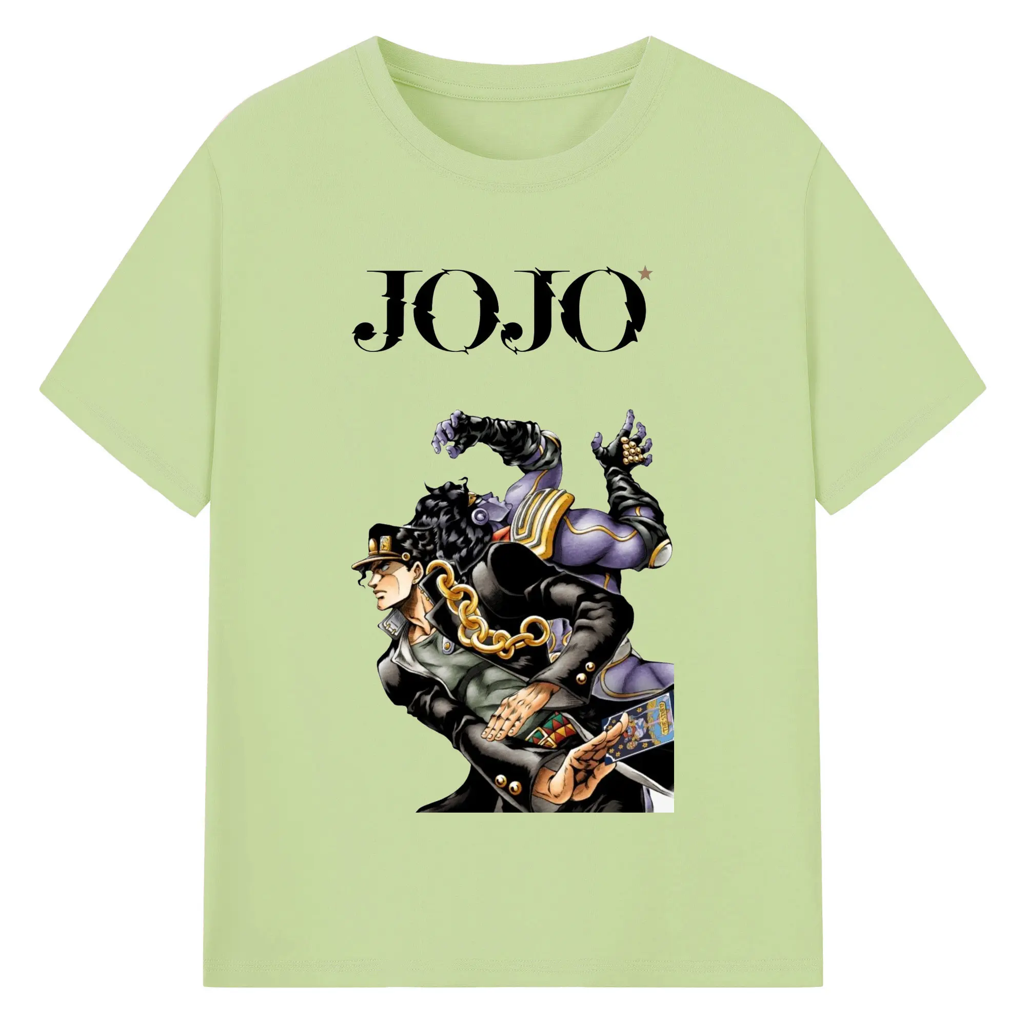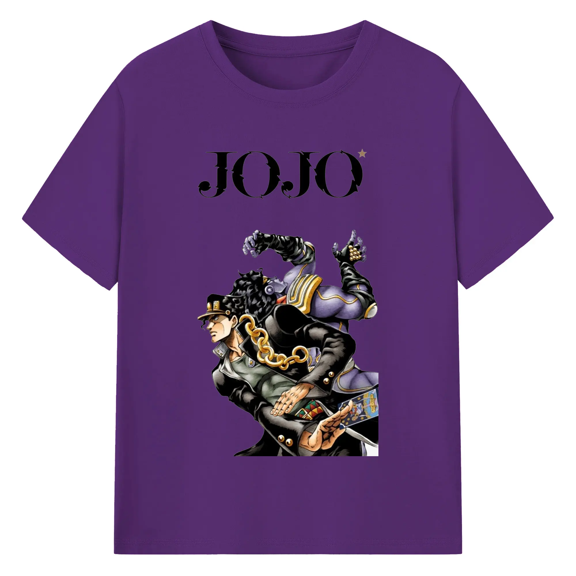 ジョジョの奇妙な冒険 空条承太郎 - 綿100% ヴィンテージ風 半袖Tシャツ ・ フロントプリント ・ 柔らか肌触り ・ 通気性 快適 ・ スポーツ カジュアル 外出用