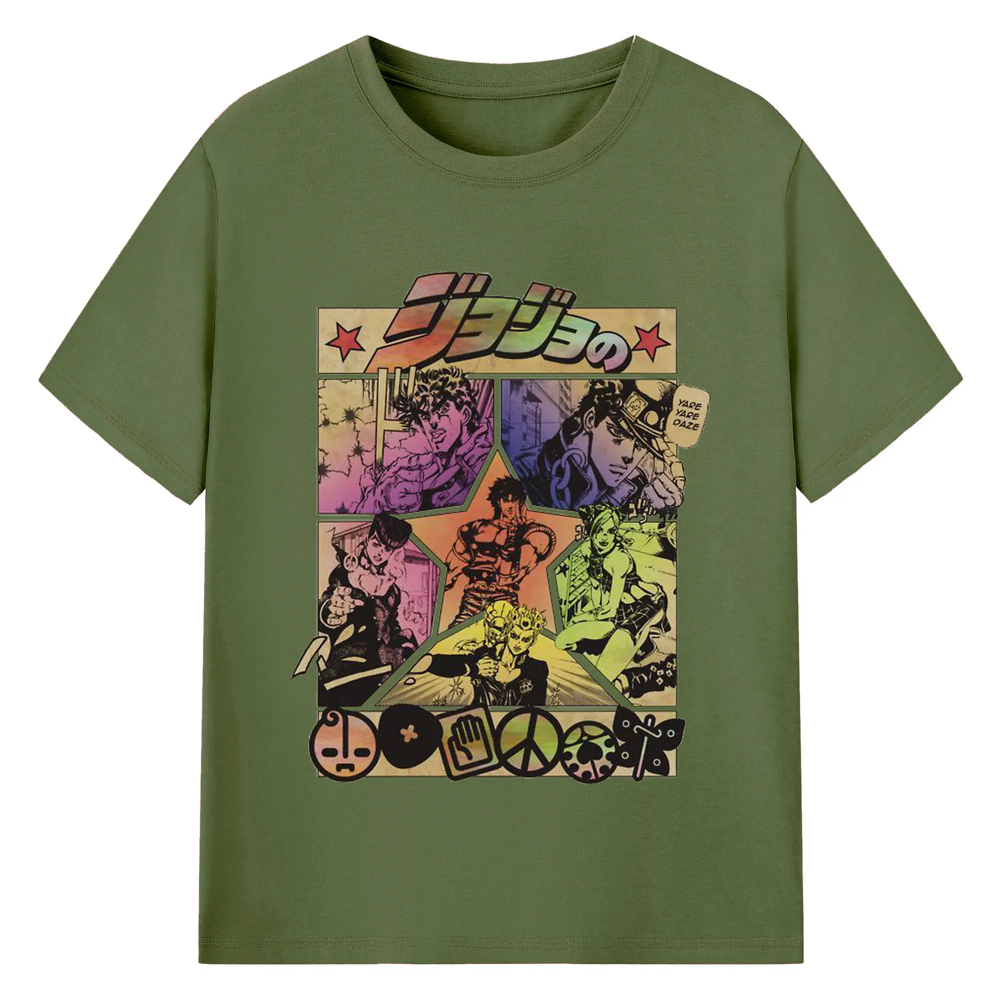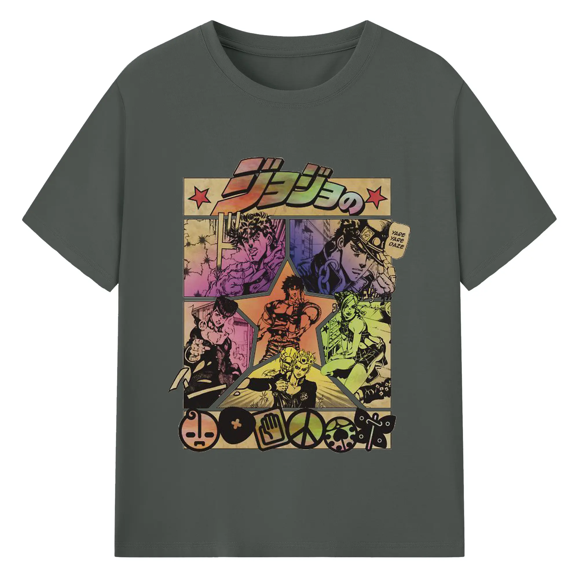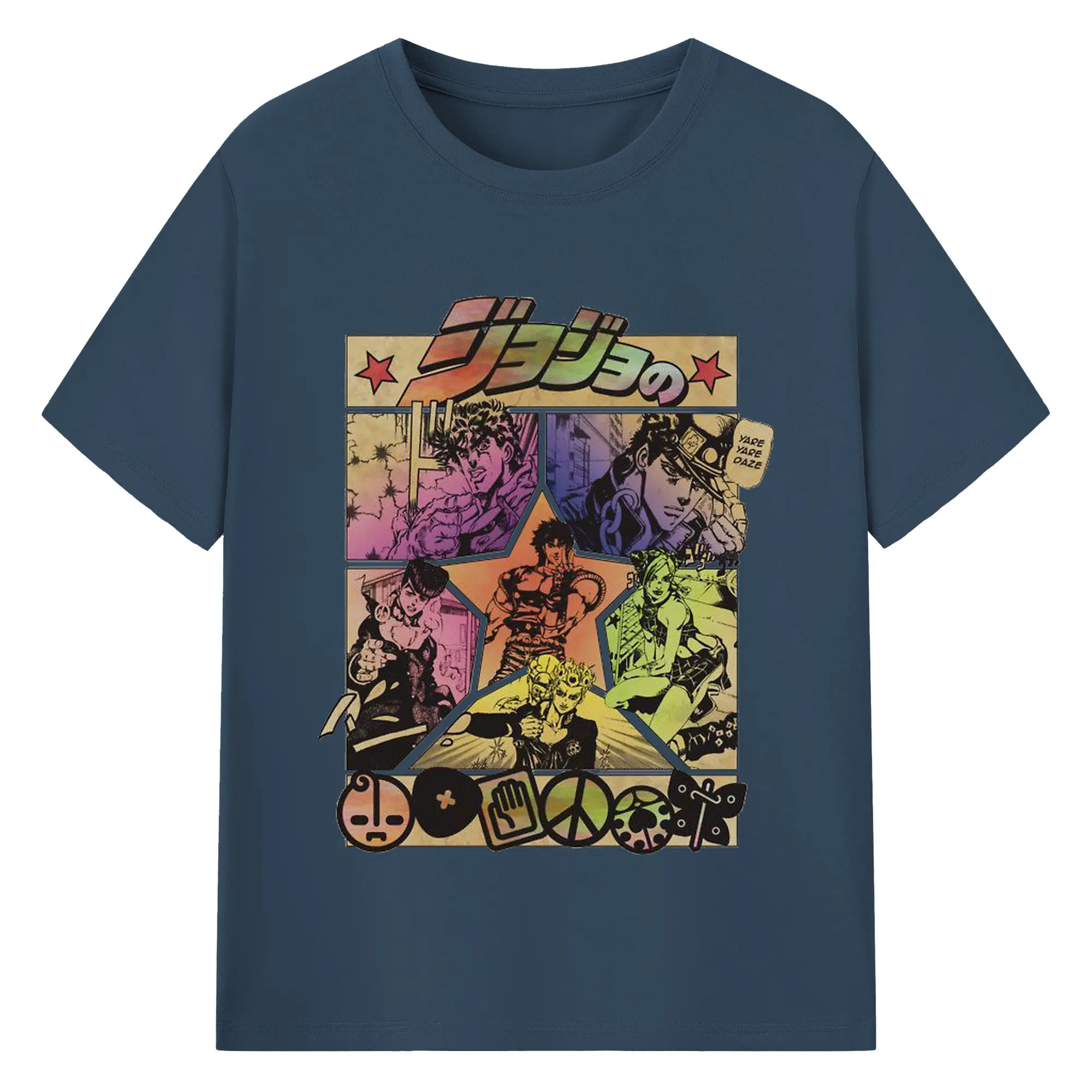 ジョジョの奇妙な冒険 人気キャラクター限定 - 綿100% ヴィンテージ風 半袖Tシャツ ・ フロントプリント ・ 柔らか肌触り ・ 通気性 快適 ・ スポーツ カジュアル 外出用
