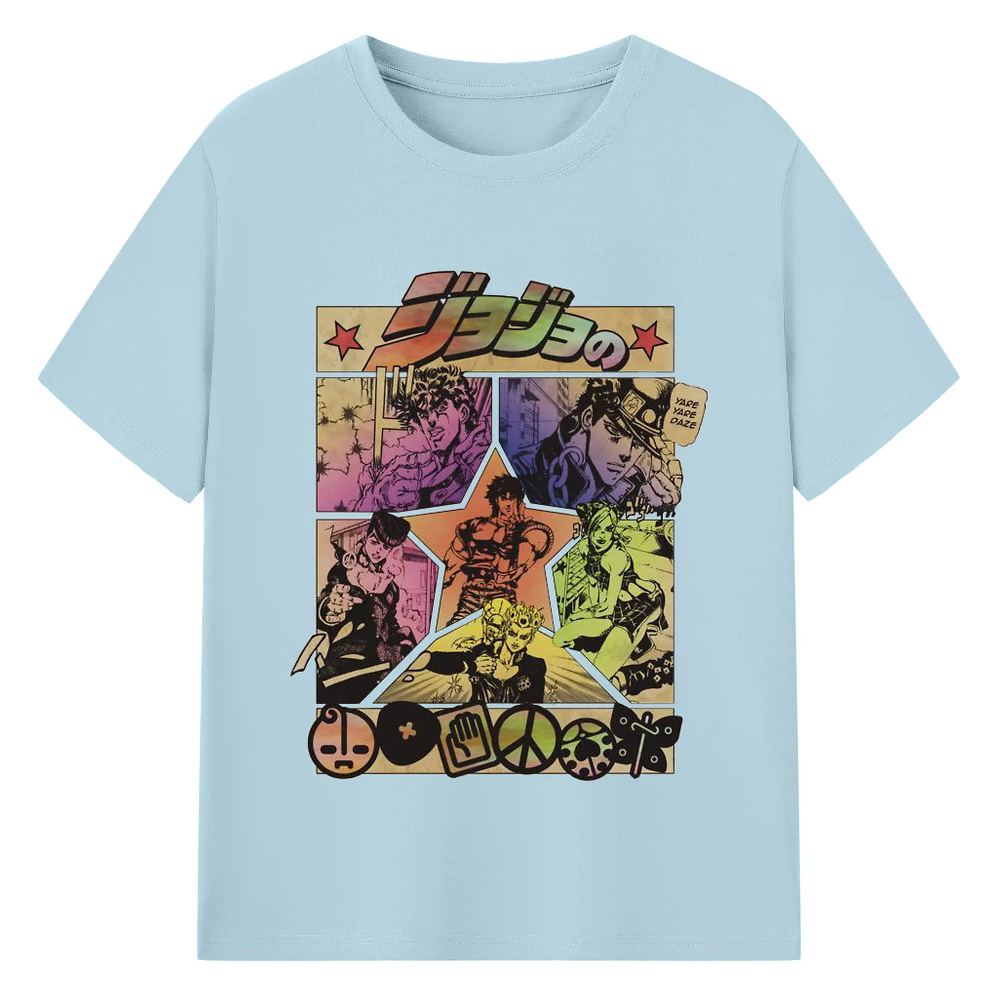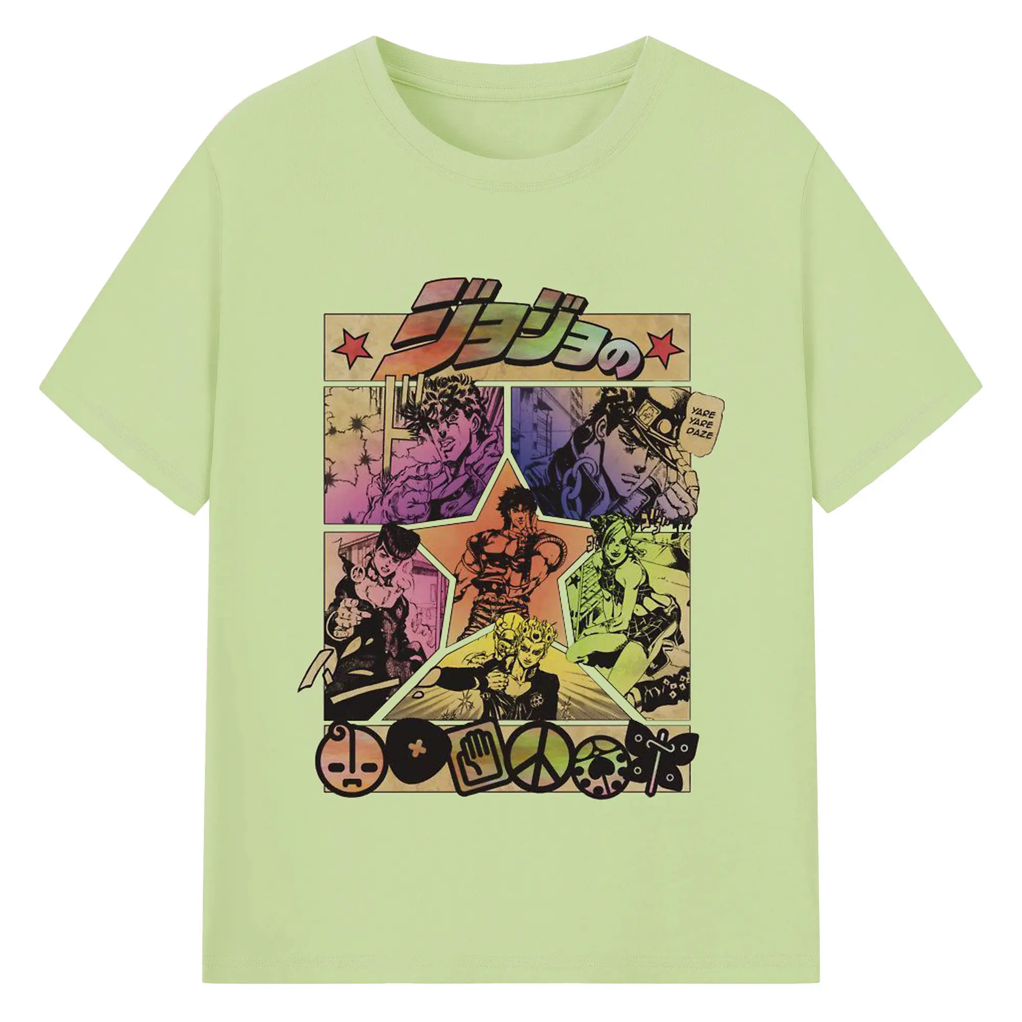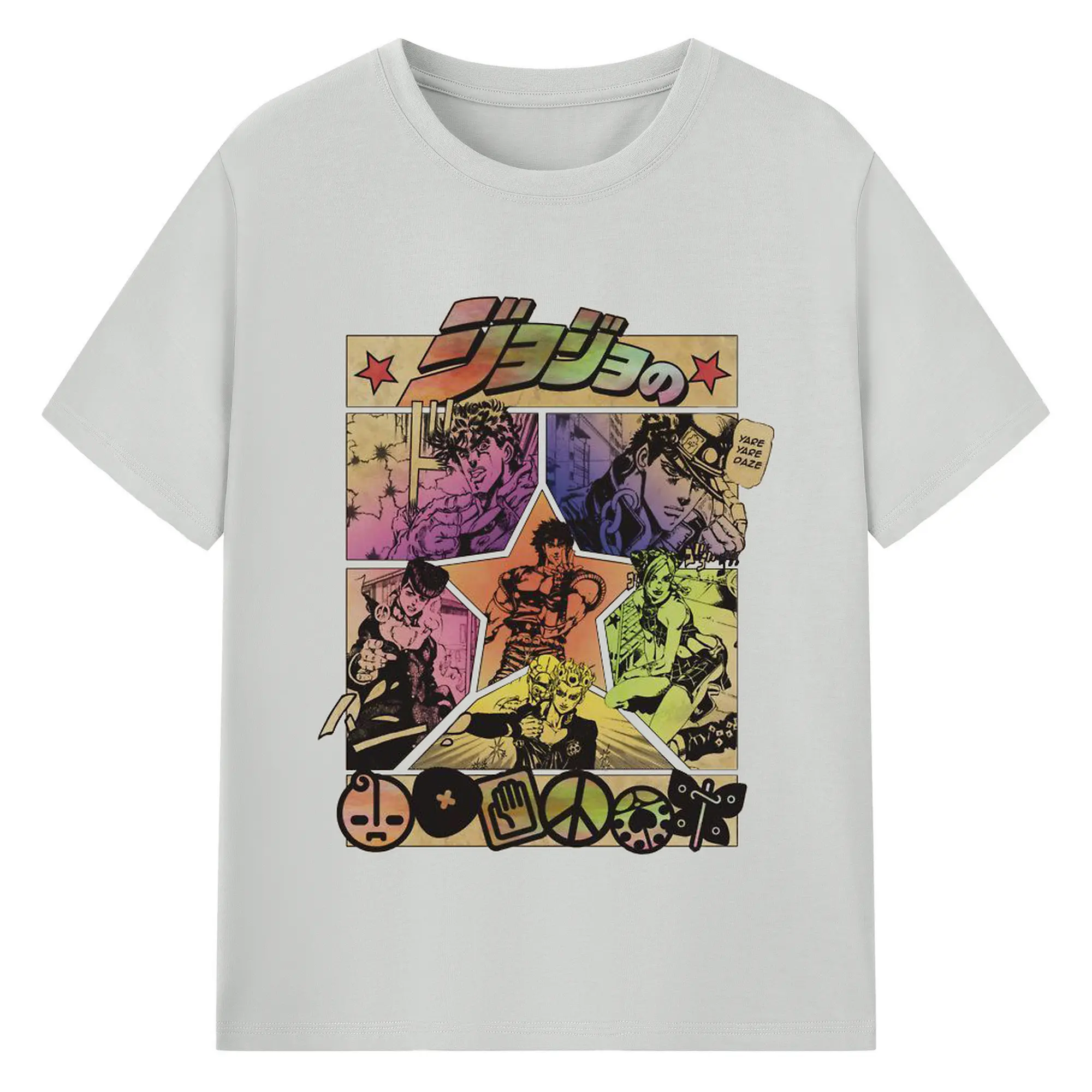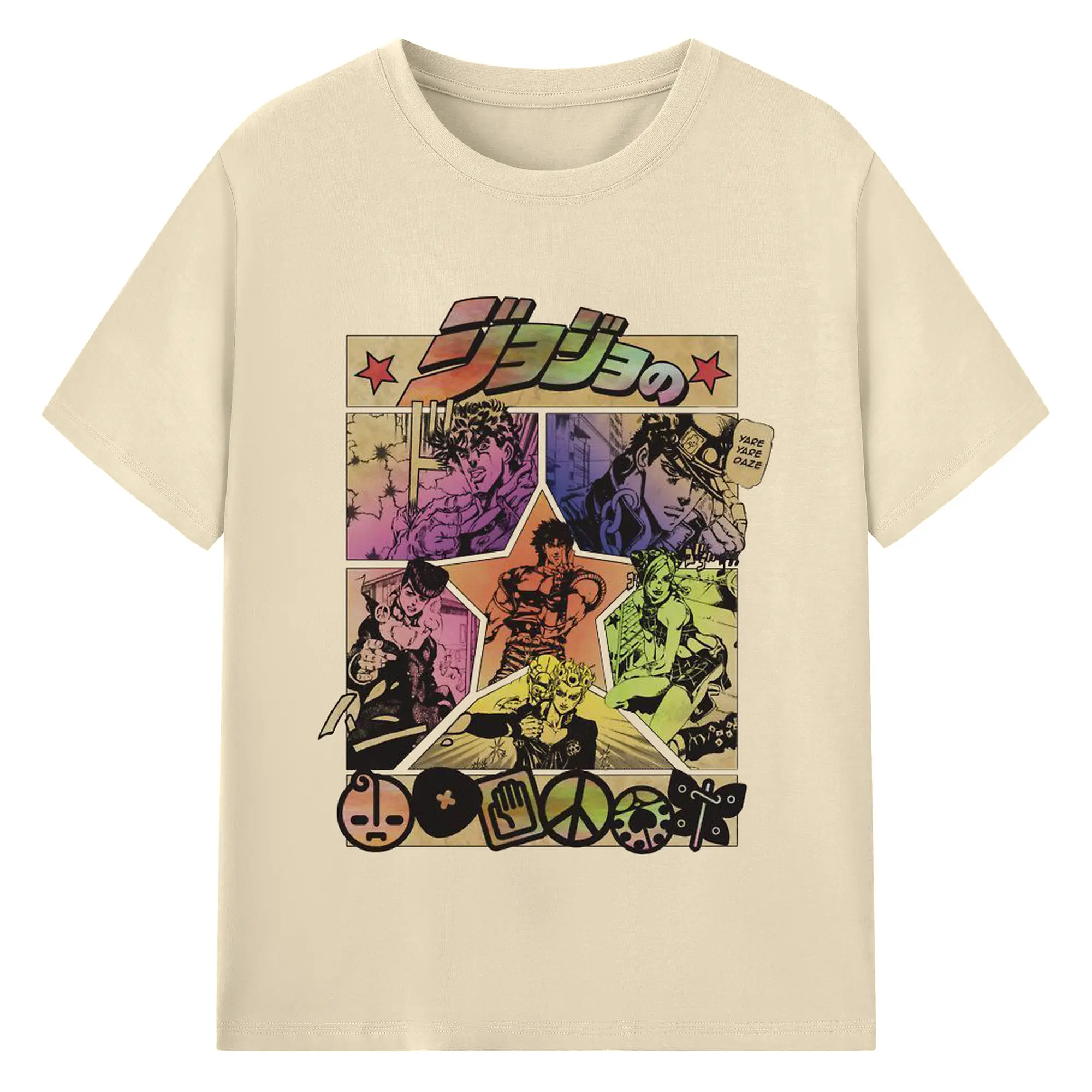 ジョジョの奇妙な冒険 人気キャラクター限定 - 綿100% ヴィンテージ風 半袖Tシャツ ・ フロントプリント ・ 柔らか肌触り ・ 通気性 快適 ・ スポーツ カジュアル 外出用