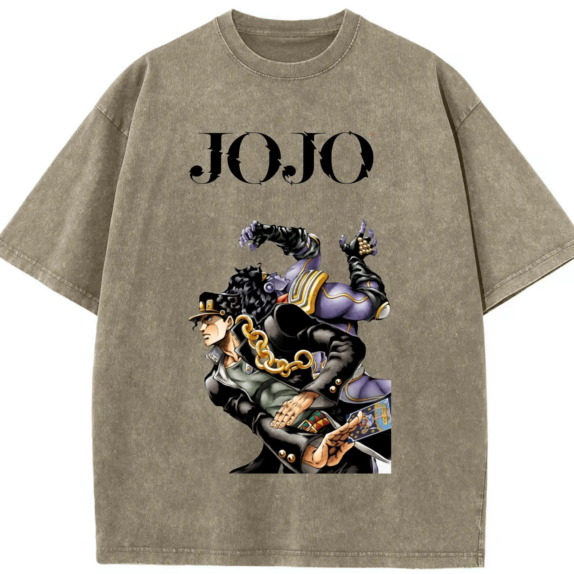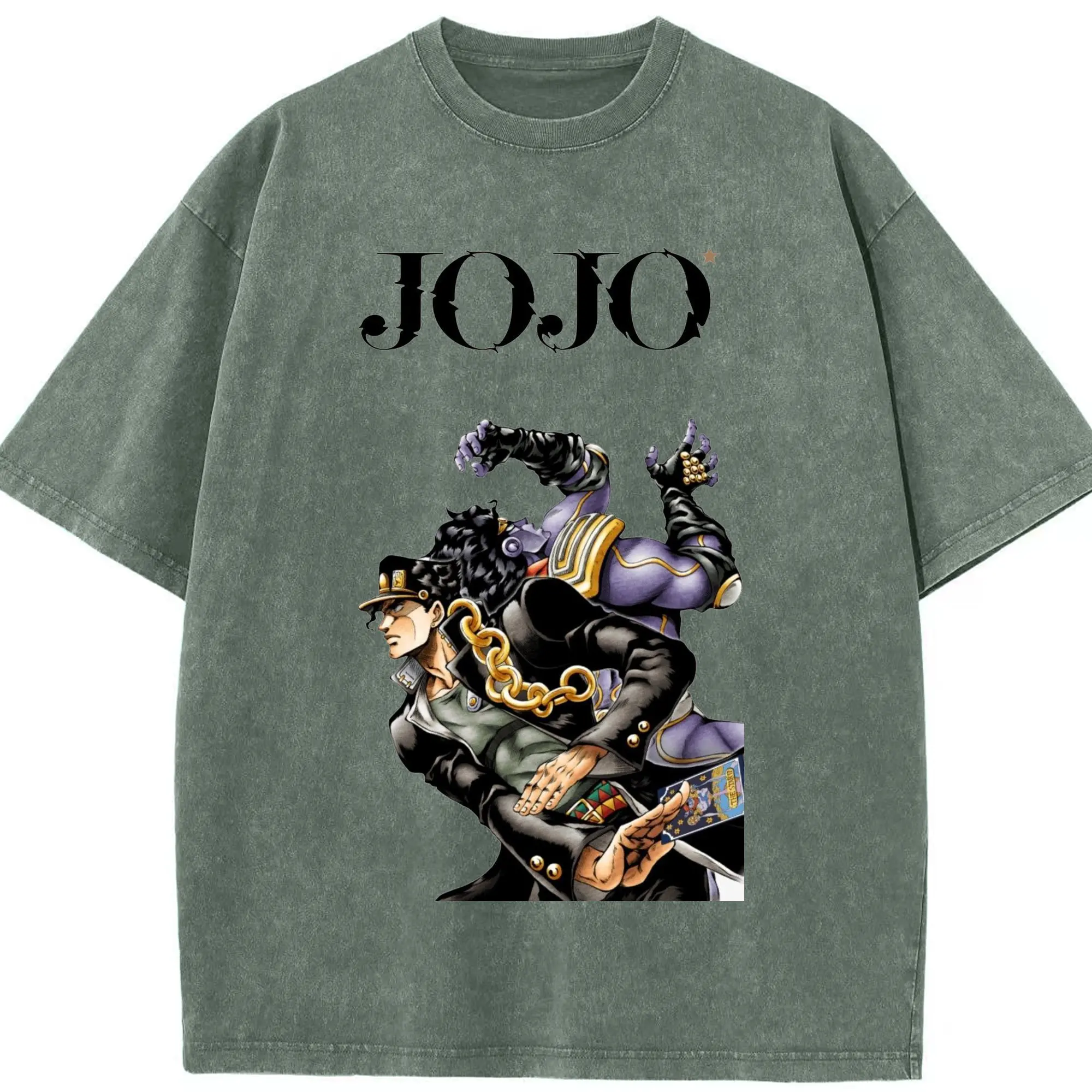 ジョジョの奇妙な冒険 空条承太郎 - 綿100% 半袖Tシャツ ・ フロントプリント ・ 快適 通気性 ・ 日常使い 散歩 スポーツ用