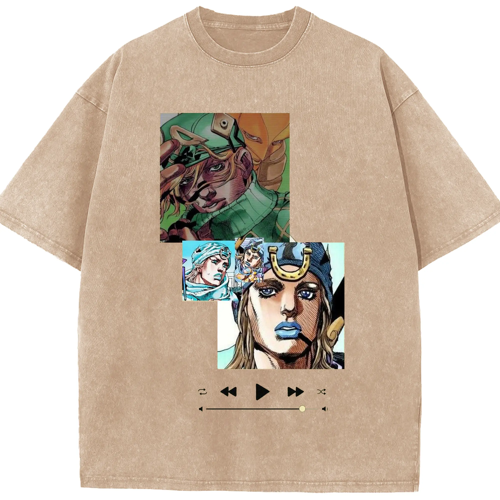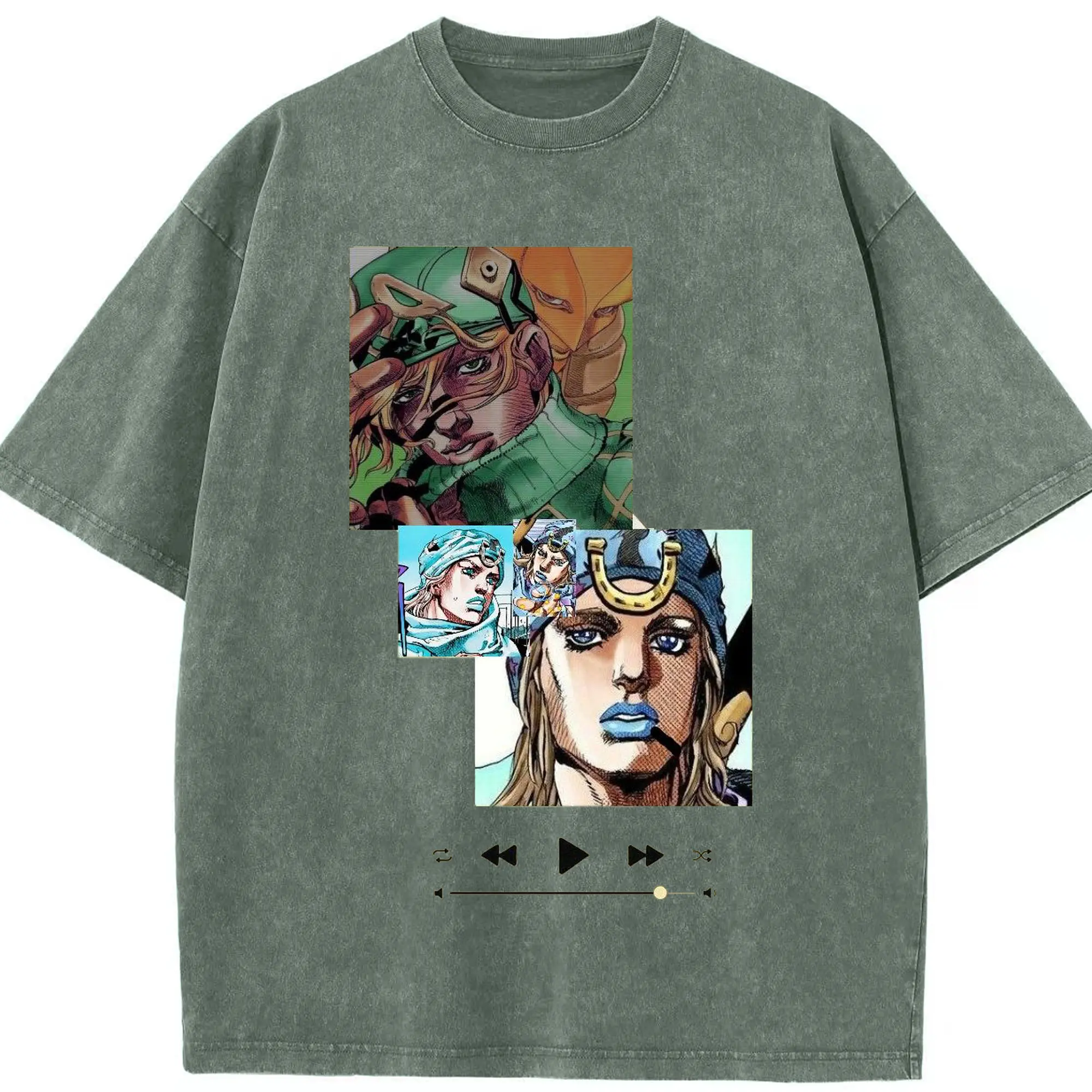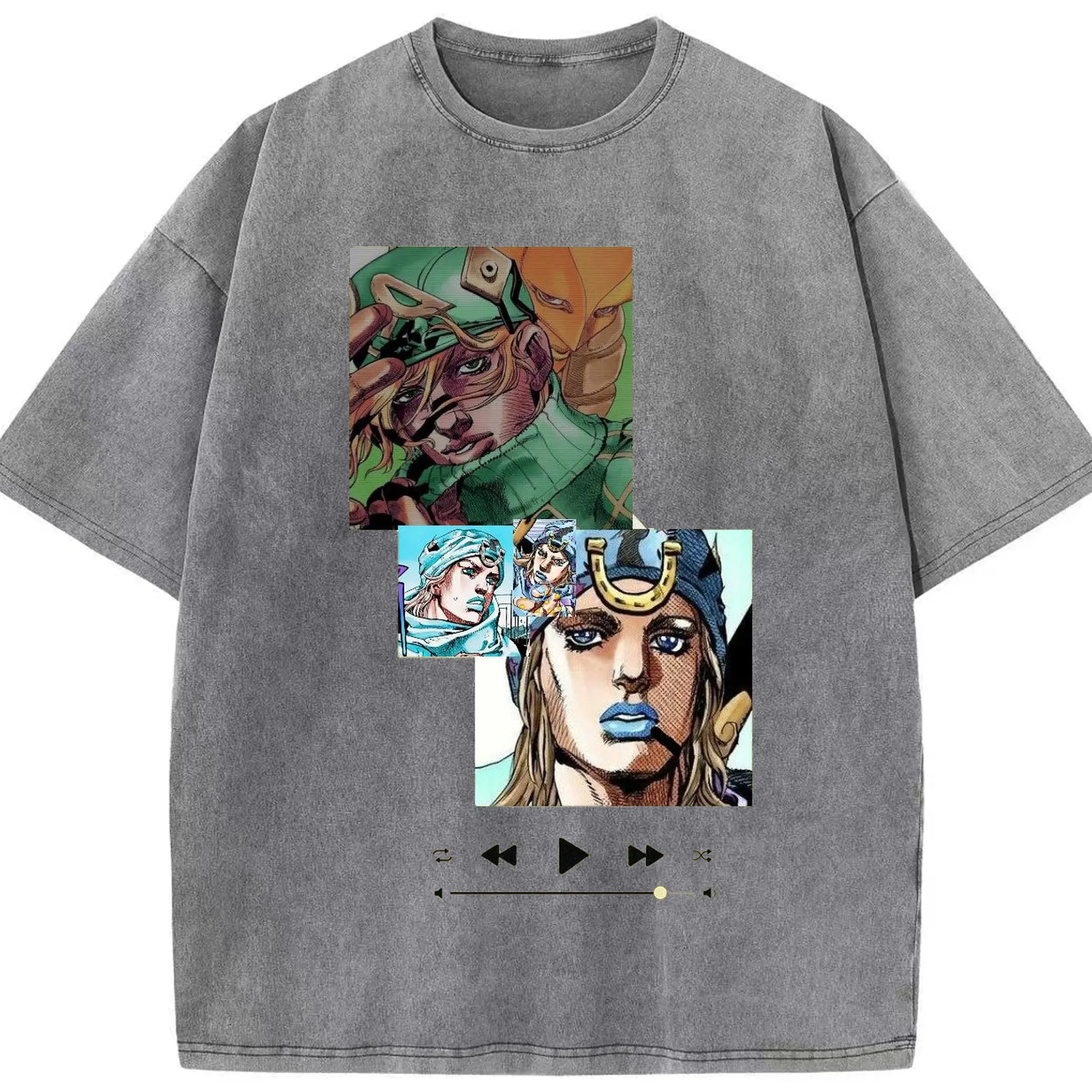 ジョジョの奇妙な冒険 音楽テーマ描き下ろし - 綿100% 半袖Tシャツ ・ フロントプリント ・ 快適 通気性 ・ 日常使い 散歩 スポーツ用