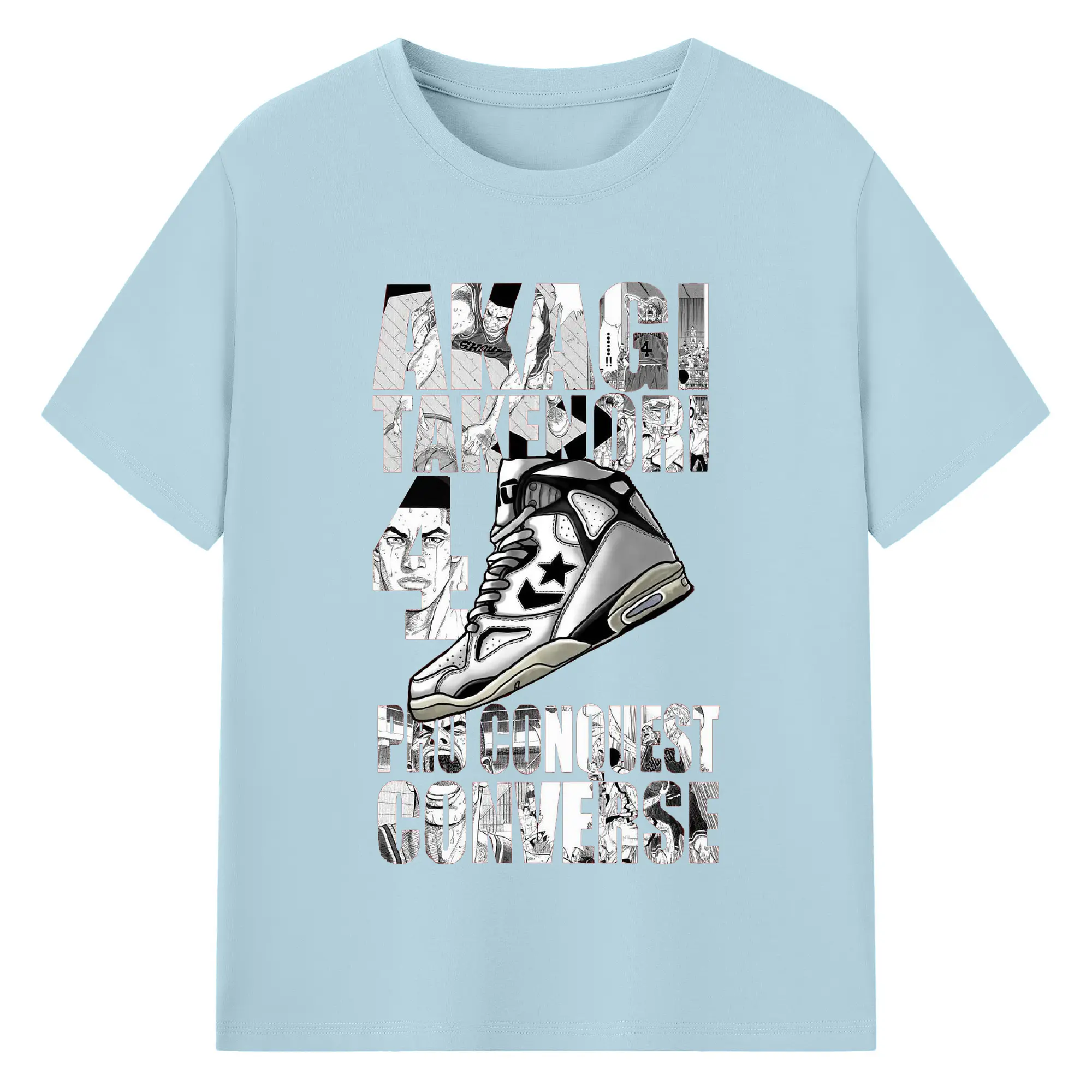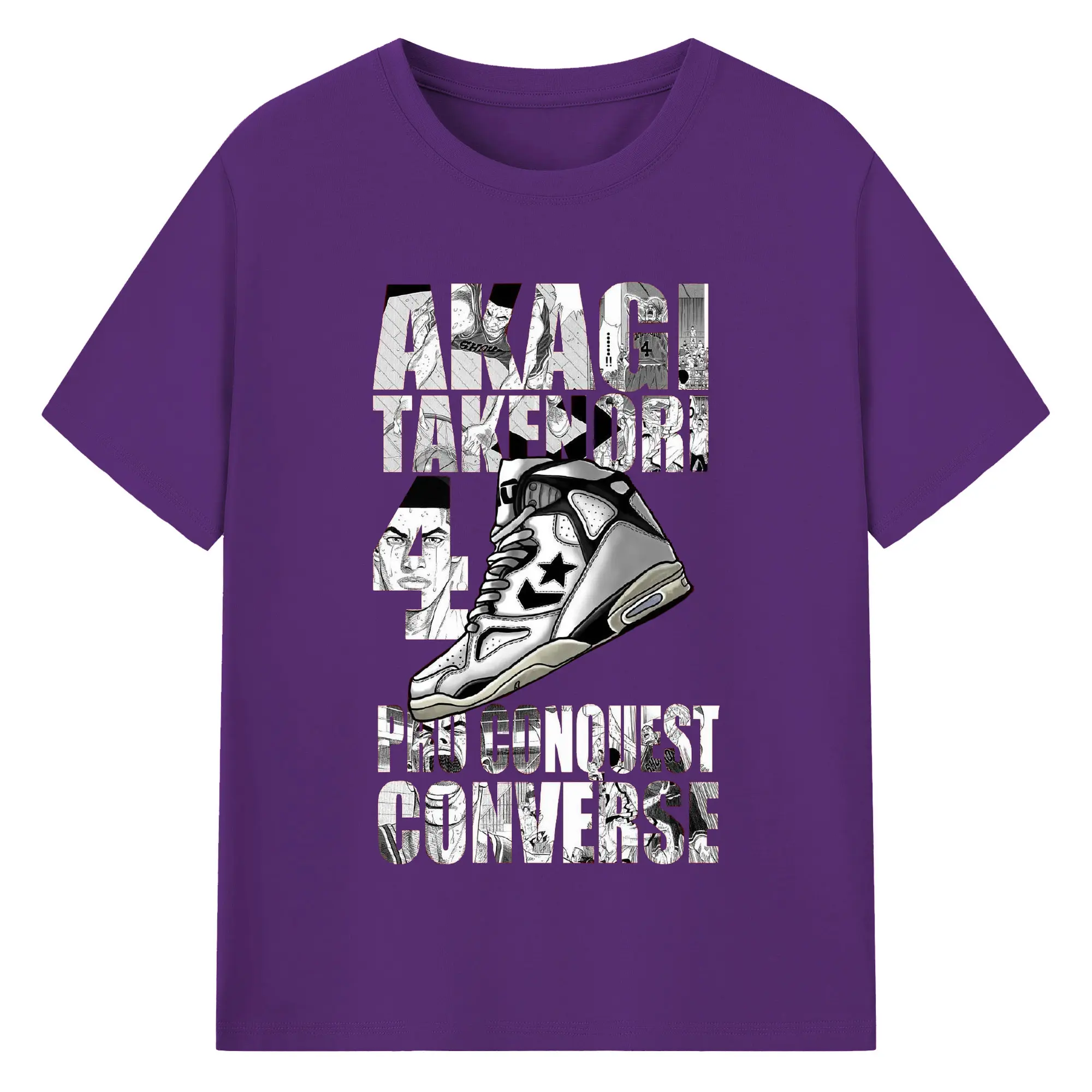 スラムダンクスニーカーコラボ限定 - 綿100% 半袖Tシャツ ・ フロントプリント ・ 快適 通気性 ・ 日常使い 散歩 スポーツ用