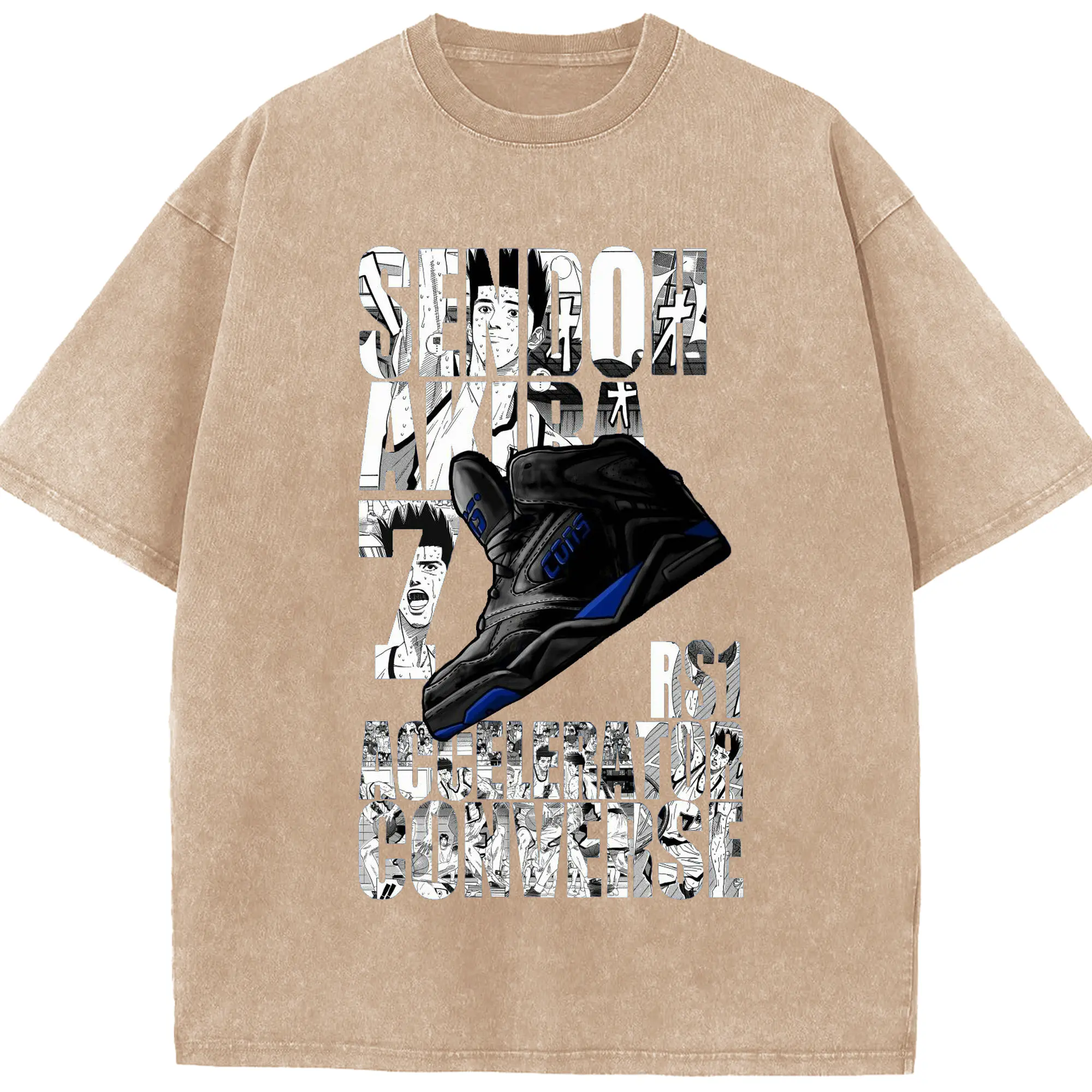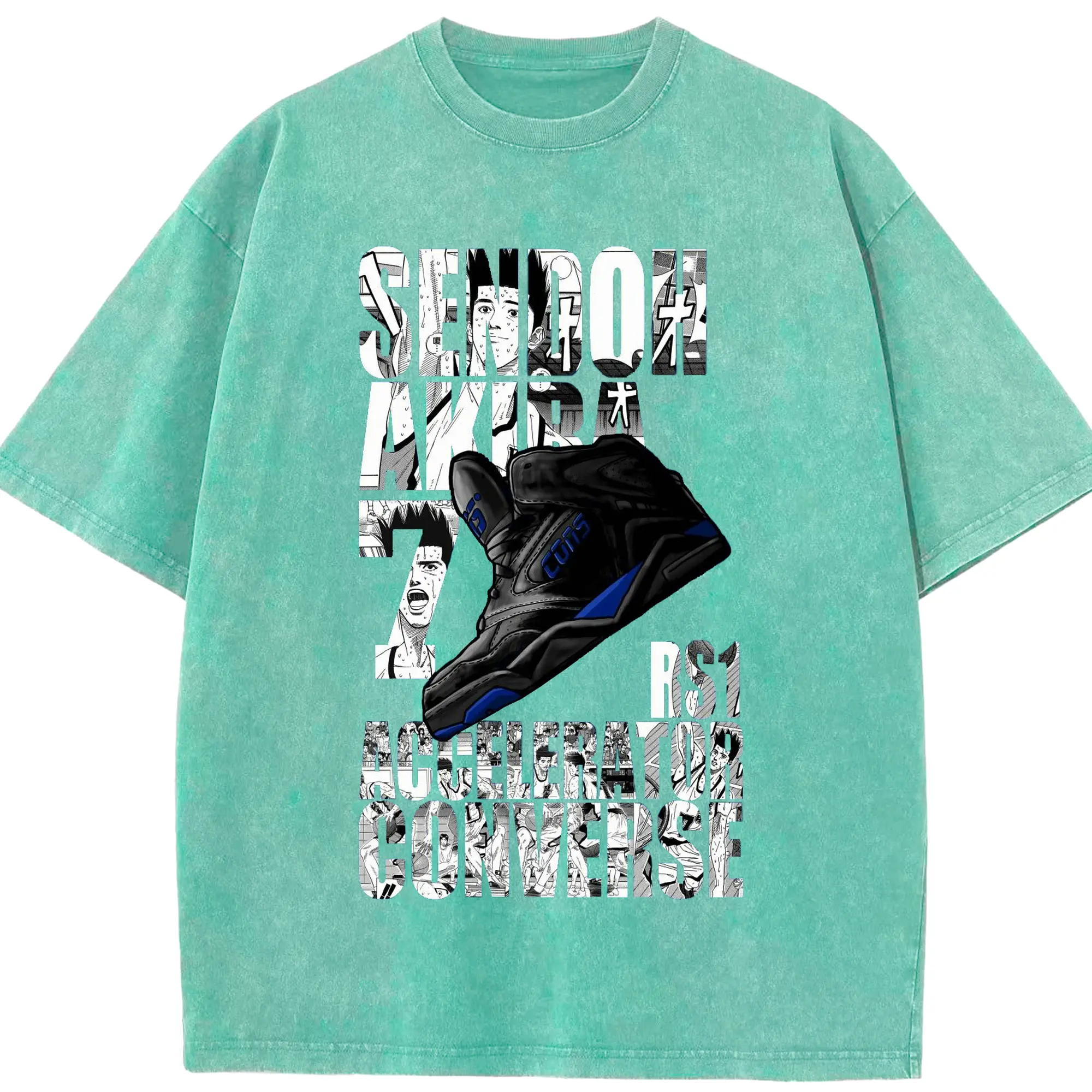 スラムダンクニーカーコラボ限定 - 綿100% ヴィンテージ風 半袖Tシャツ ・ フロントプリント ・ 柔らか肌触り ・ 通気性 快適 ・ スポーツ カジュアル 外出用