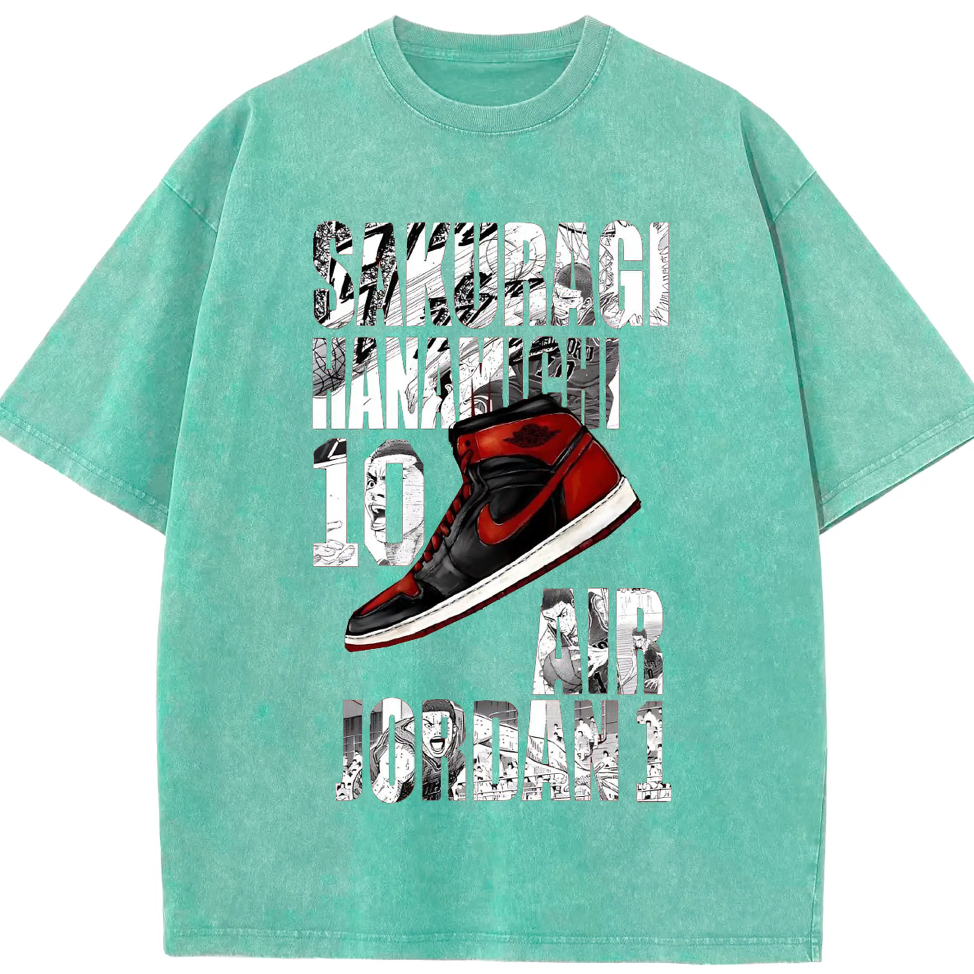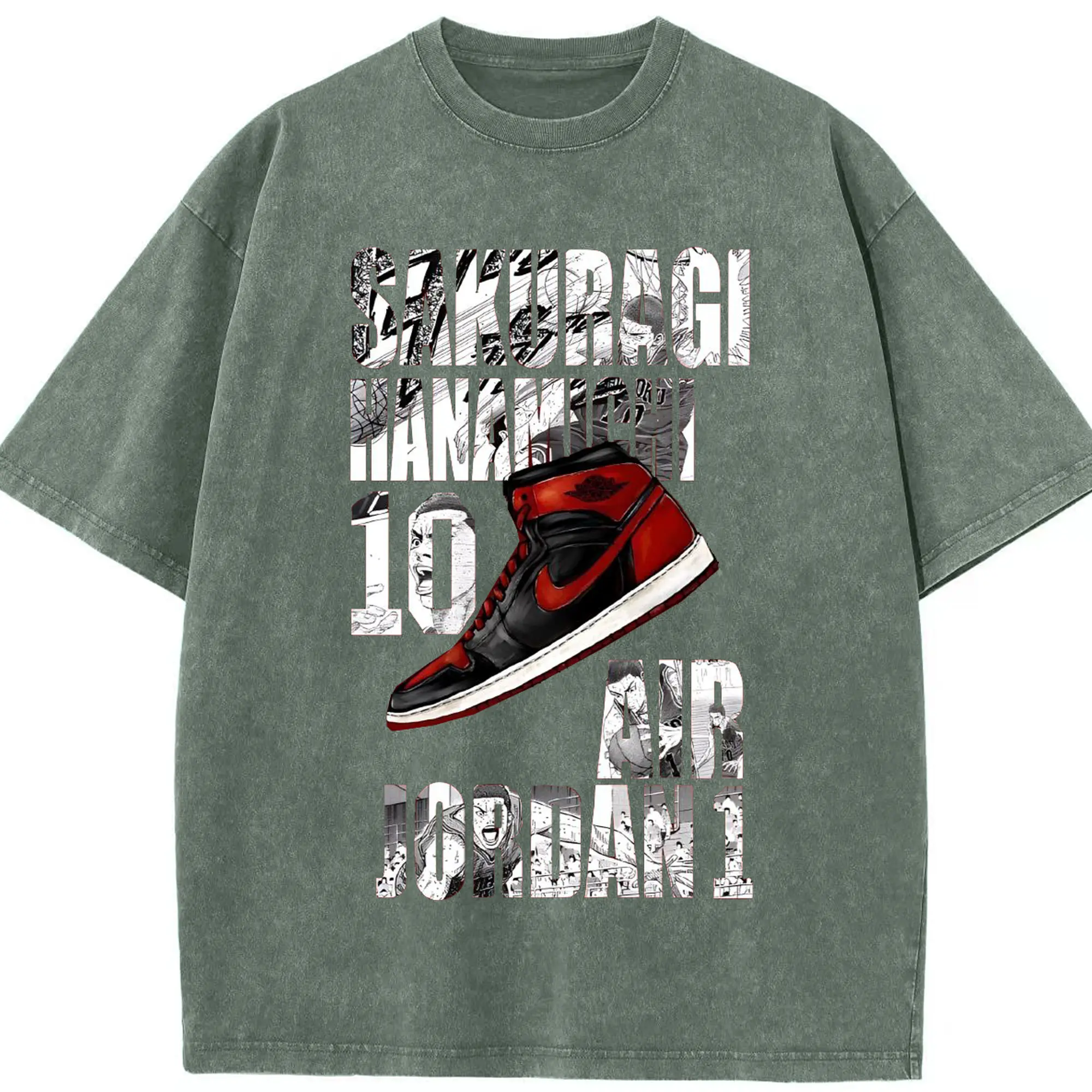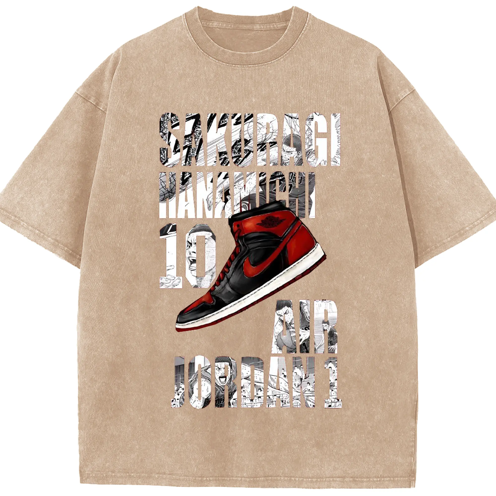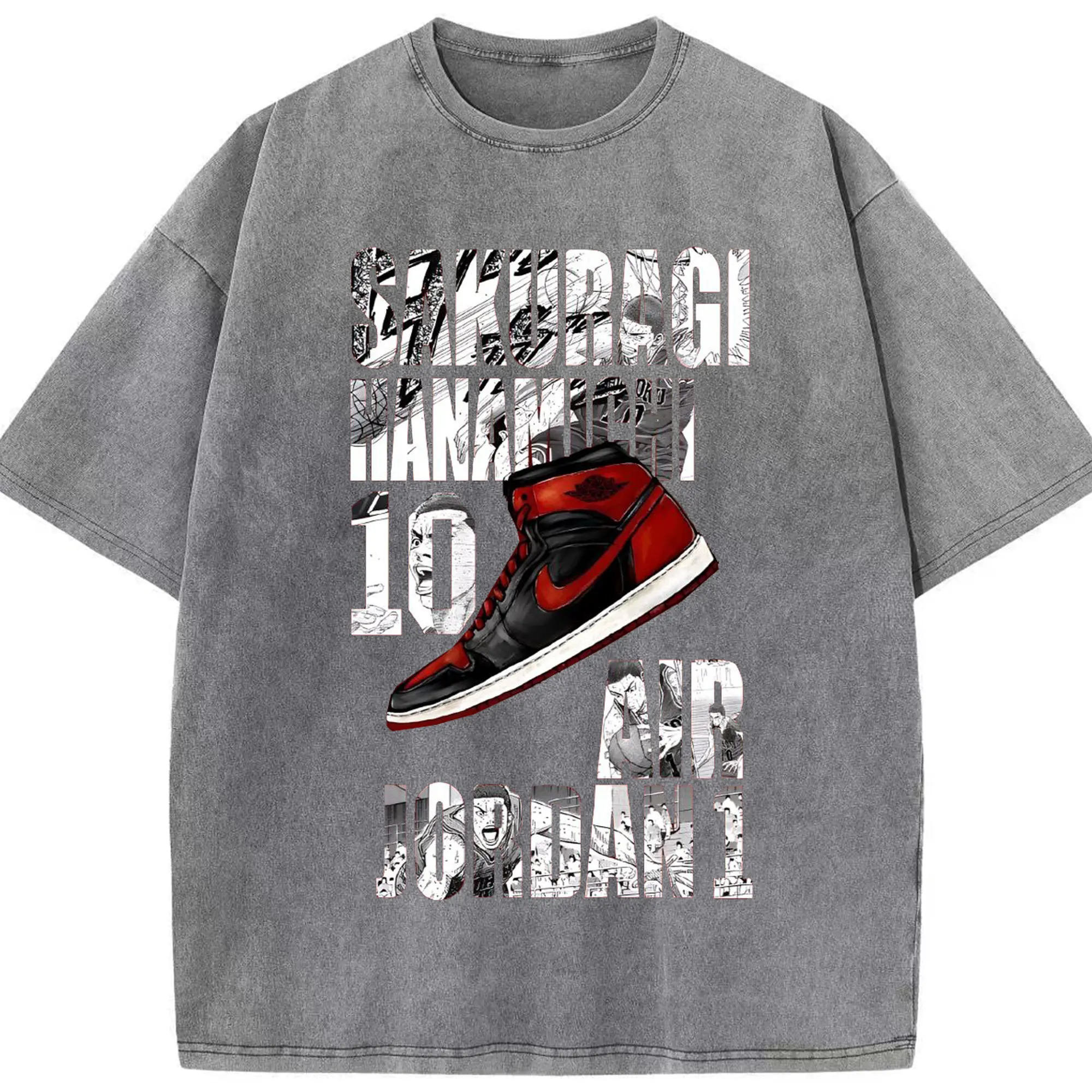 スラムダンクニーカーコラボ限定 - 綿100% ヴィンテージ風 半袖Tシャツ ・ フロントプリント ・ 柔らか肌触り ・ 通気性 快適 ・ スポーツ カジュアル 外出用