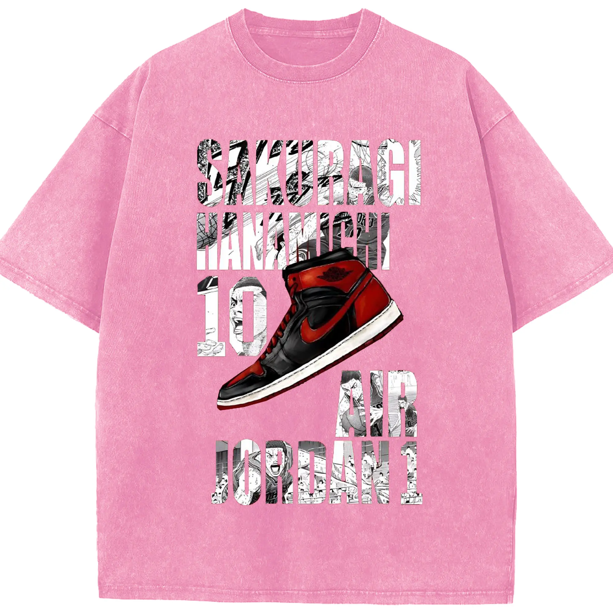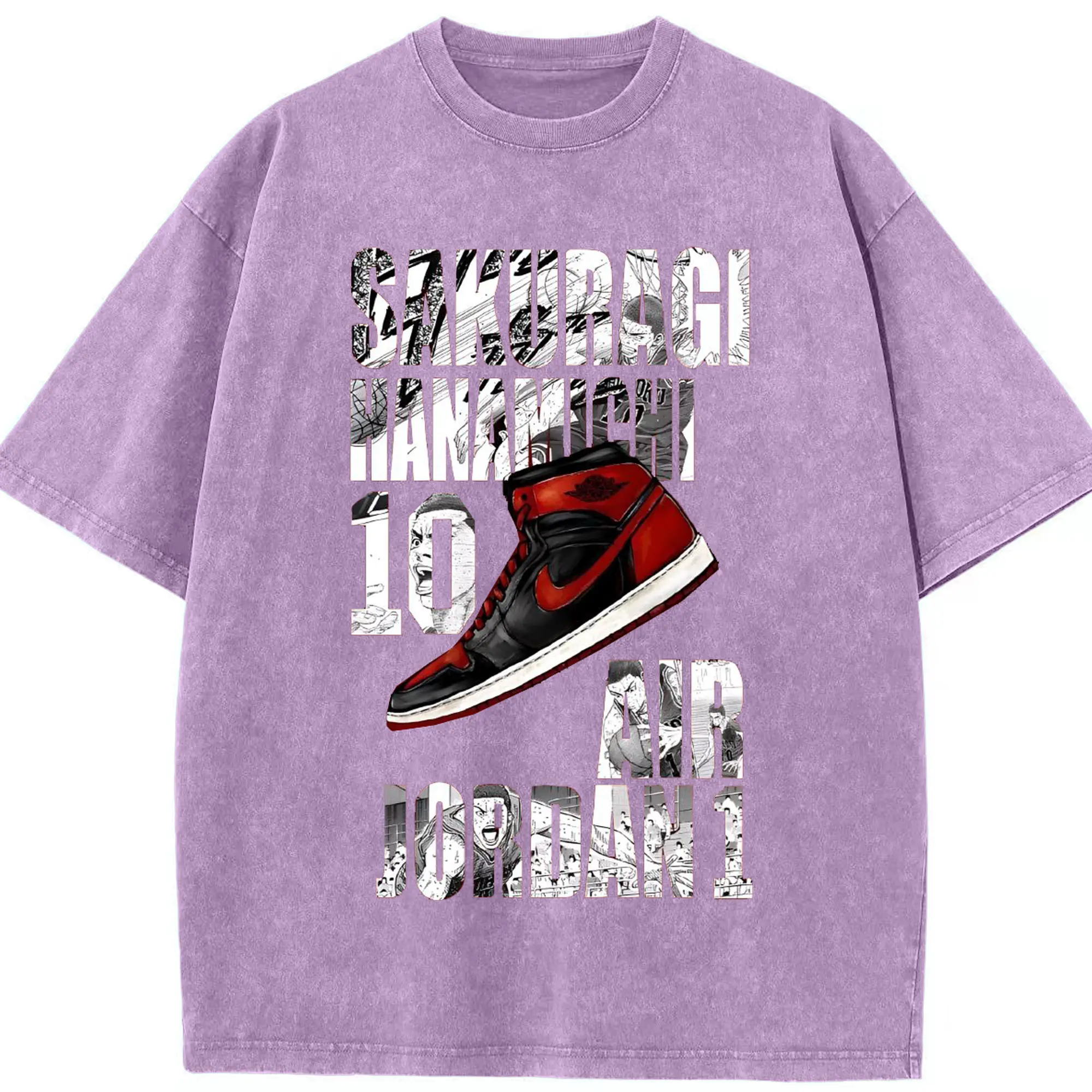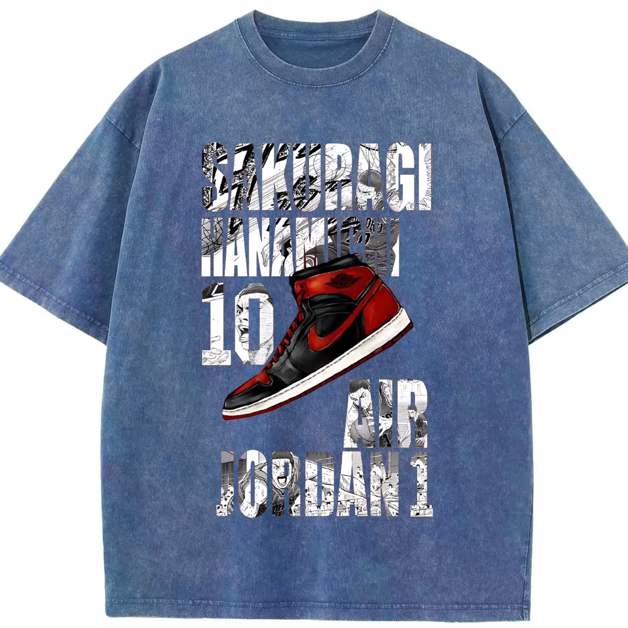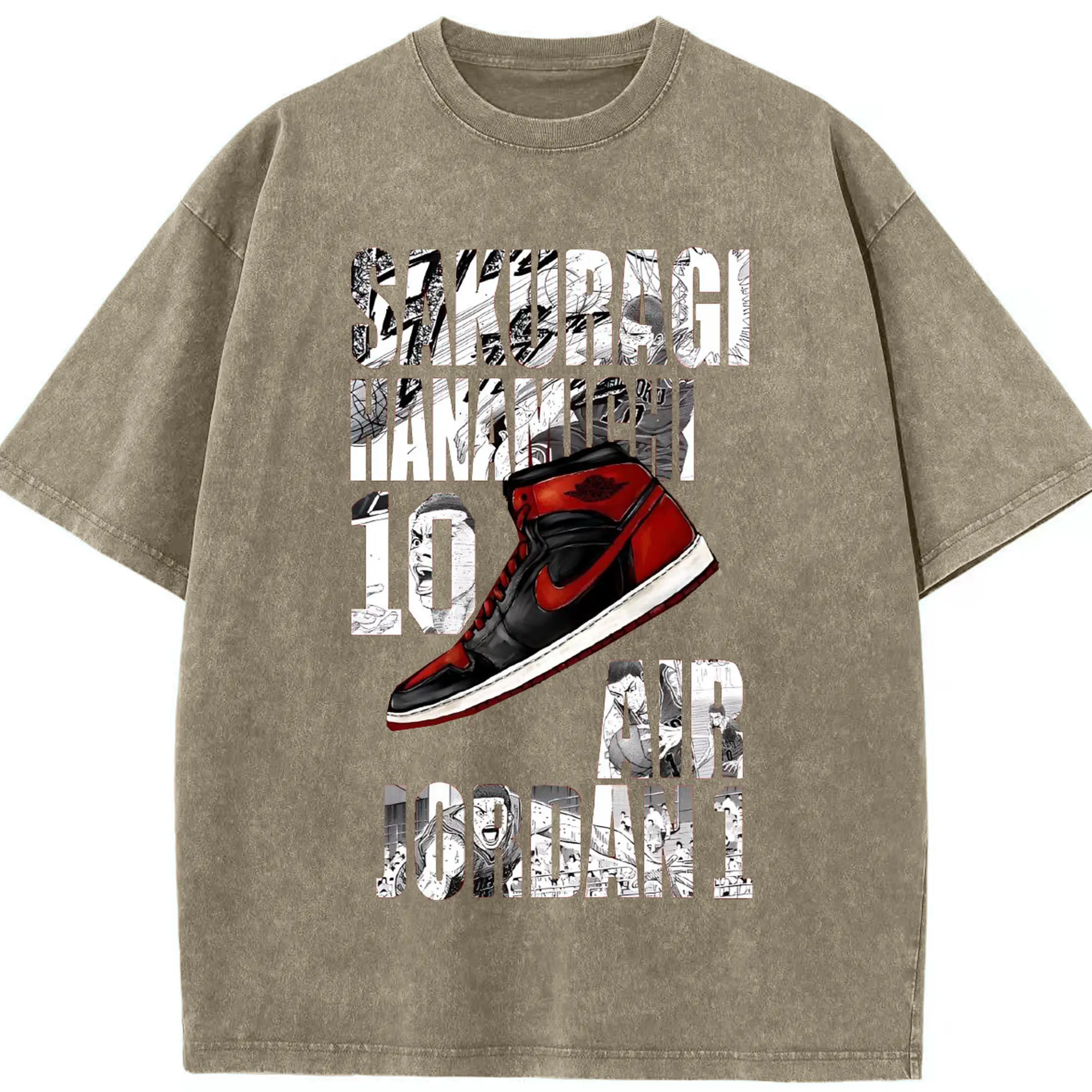 スラムダンクニーカーコラボ限定 - 綿100% ヴィンテージ風 半袖Tシャツ ・ フロントプリント ・ 柔らか肌触り ・ 通気性 快適 ・ スポーツ カジュアル 外出用