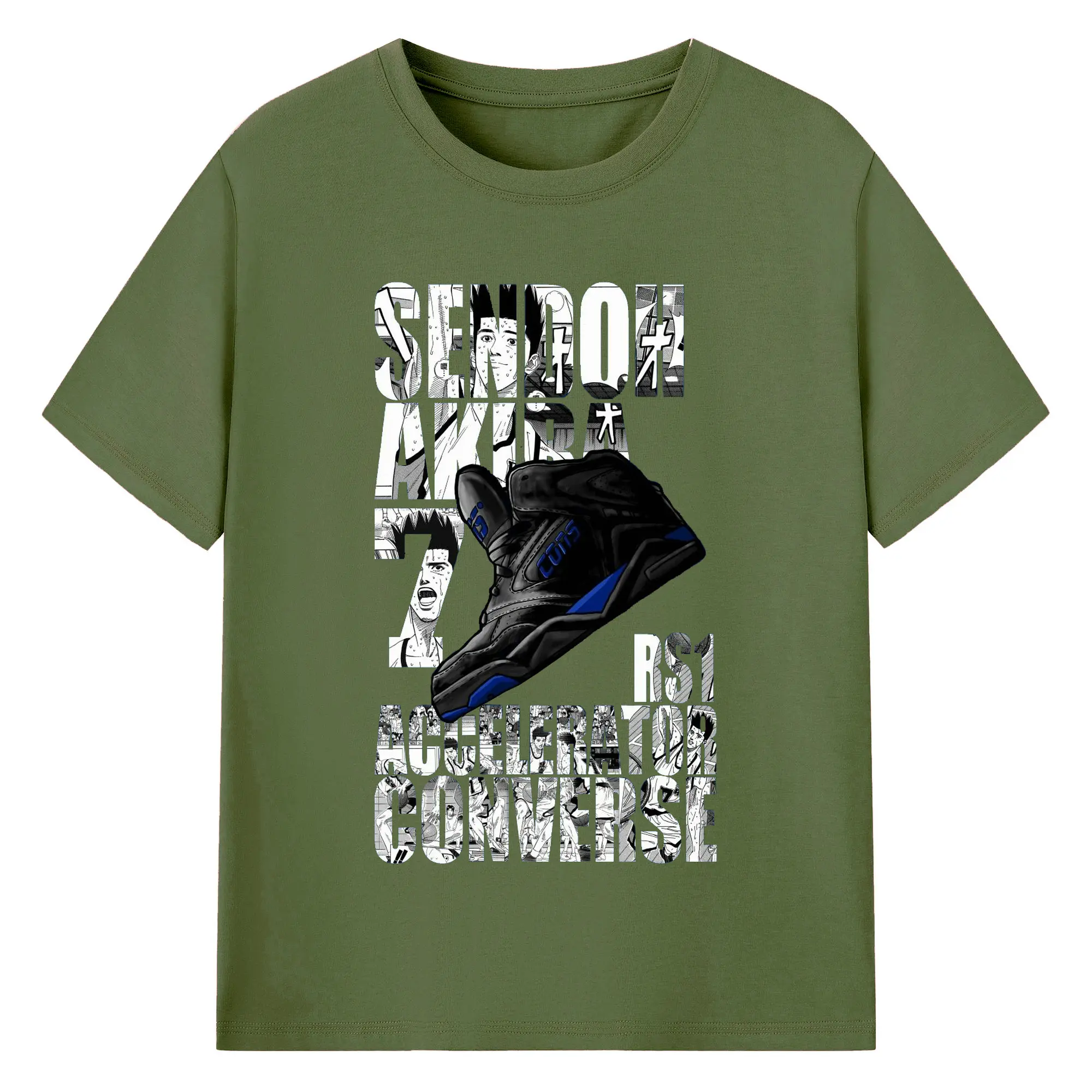 スラムダンクニーカーコラボ限定 - 綿100% 半袖Tシャツ ・ フロントプリント ・ 快適 通気性 ・ 日常使い 散歩 スポーツ用