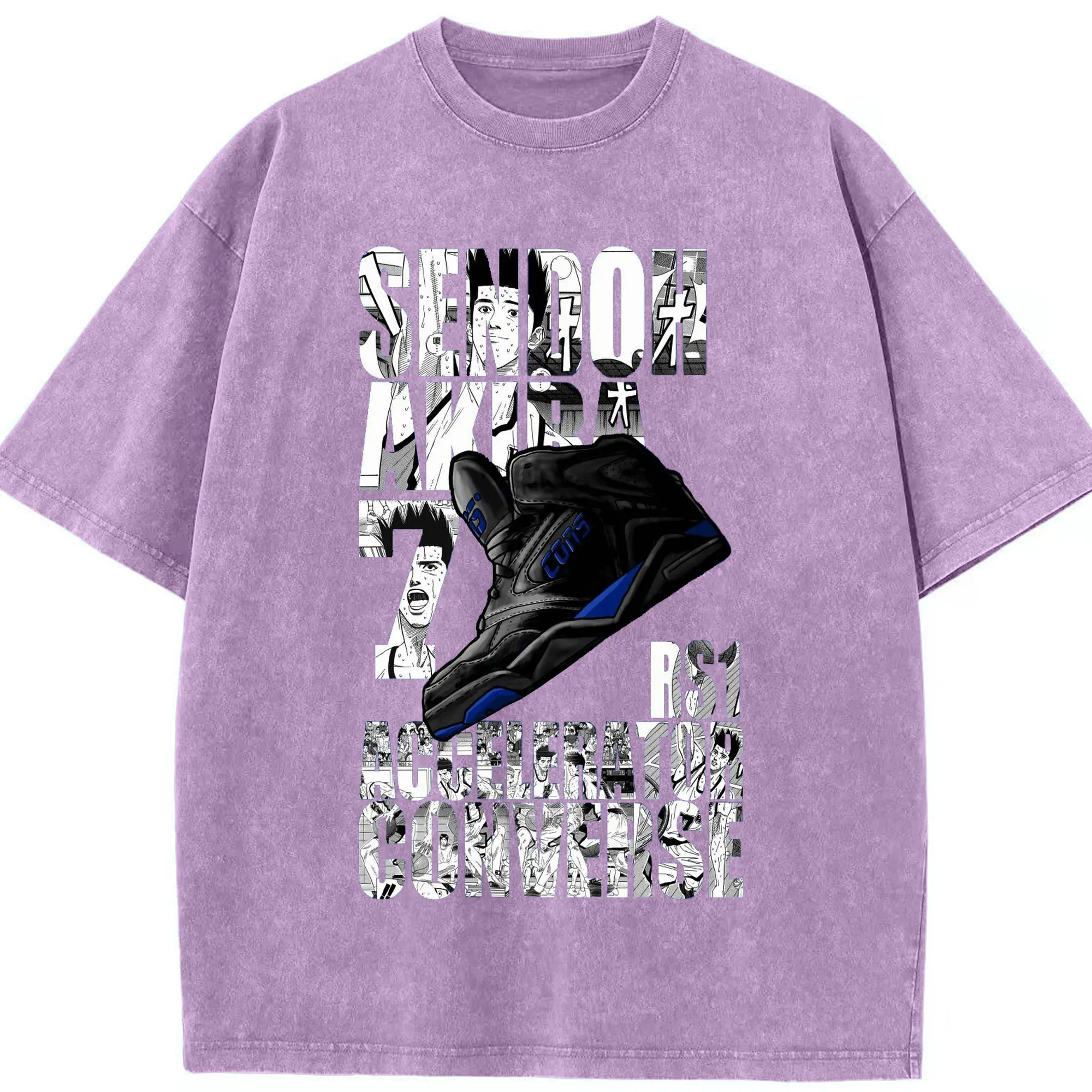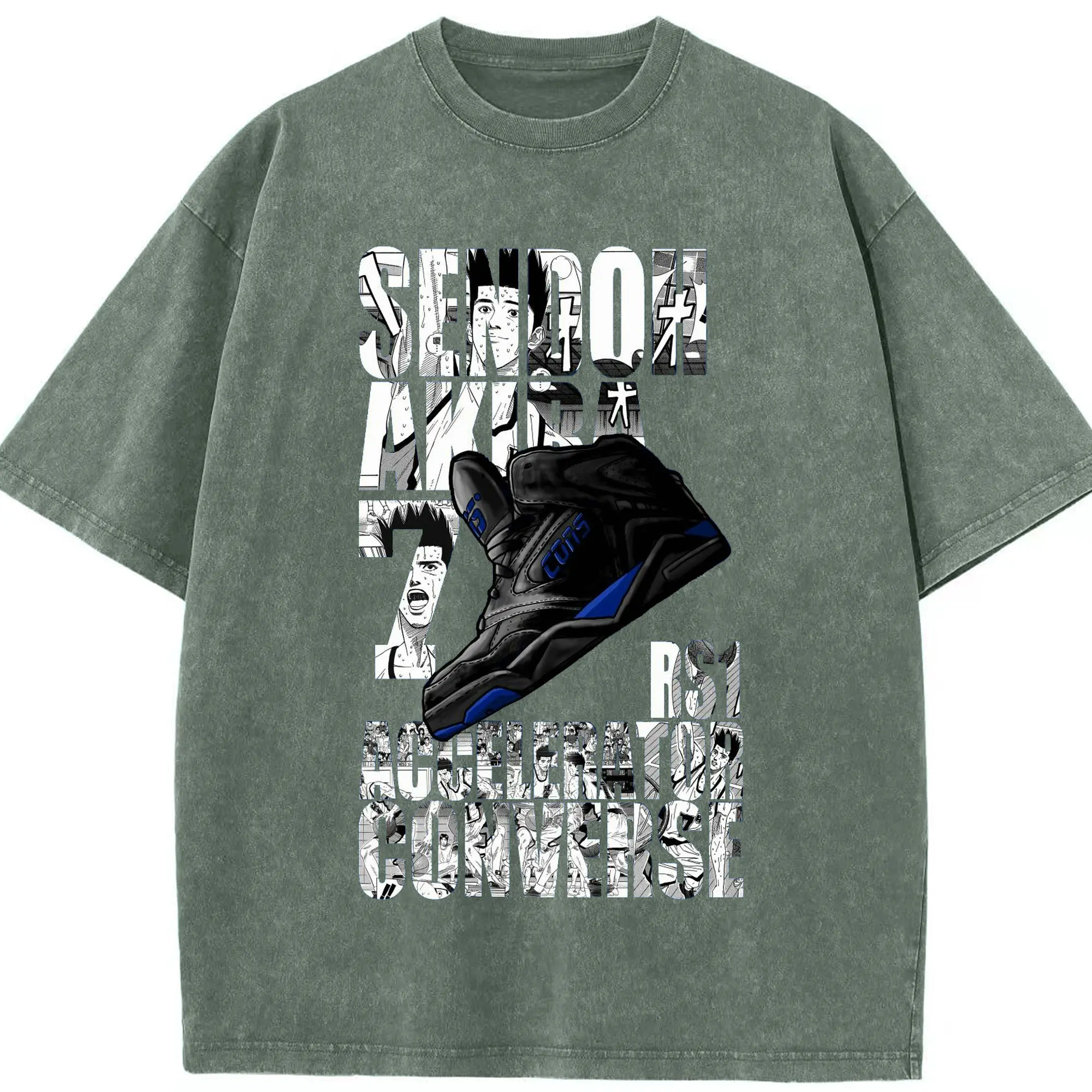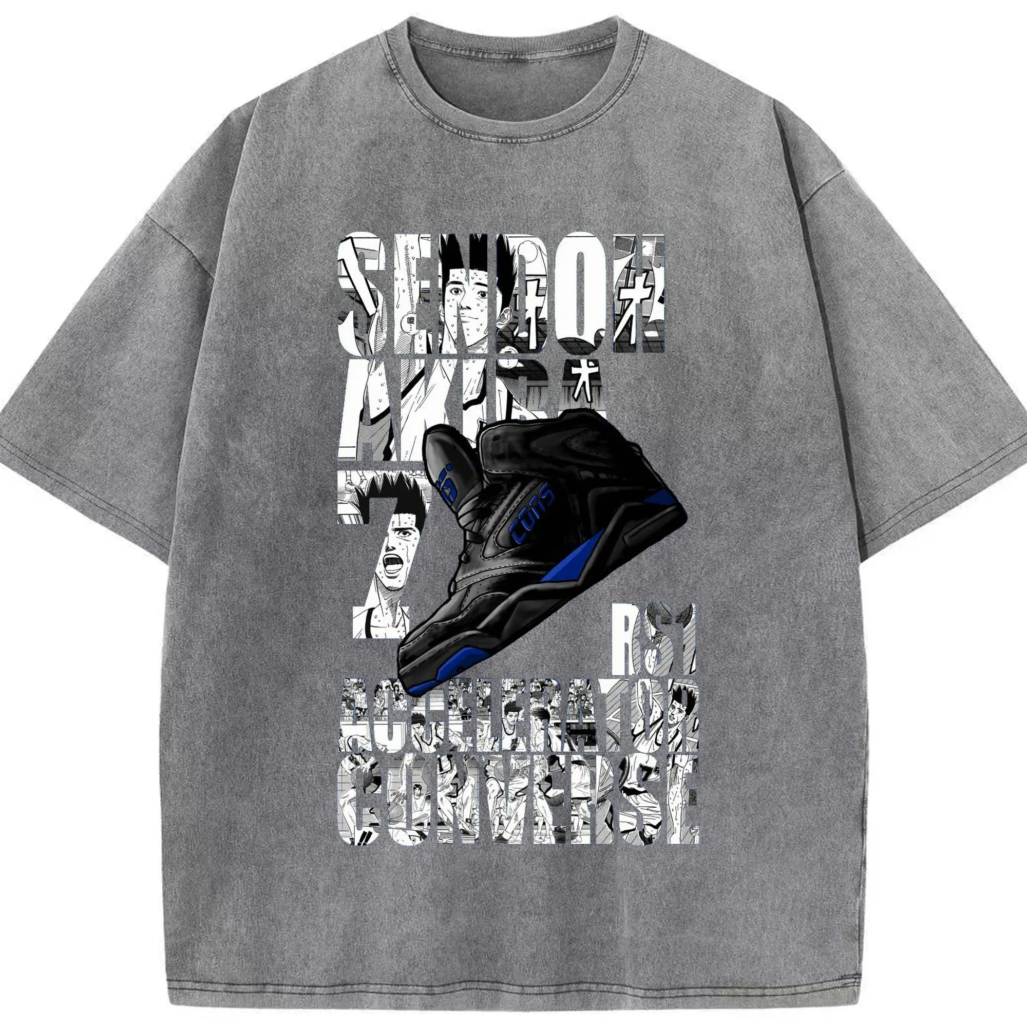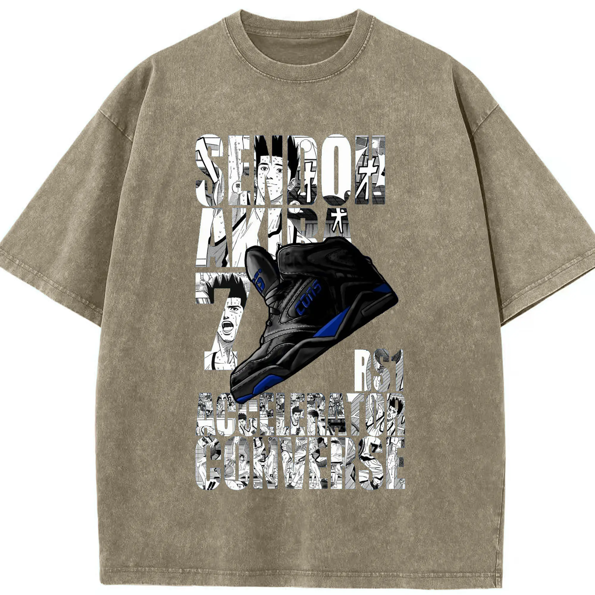 スラムダンクニーカーコラボ限定 - 綿100% ヴィンテージ風 半袖Tシャツ ・ フロントプリント ・ 柔らか肌触り ・ 通気性 快適 ・ スポーツ カジュアル 外出用